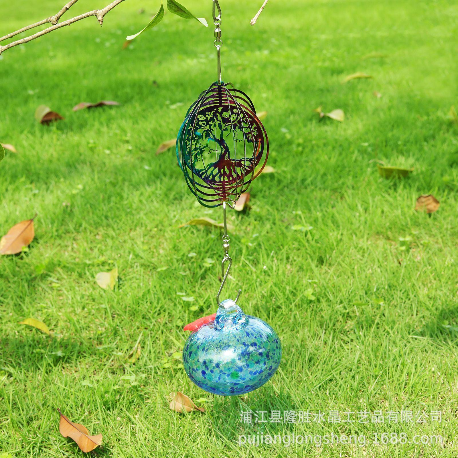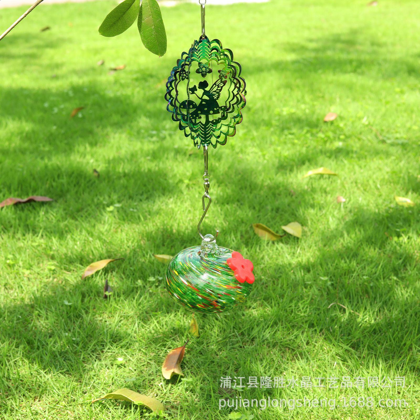 Comedero Decorativo para Pájaros para Exterior Patio Campana de Viento Colgante Adorno de Bola Suministro Transfronterizo Ángel de Lujo Ligero Pintado Gotas de Agua Giratorias
