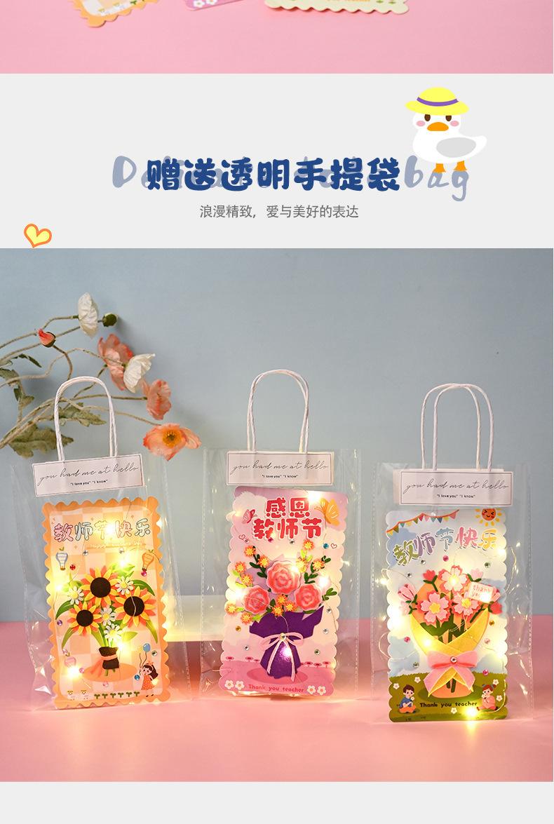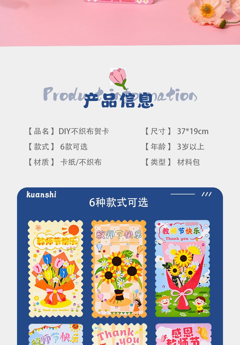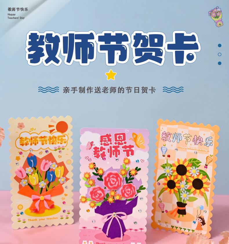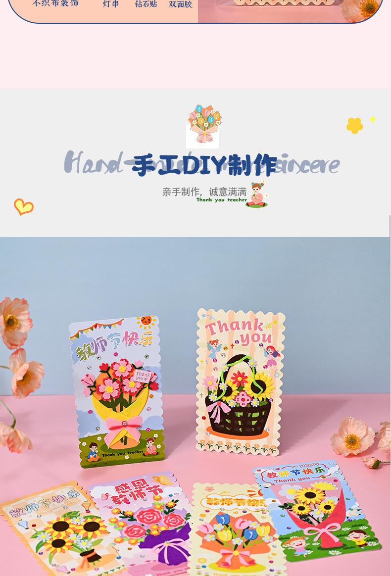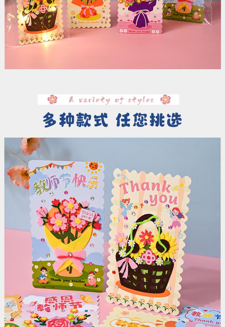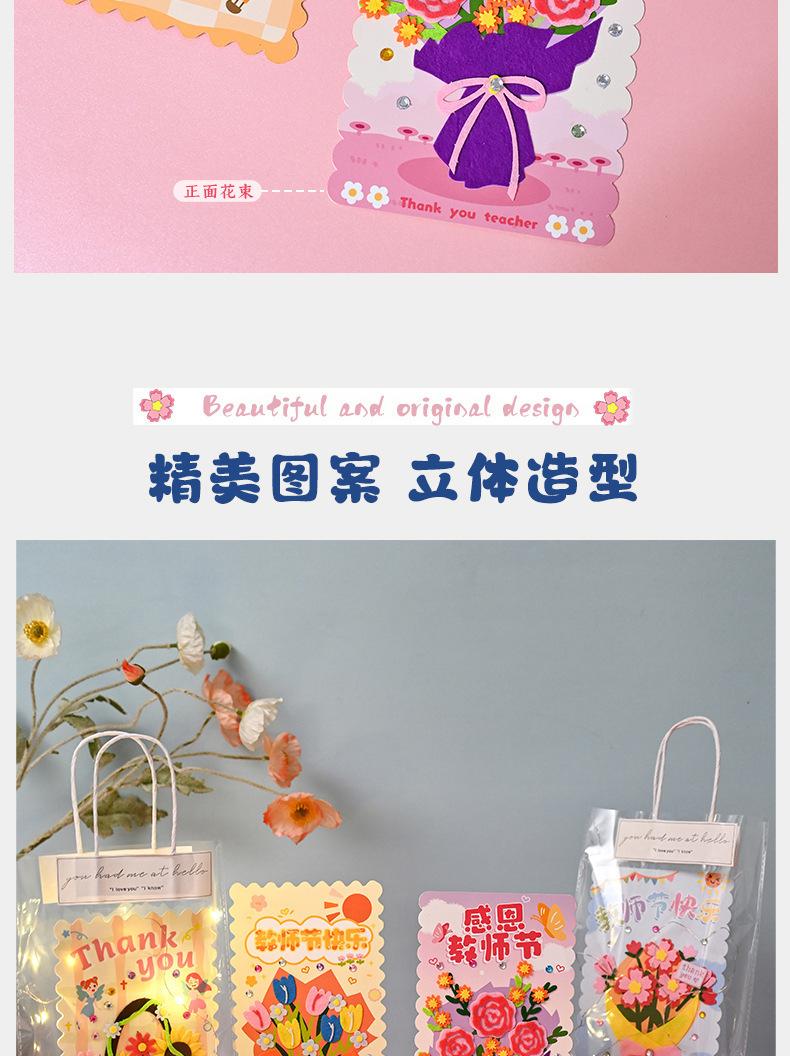 Tarjeta de felicitación del Día del Maestro, tarjeta de ramo no tejido, material de bricolaje hecho a mano para niños, regalo de Acción de Gracias para el maestro, tarjeta de felicitación creativa