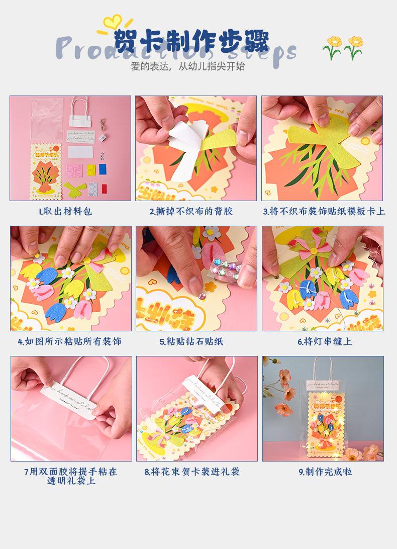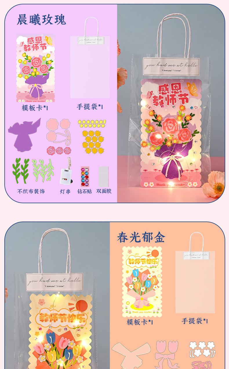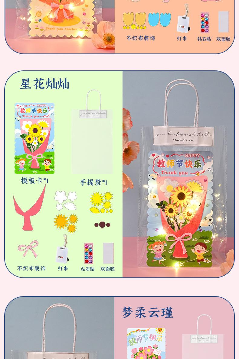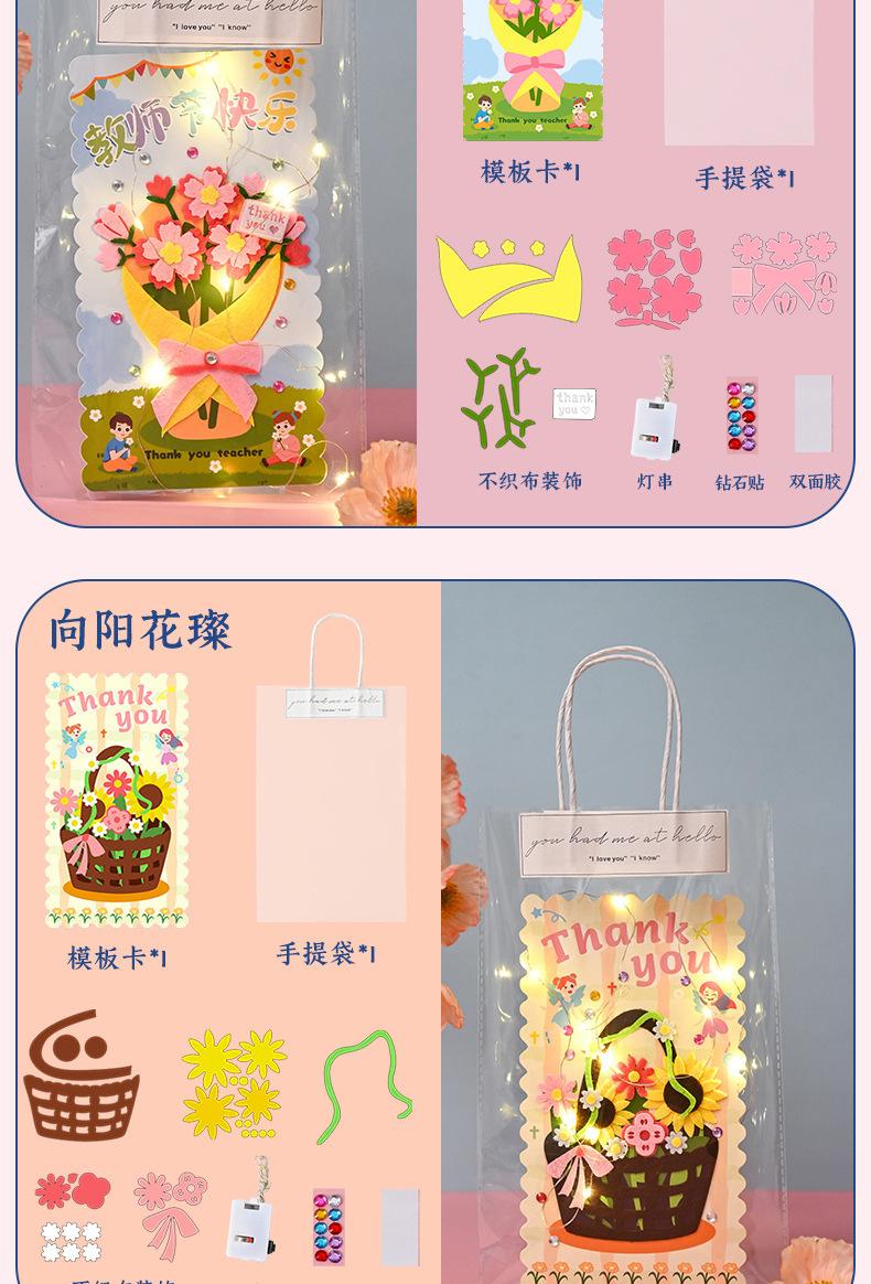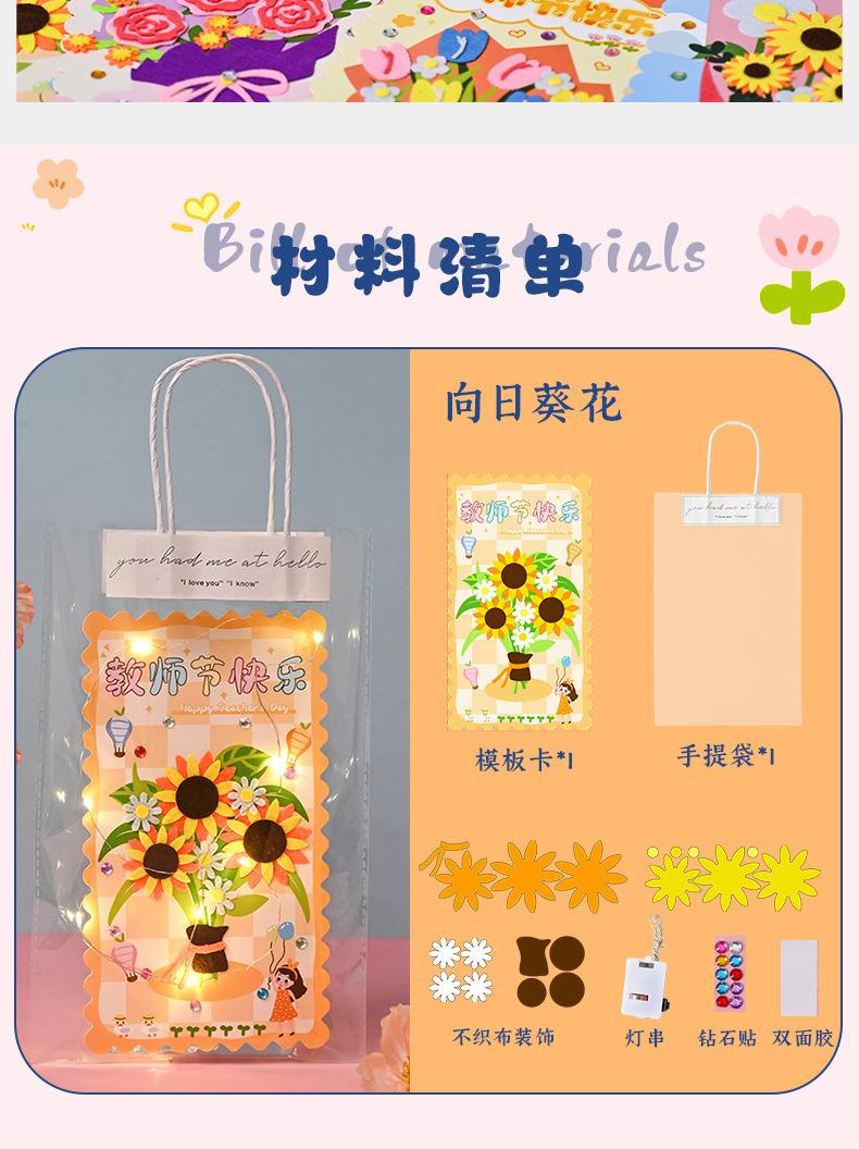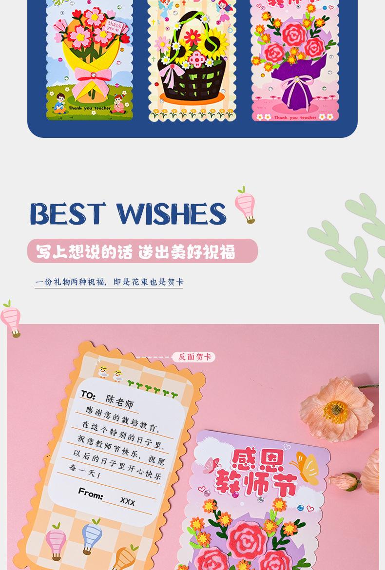 Tarjeta de felicitación del Día del Maestro, tarjeta de ramo no tejido, material de bricolaje hecho a mano para niños, regalo de Acción de Gracias para el maestro, tarjeta de felicitación creativa