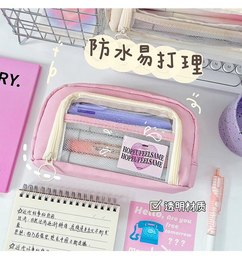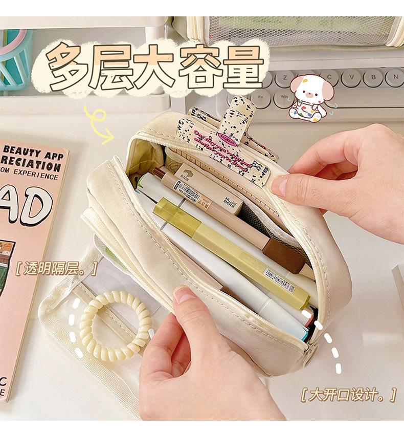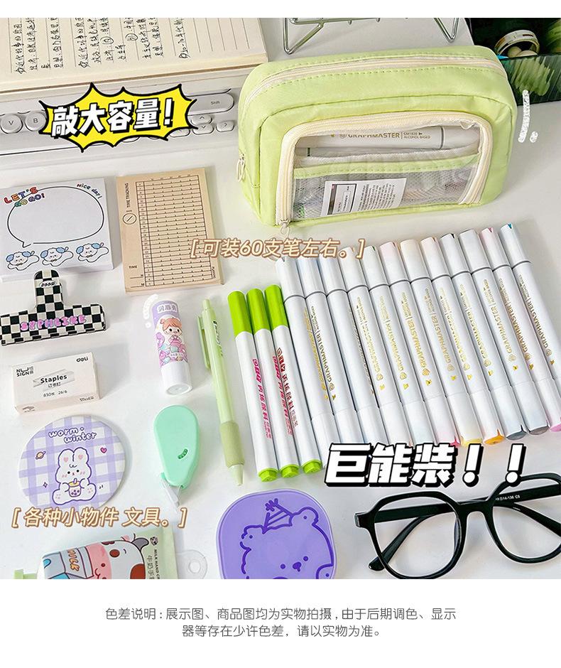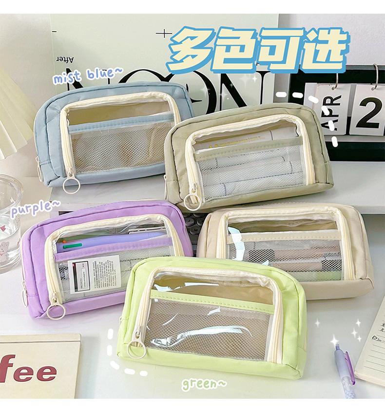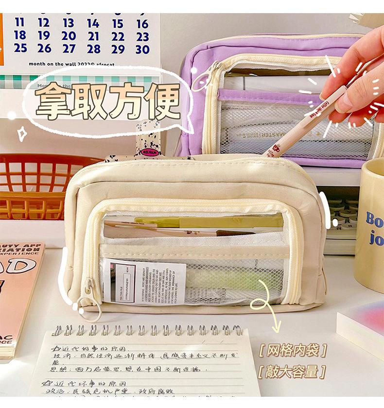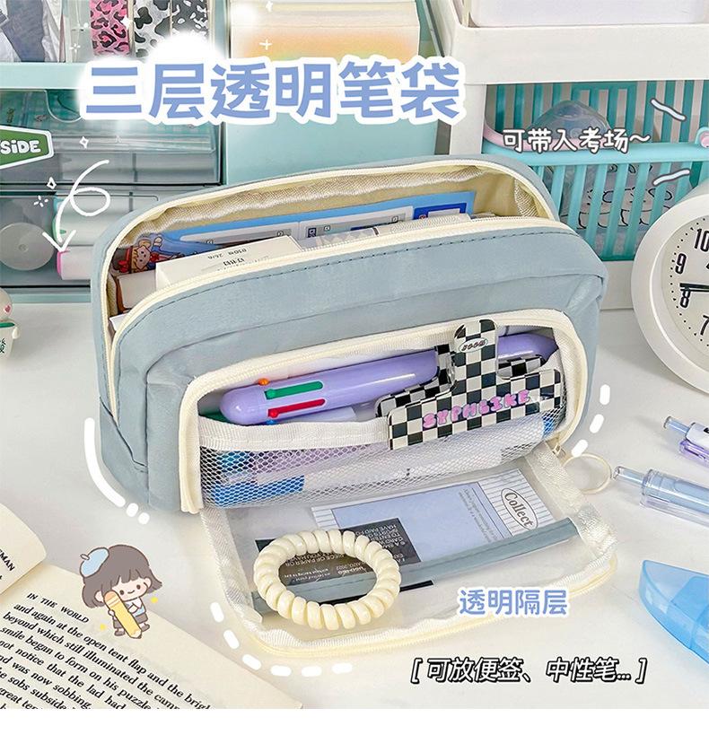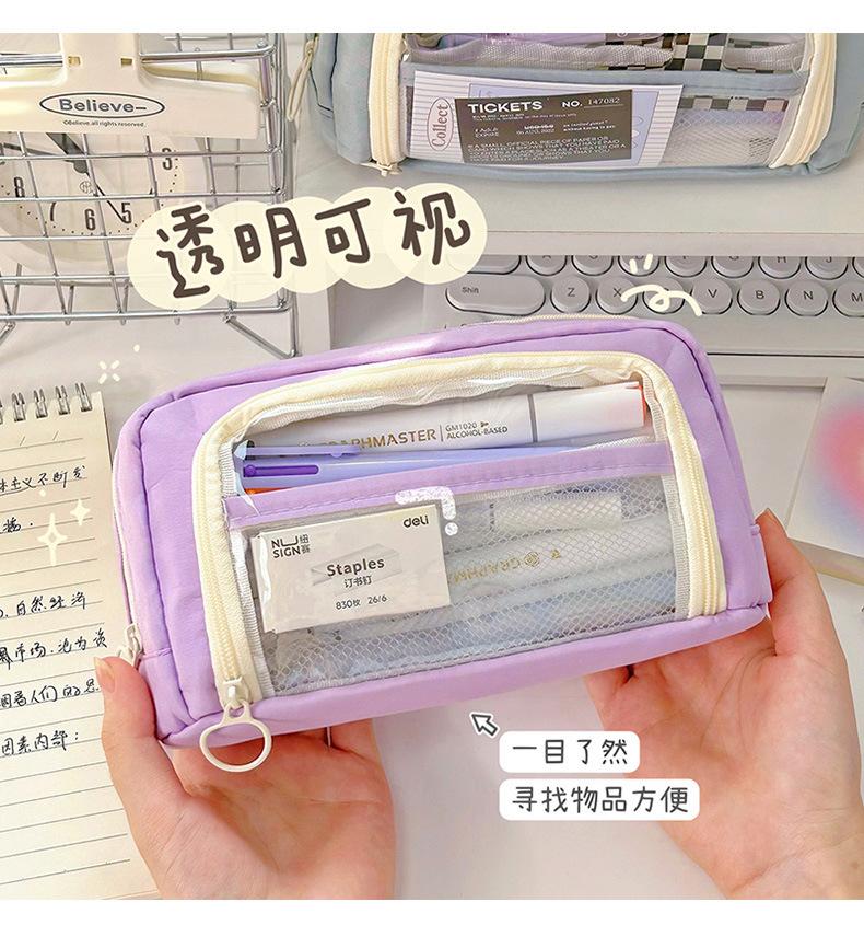 Estuche transparente de gran capacidad para lápices, estuche de papelería para estudiantes, estuche de lápices de alto valor para escuela secundaria, estuche de papelería simple de tres capas, venta al por mayor