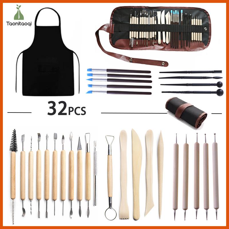 Herramientas de Cerámica Transfronterizas Juego de 32 Piezas Cerámica Arcilla Arcilla Escultura de Arcilla Tallado Arcilla Cerámica Blanda Producción de Porcelana Arcilla de Color Herramientas para Escultura de Arcilla