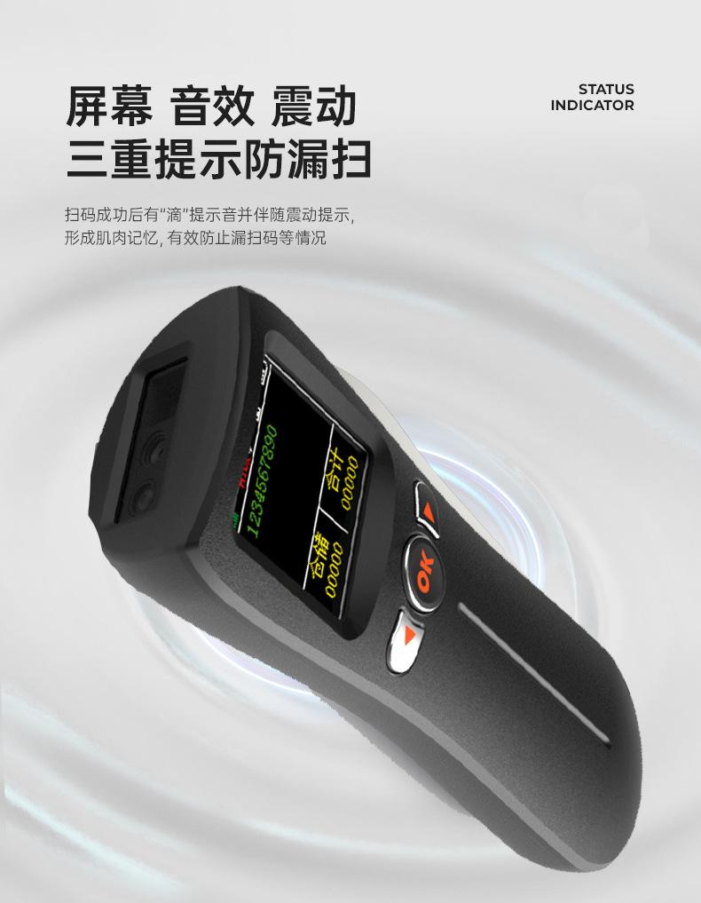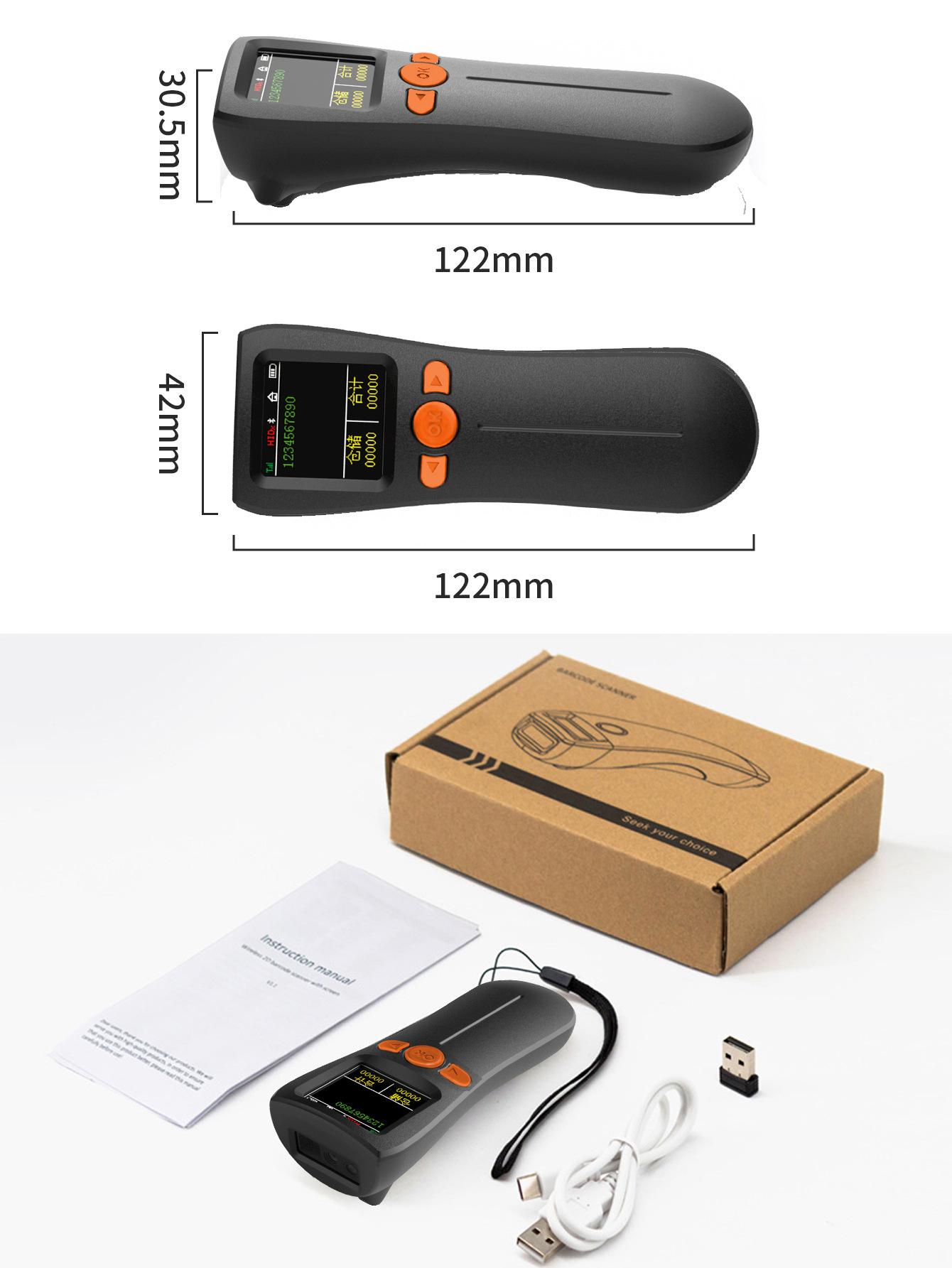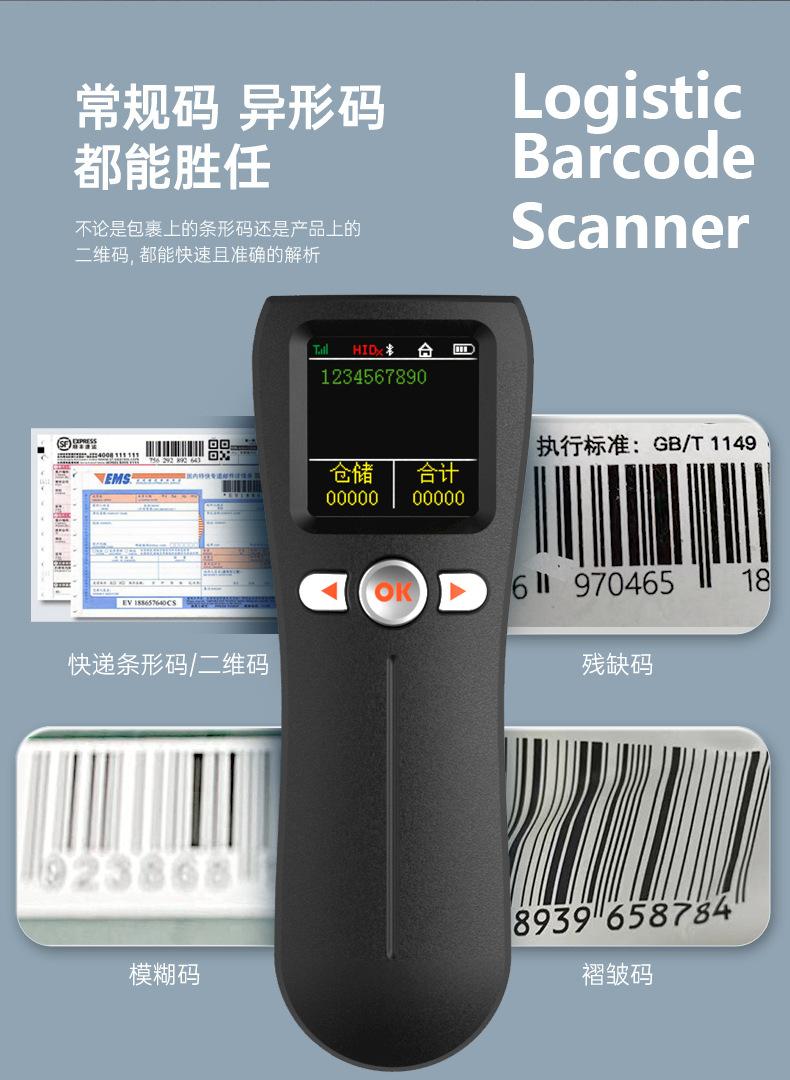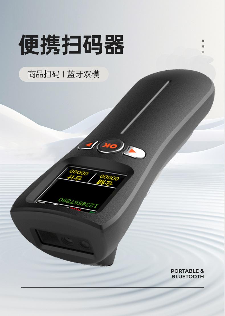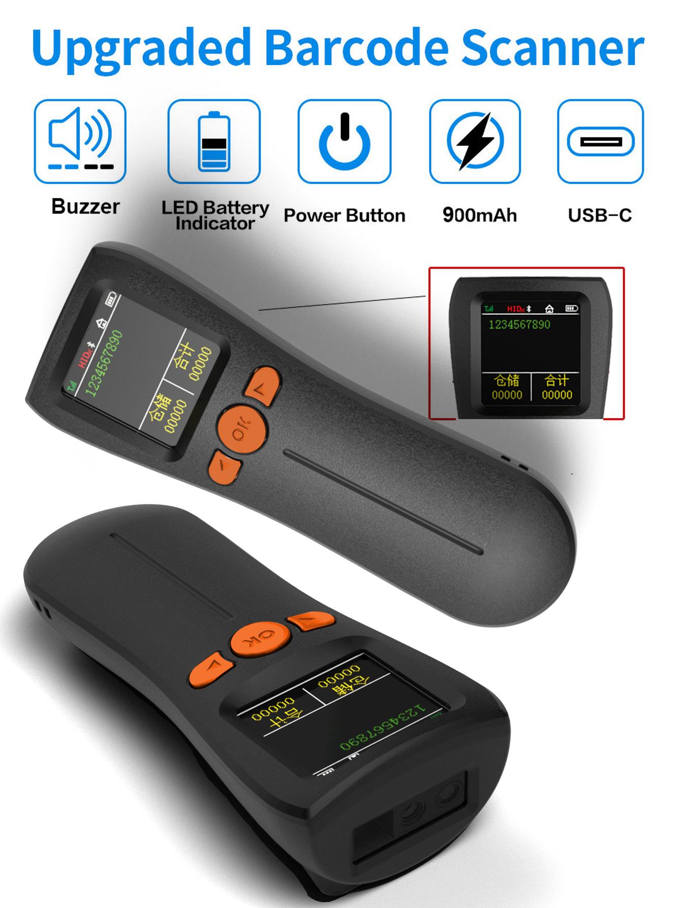 Escáner mini bluetooth portátil 1D código QR escáner de código de barras inalámbrico con pantalla grande, almacenamiento, inventario y otros modos