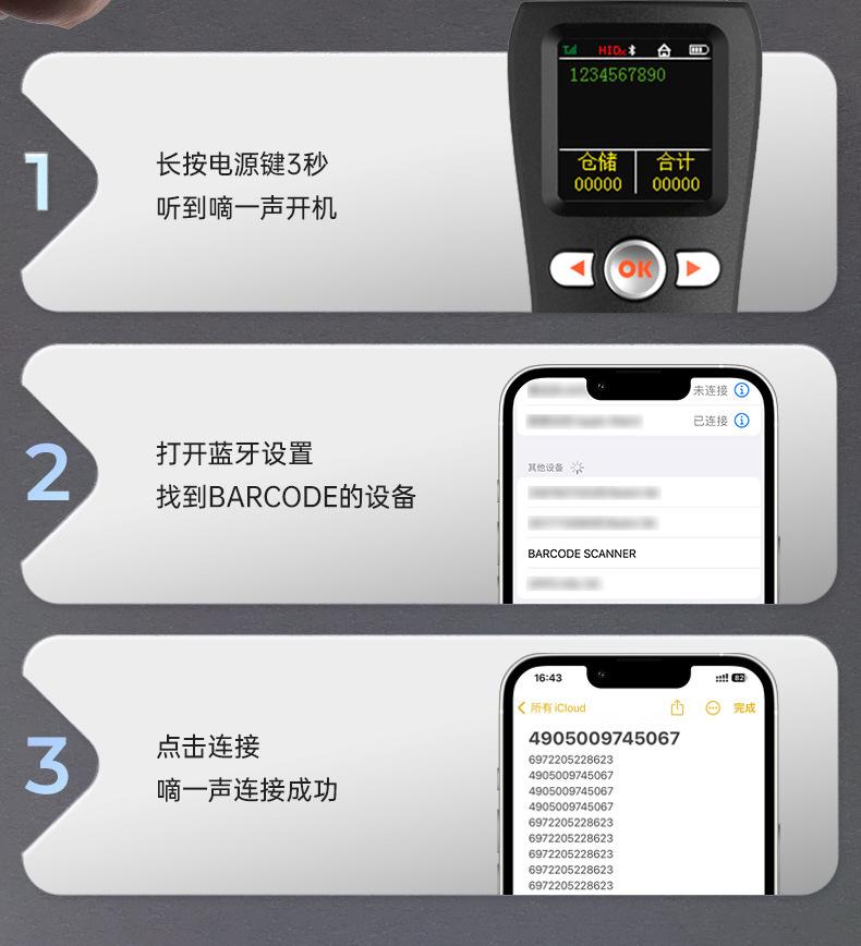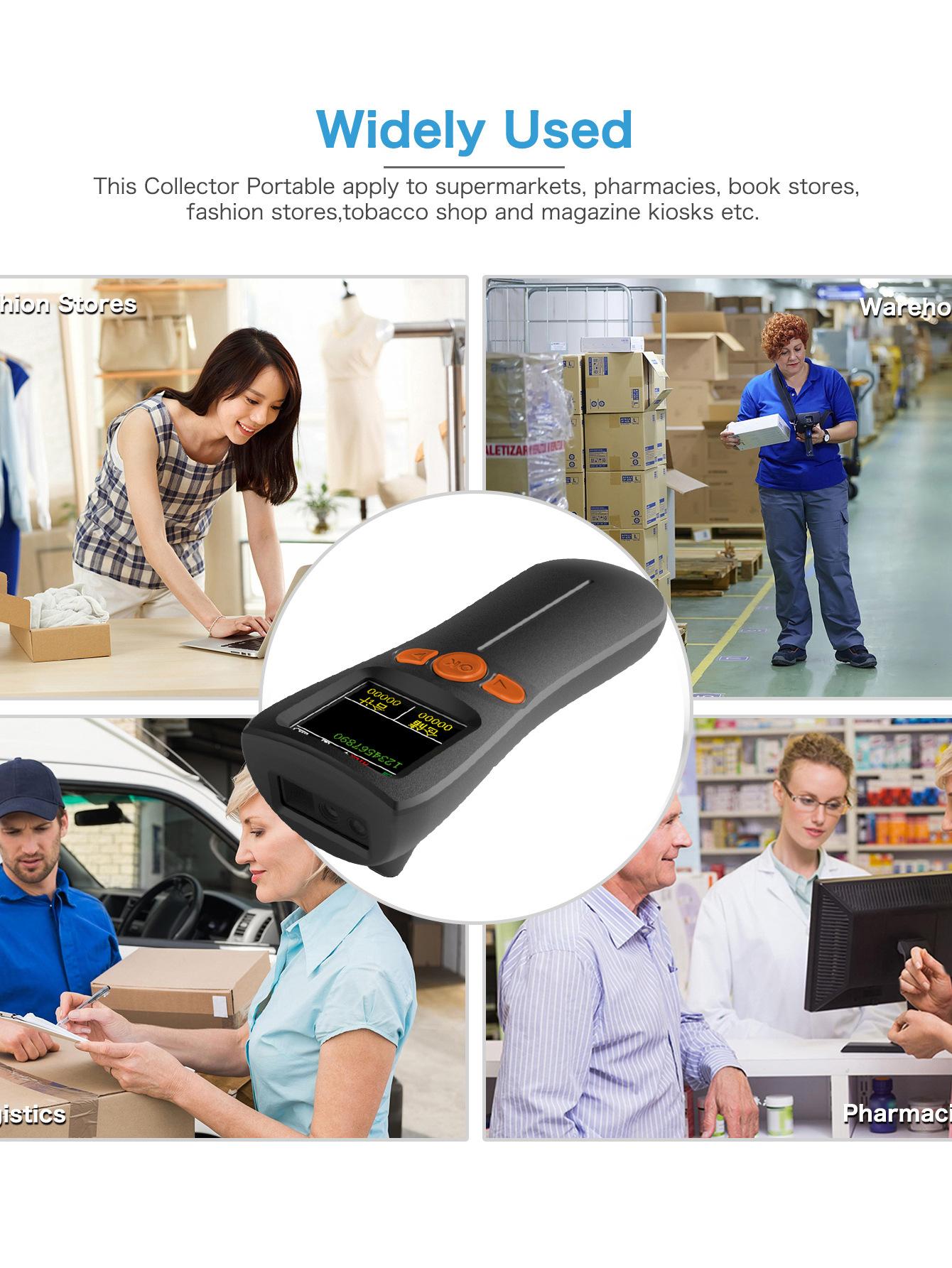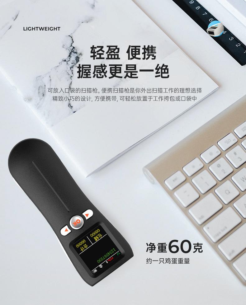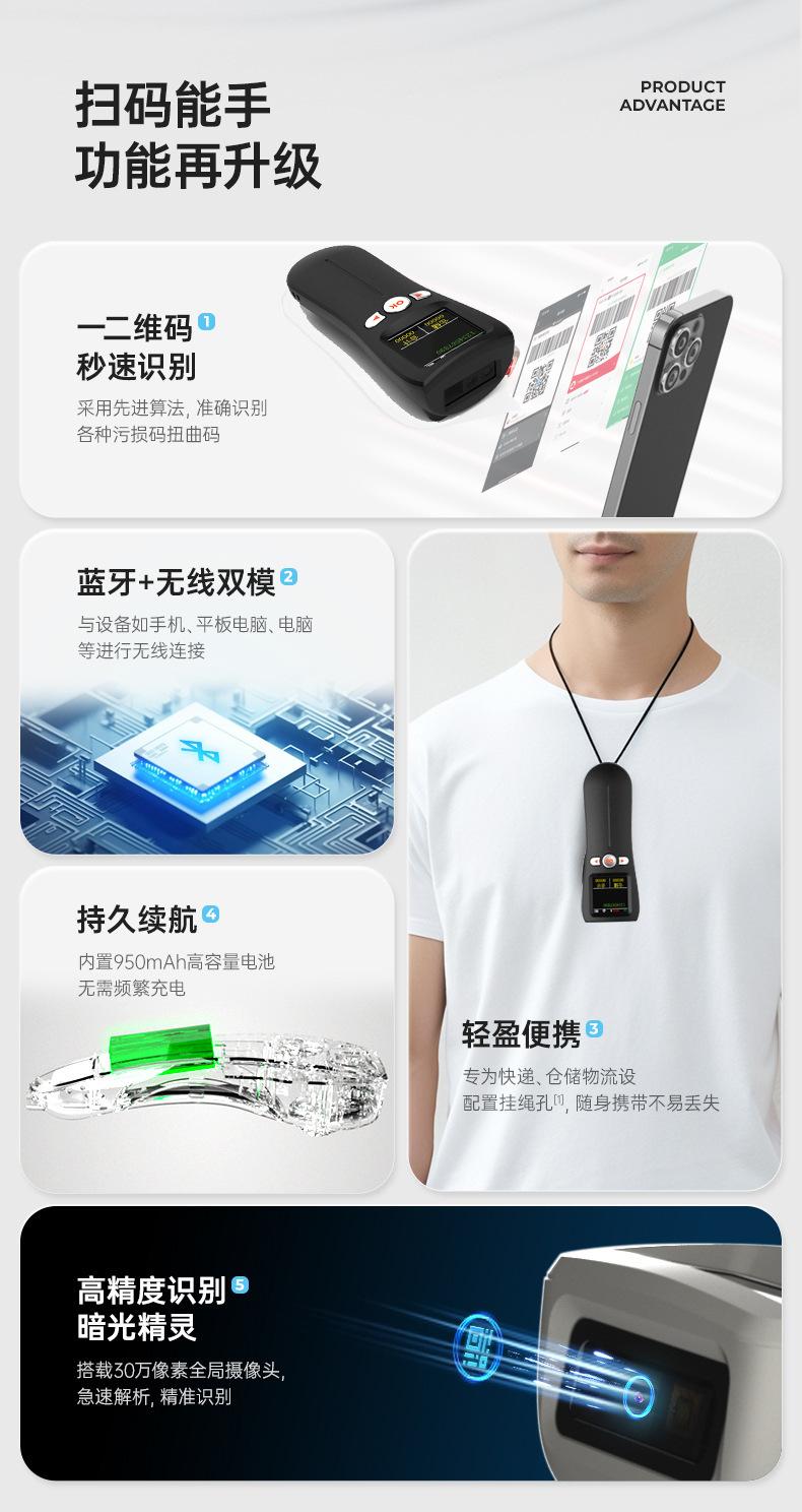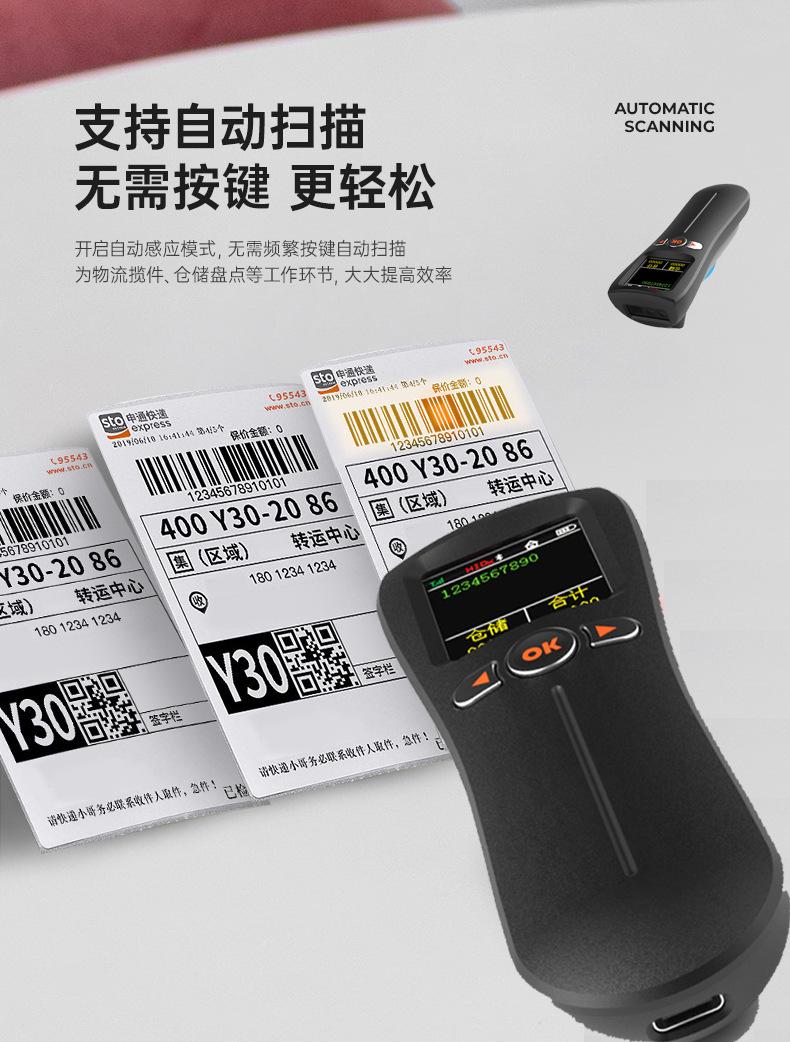 Escáner mini bluetooth portátil 1D código QR escáner de código de barras inalámbrico con pantalla grande, almacenamiento, inventario y otros modos