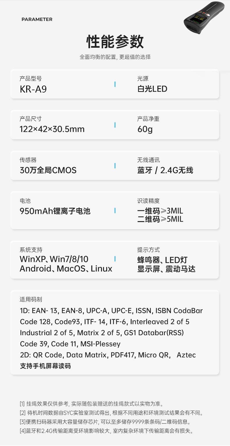 Escáner inalámbrico unidimensional KEFAR, escáner inalámbrico 2.4G, escáner de código de barras bidimensional, pistola de escaneo, fabricante de pistolas, suministro exclusivo transfronterizo