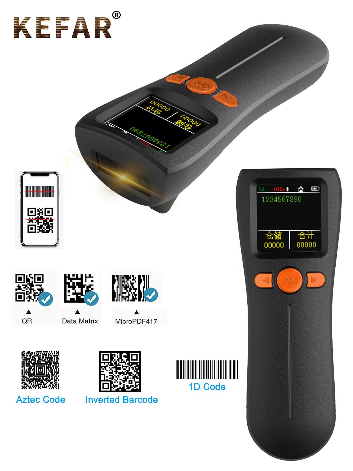 KEFAR nuevo lanzamiento pantalla grande visualización de datos inalámbrico escáner de código QR mini bluetooth escáner portátil pistola de escaneo expreso de código de barras