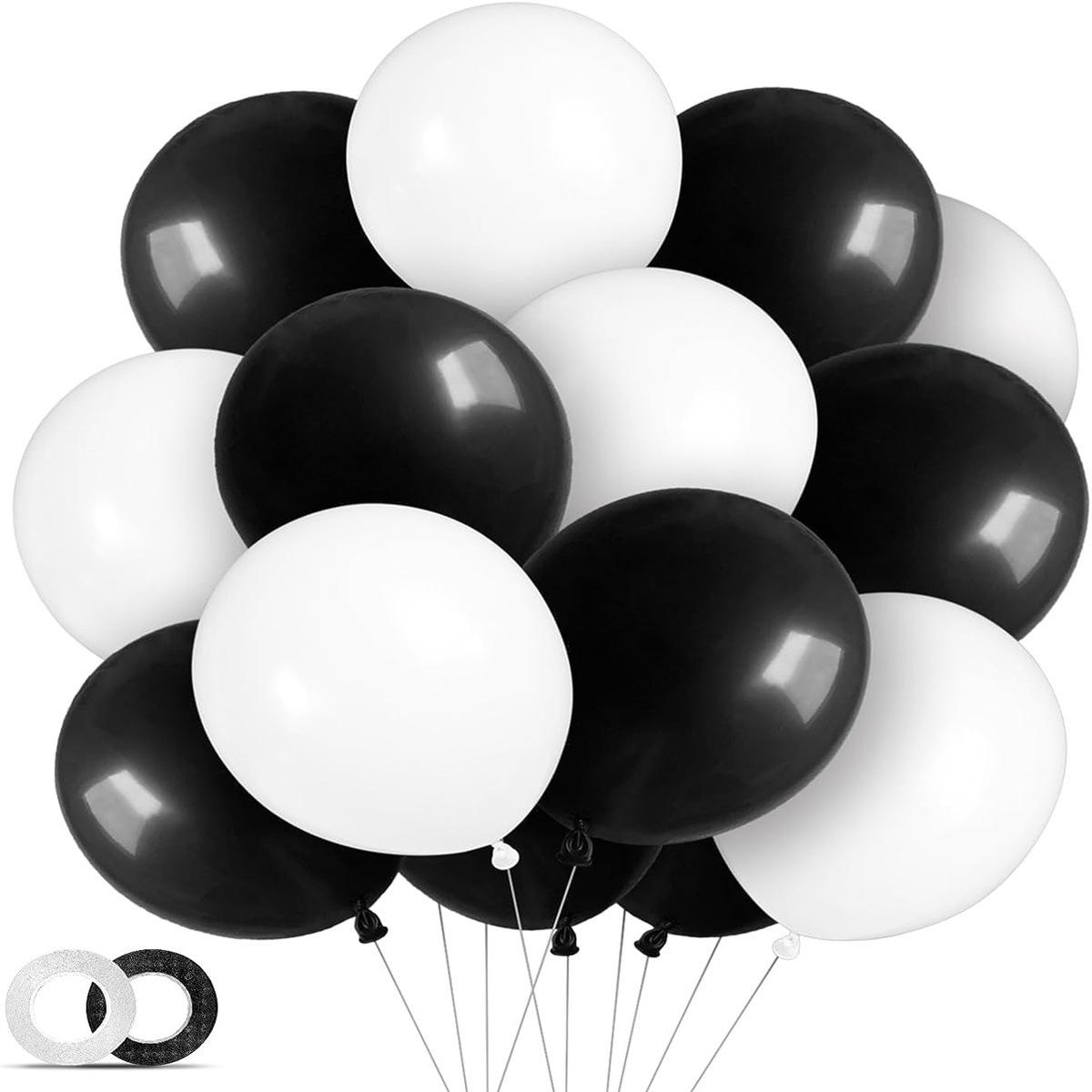 100 piezas Globos Blancos y Negros 12" Globos de Látex Engrosados para Decoración de Fiesta de Cumpleaños, Boda, Graduación (Globos Blancos y Negros)