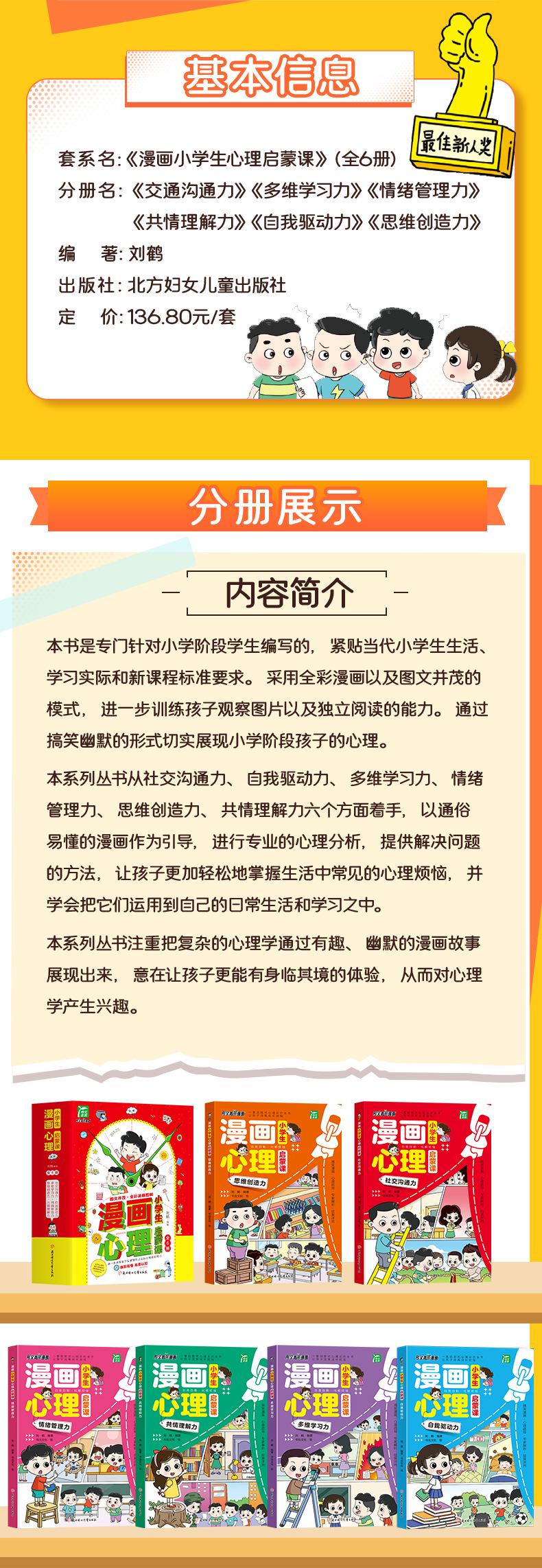 Curso de iluminación psicológica de dibujos animados para escuela primaria, conjunto completo de 6 libros, edición de dibujos animados de psicología infantil, capacidad de control y superación personal