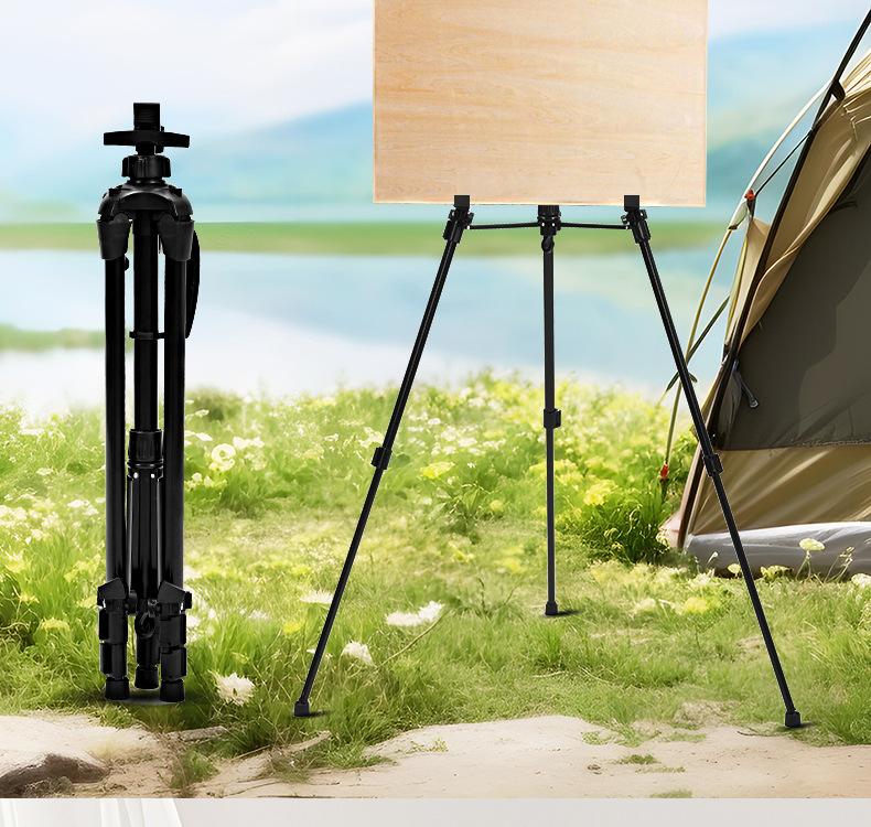Caballete plegable de mano grande, caballete de metal negro con nivel, trípode plegable de elevación artística, caballete de hierro