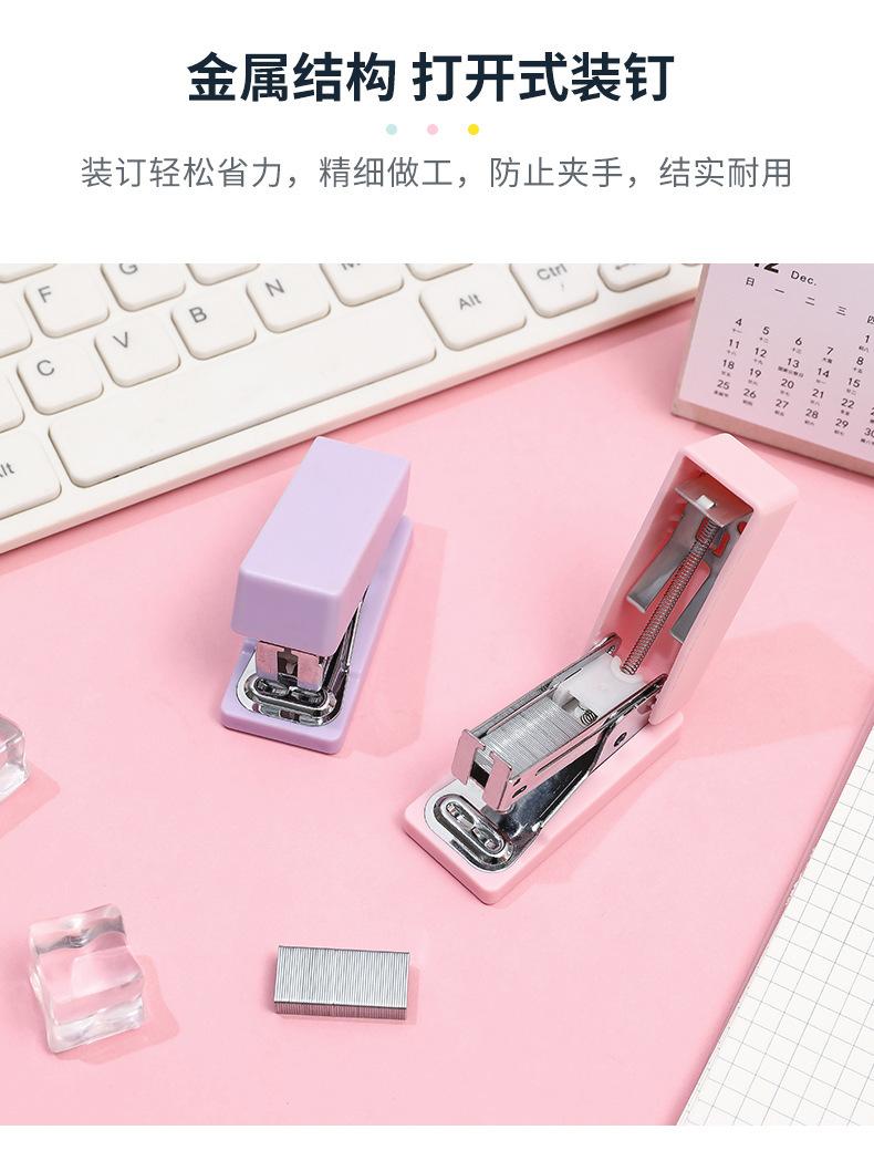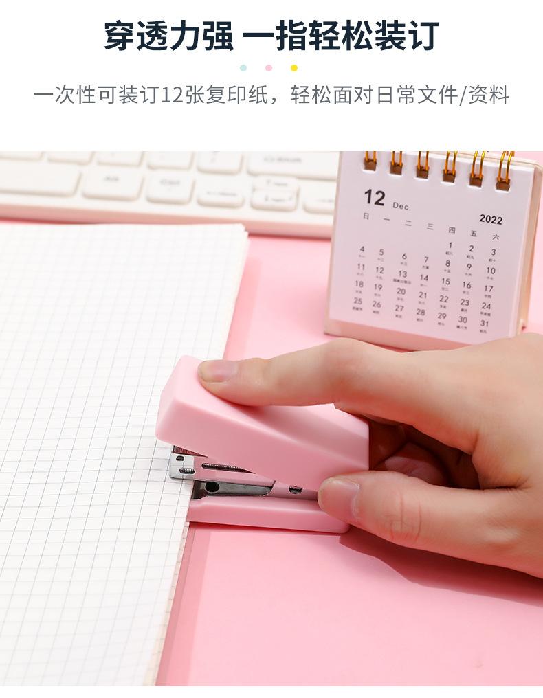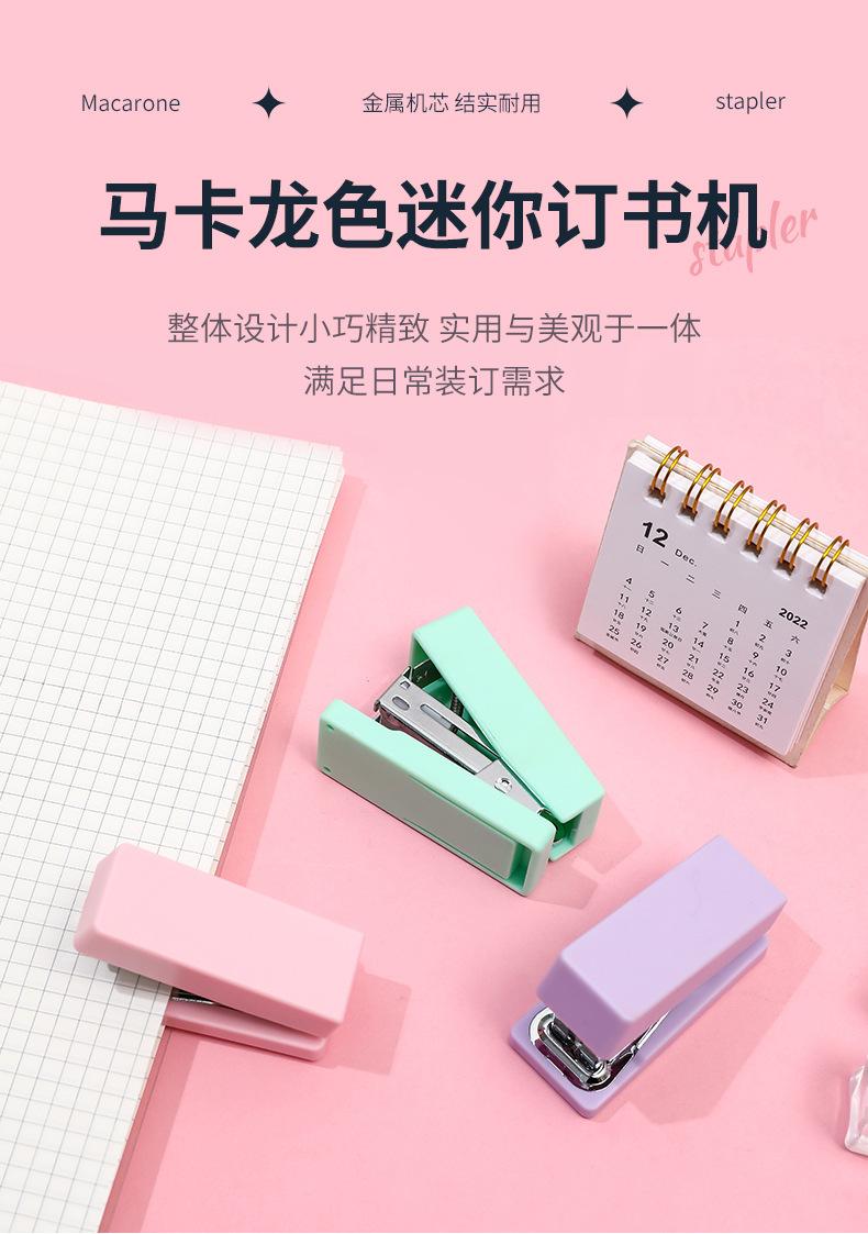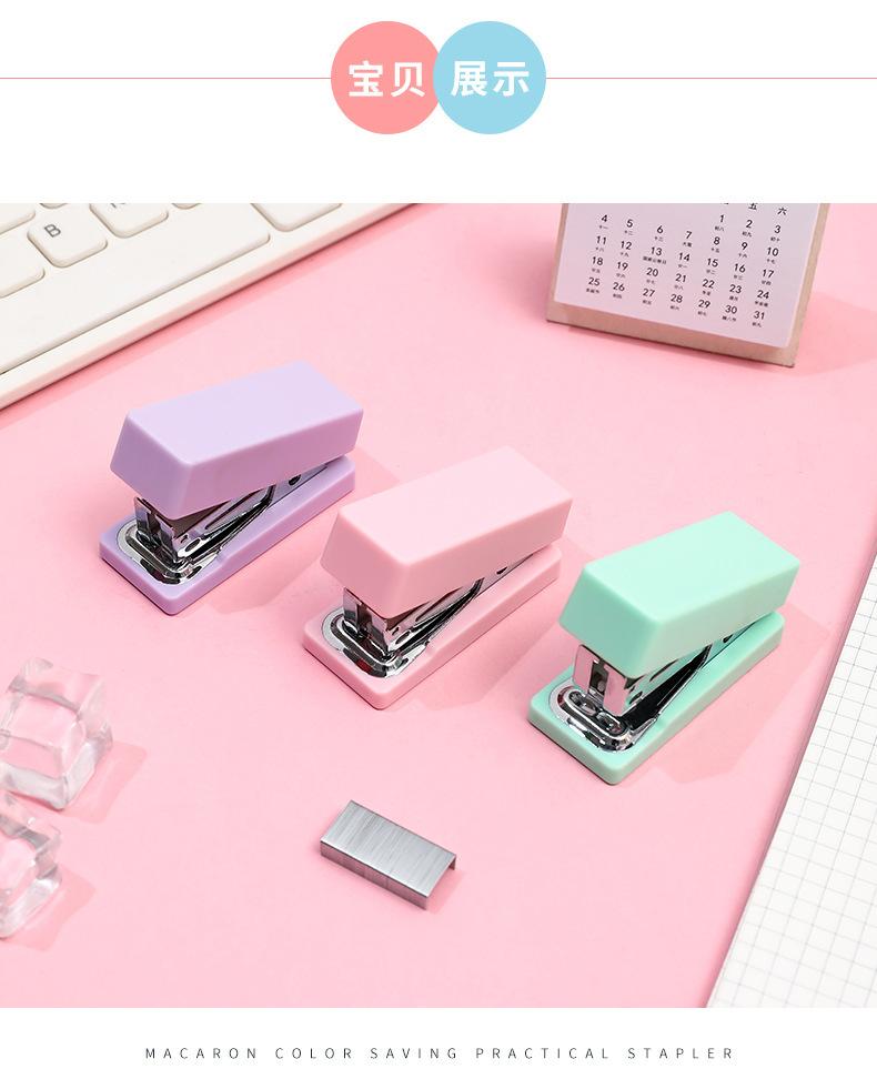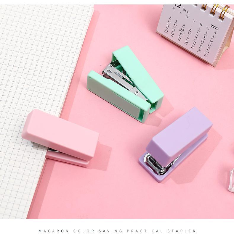Grapadora de color macarrón n.° 12, papelería para estudiantes, tamaño pequeño, grapadora de oficina, grapadora portátil que ahorra trabajo.