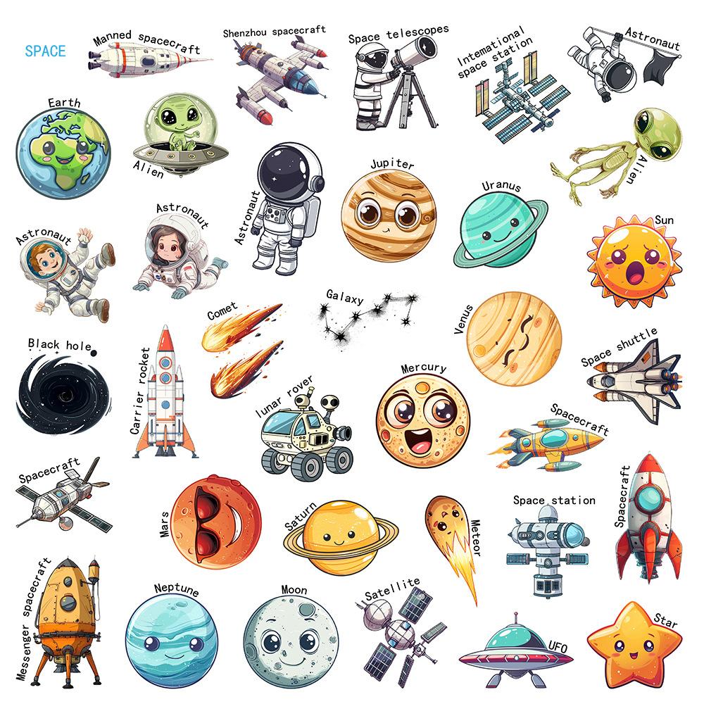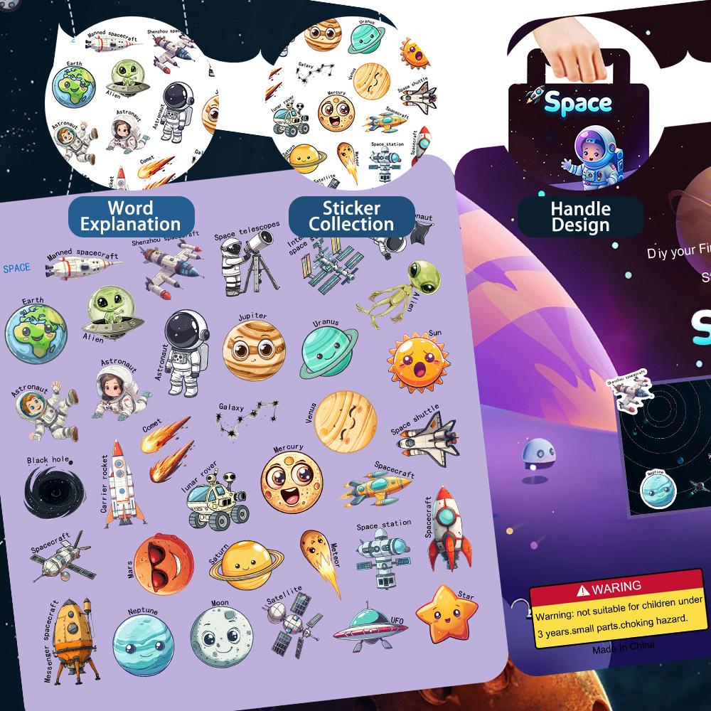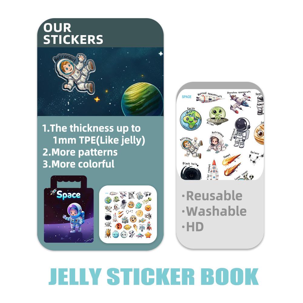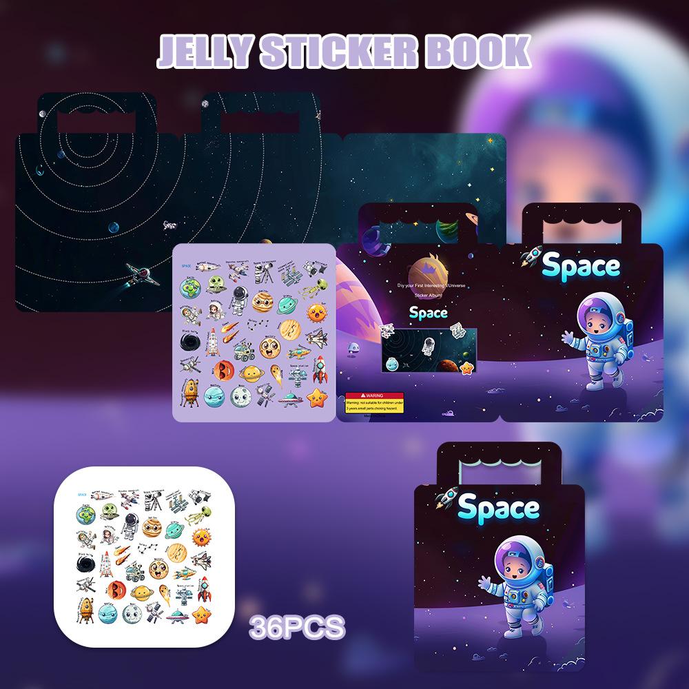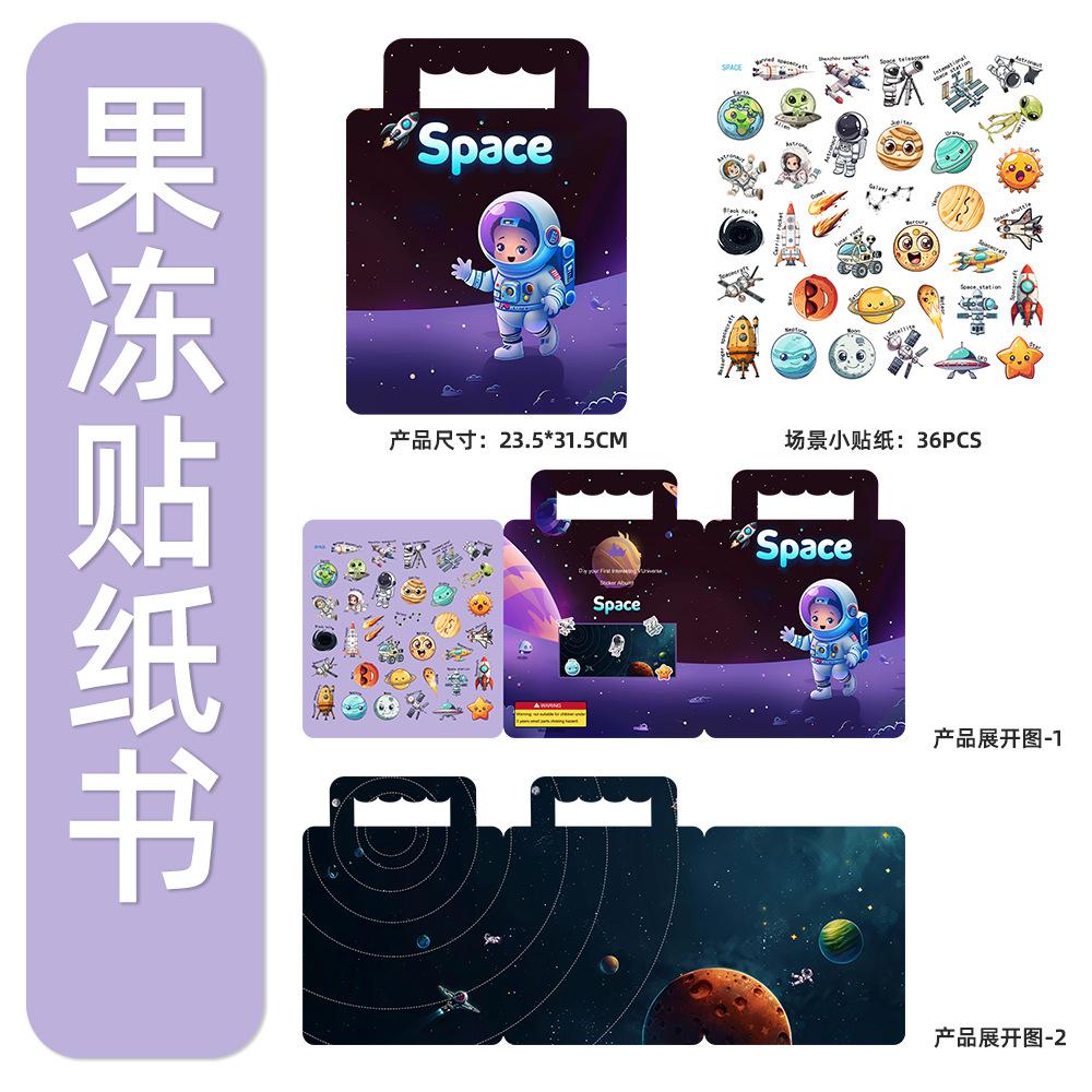 Libro de pegatinas de gelatina espacial transfronteriza, pegatinas repetidas de planetas, astronautas, juguetes educativos para niños de educación temprana.