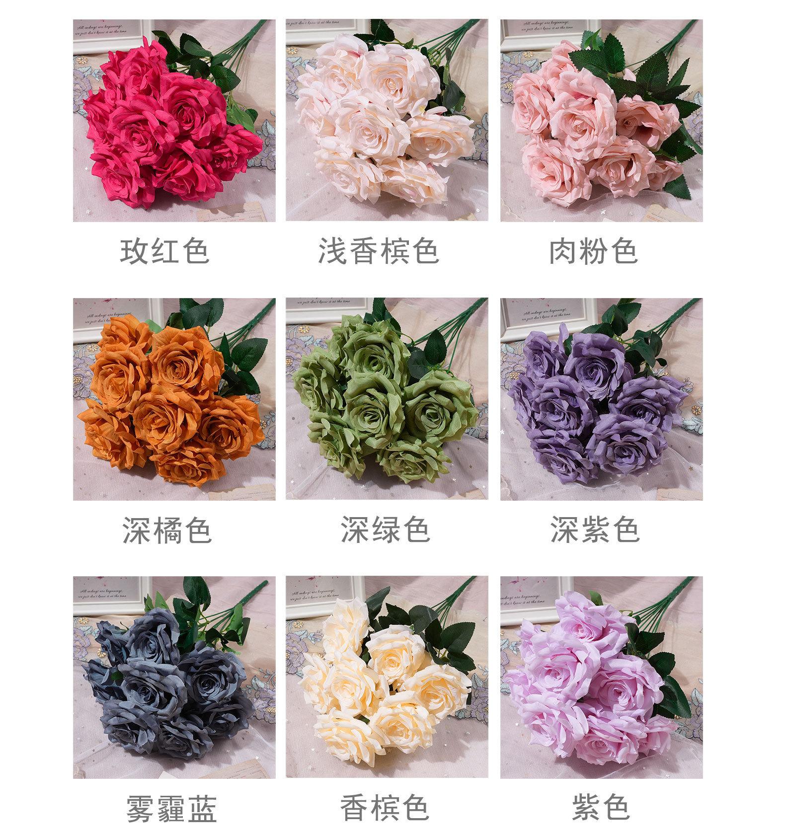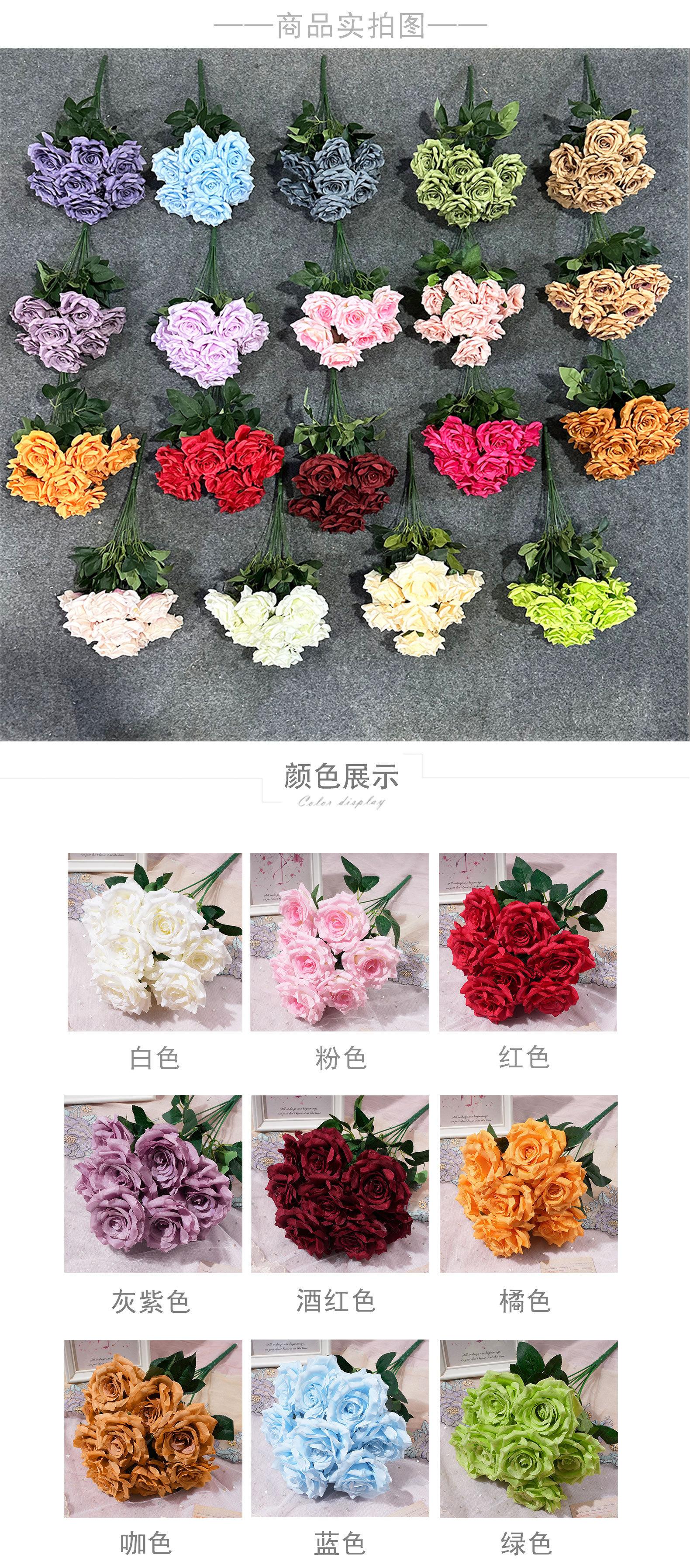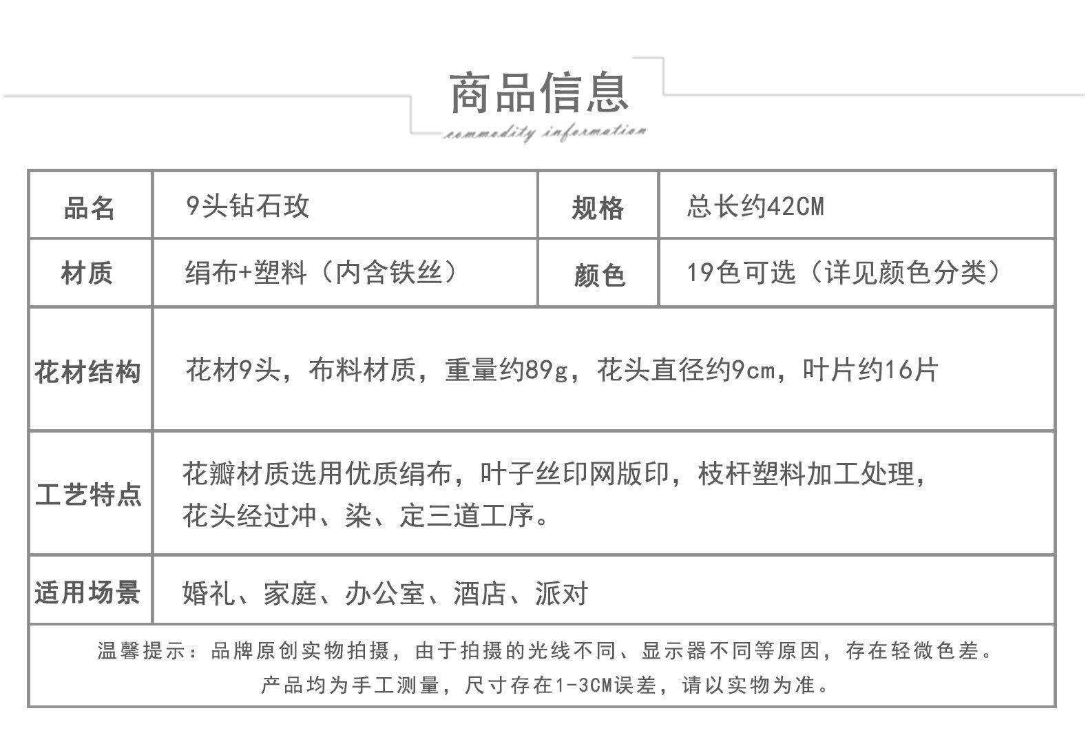Ramo Falso de Rosa Diamante de 9 Cabezas Simuladas, Flor Artificial de Seda, Arreglo Floral para Piso de Boda, Flor de Plástico, Arreglo de Boda de Alta Gama