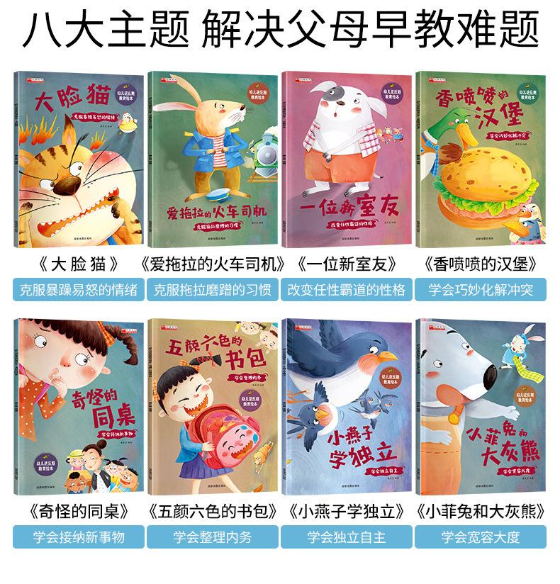 Libro ilustrado de educación inversa para niños, 8 libros, gestión de emociones y desarrollo del carácter para niños, cuento para dormir, libro ilustrado
