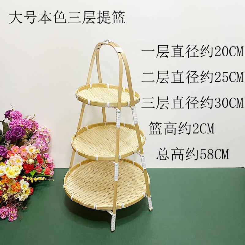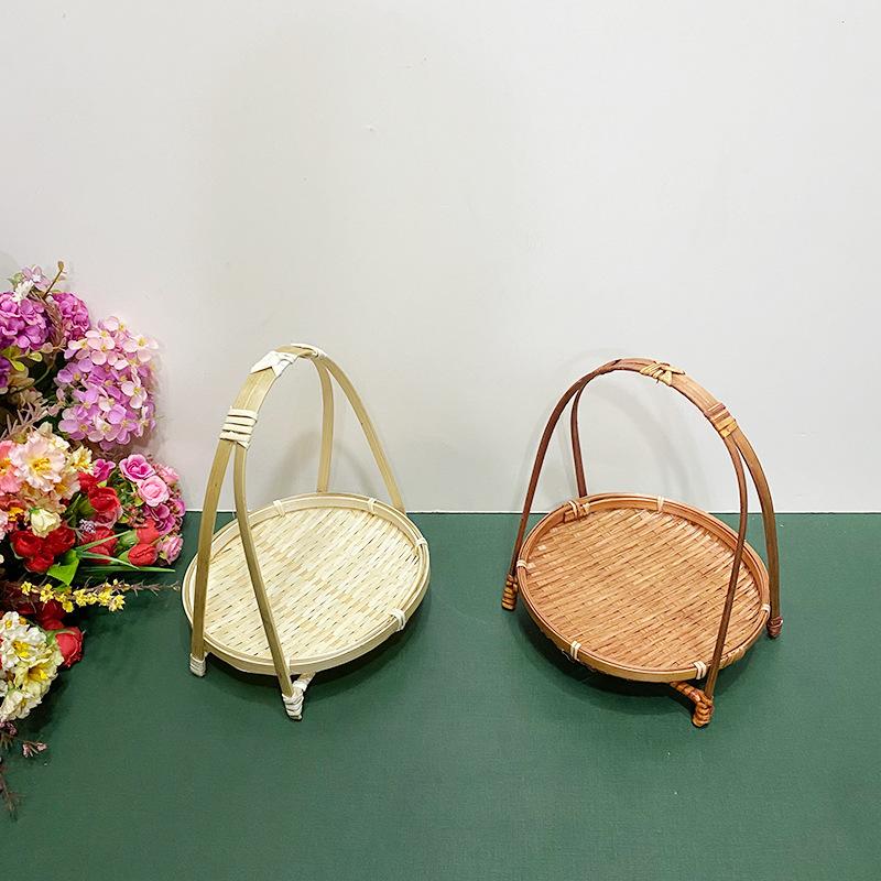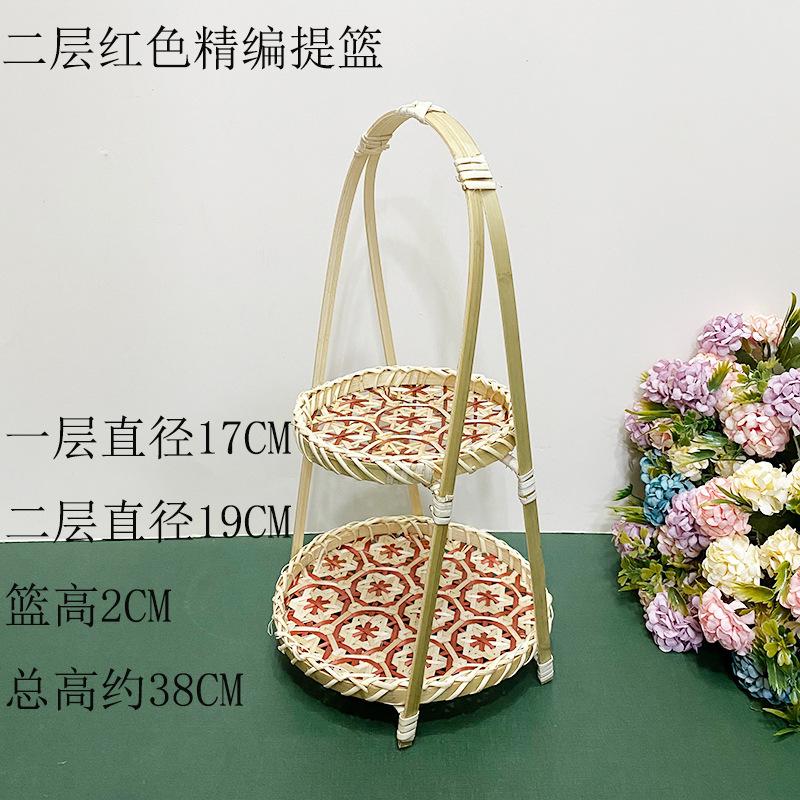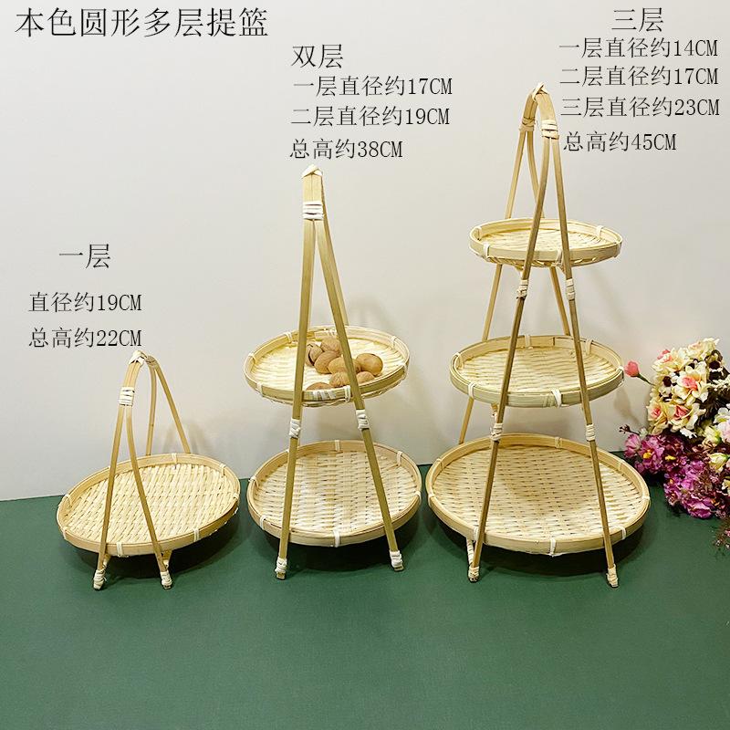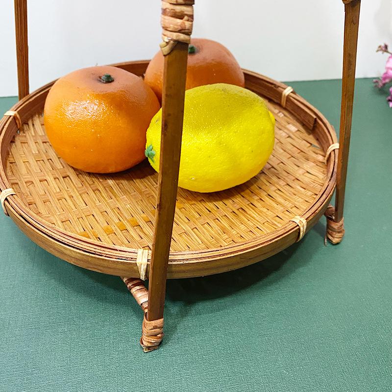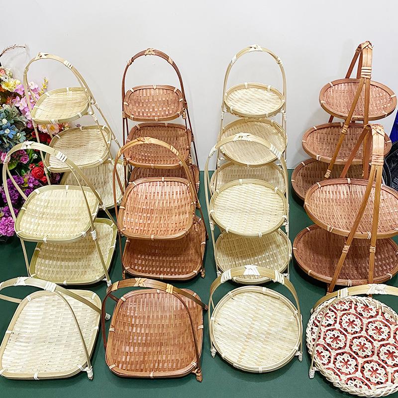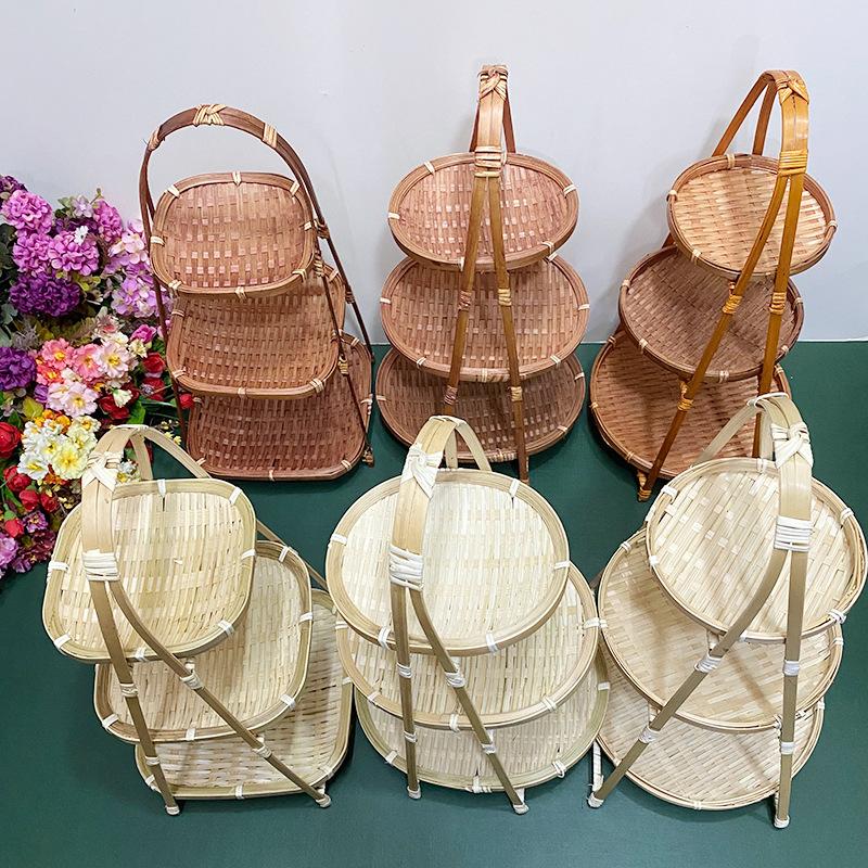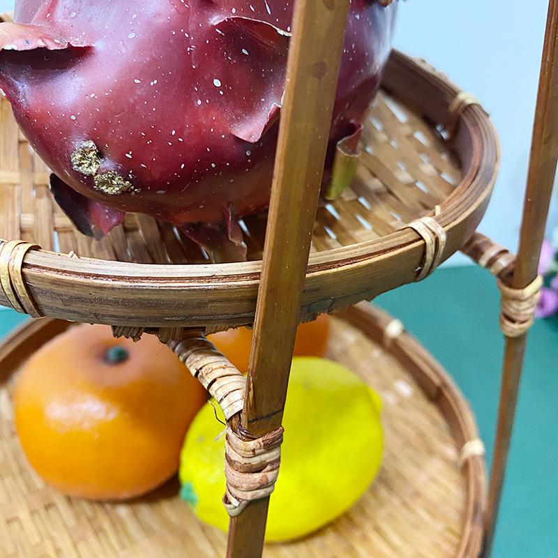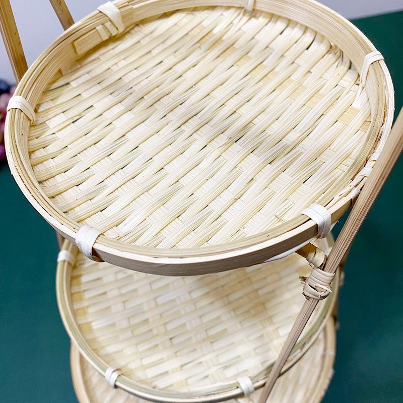 Cesta de Bambú Hecha a Mano Cesta de Frutas Hotel Multicapa Cesta de Bambú Pequeña Boda Redonda Cesta Pequeña Cesta Creativa para Almacenamiento en el Hogar