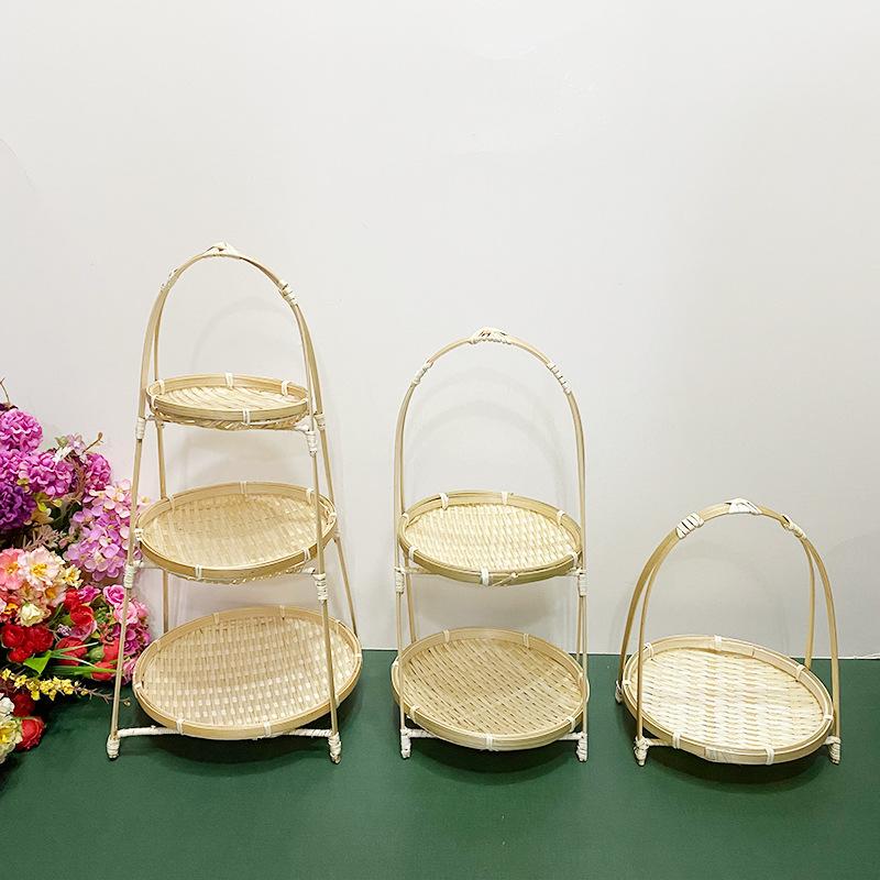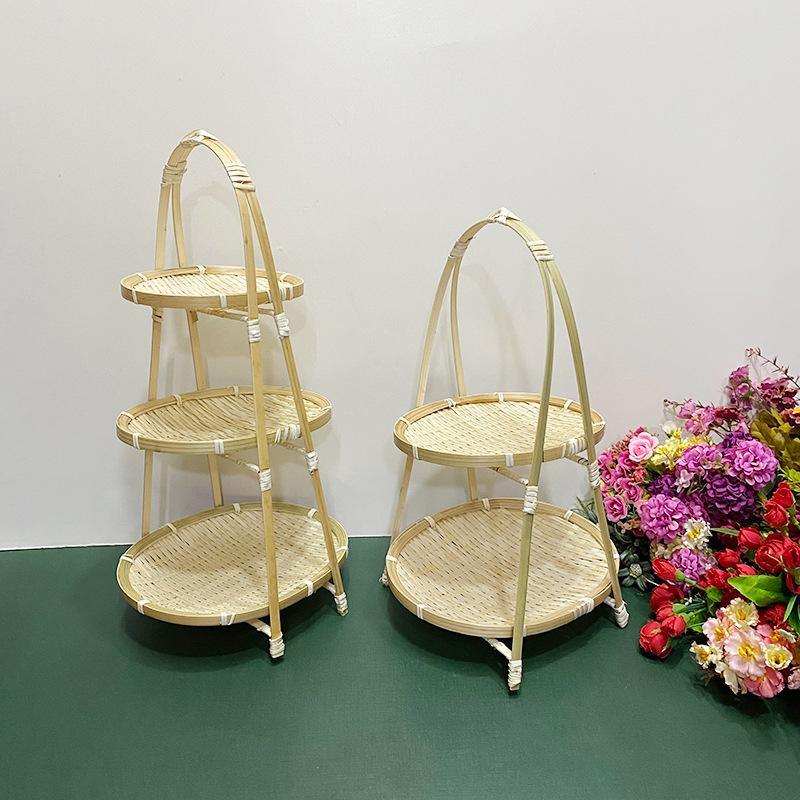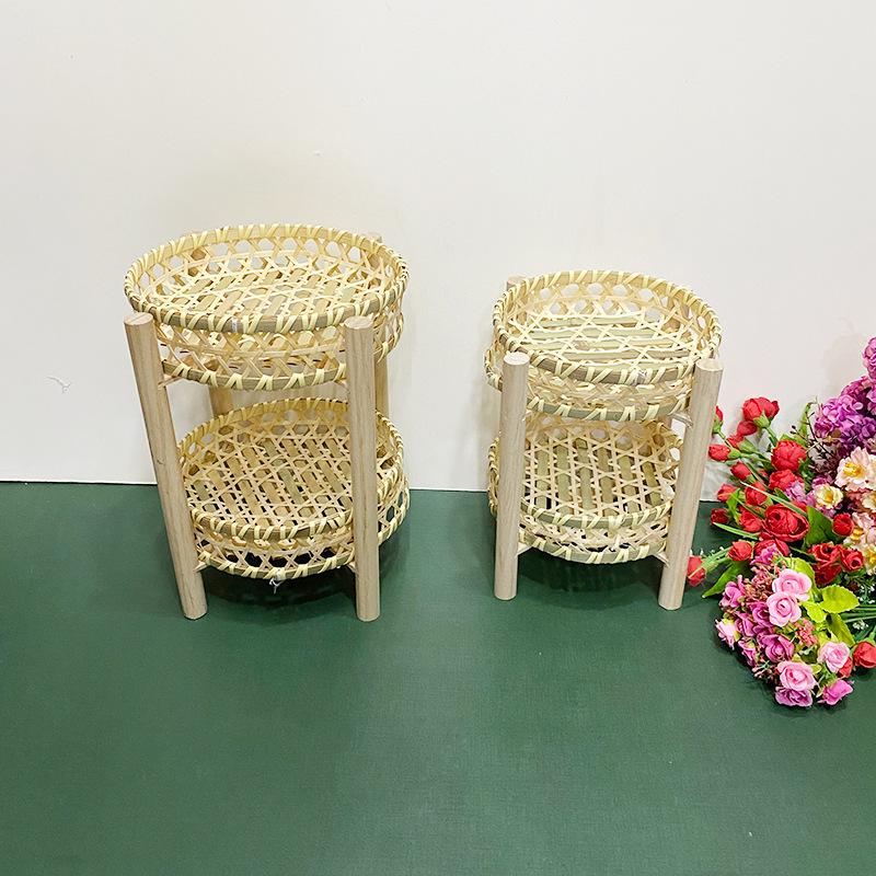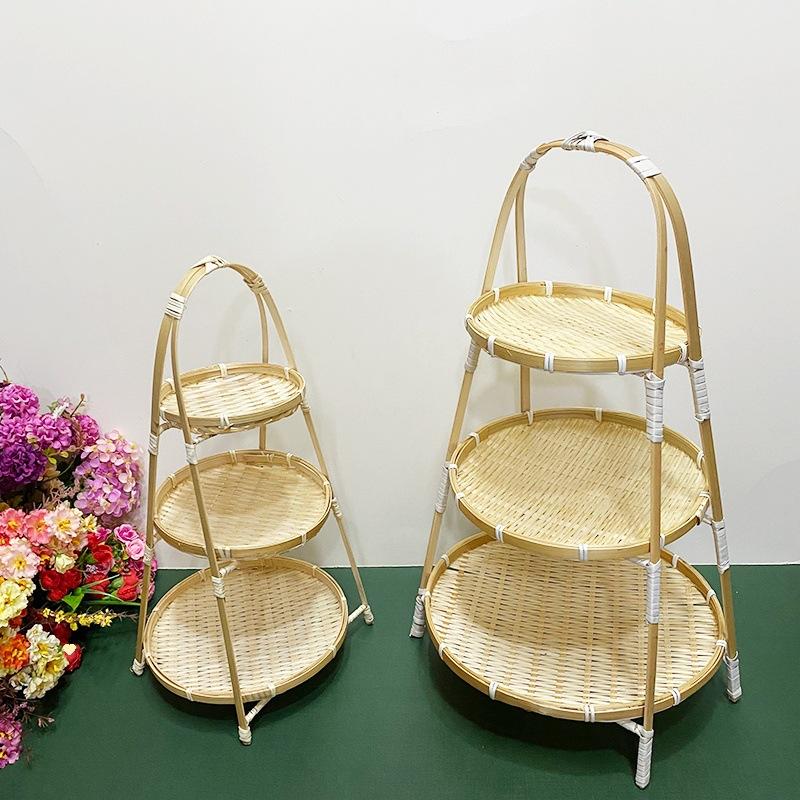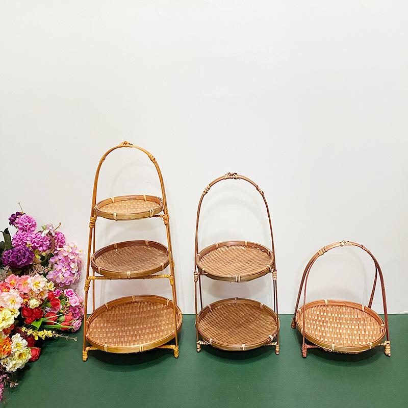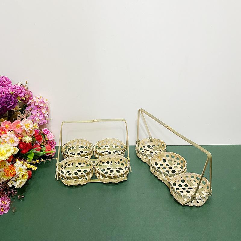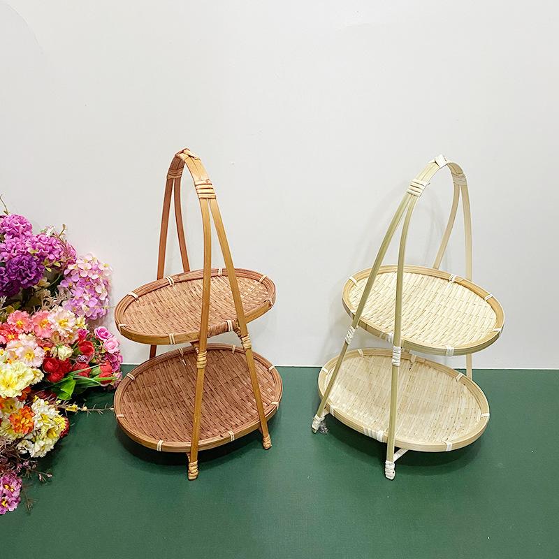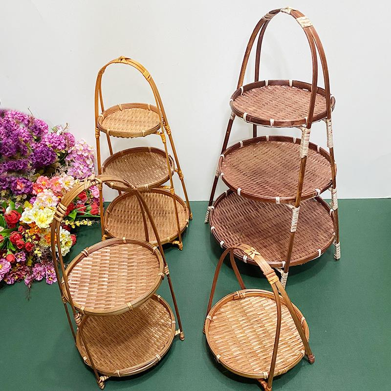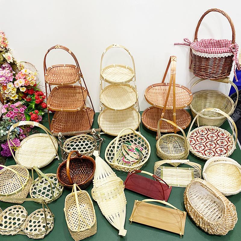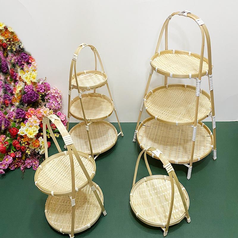 Cesta de Bambú Hecha a Mano Cesta de Frutas Hotel Multicapa Cesta de Bambú Pequeña Boda Redonda Cesta Pequeña Cesta Creativa para Almacenamiento en el Hogar