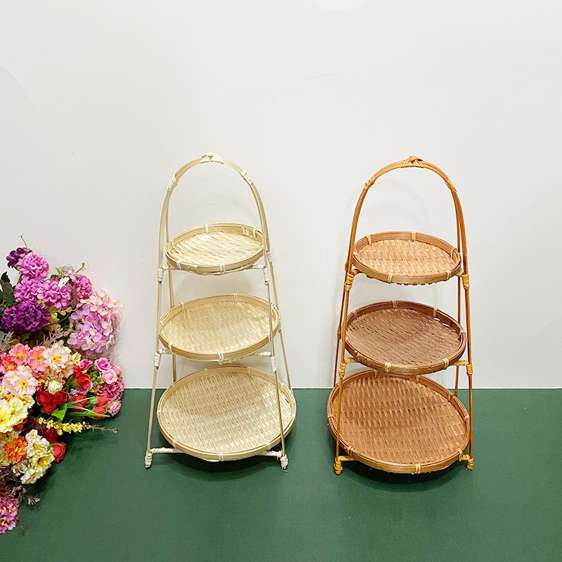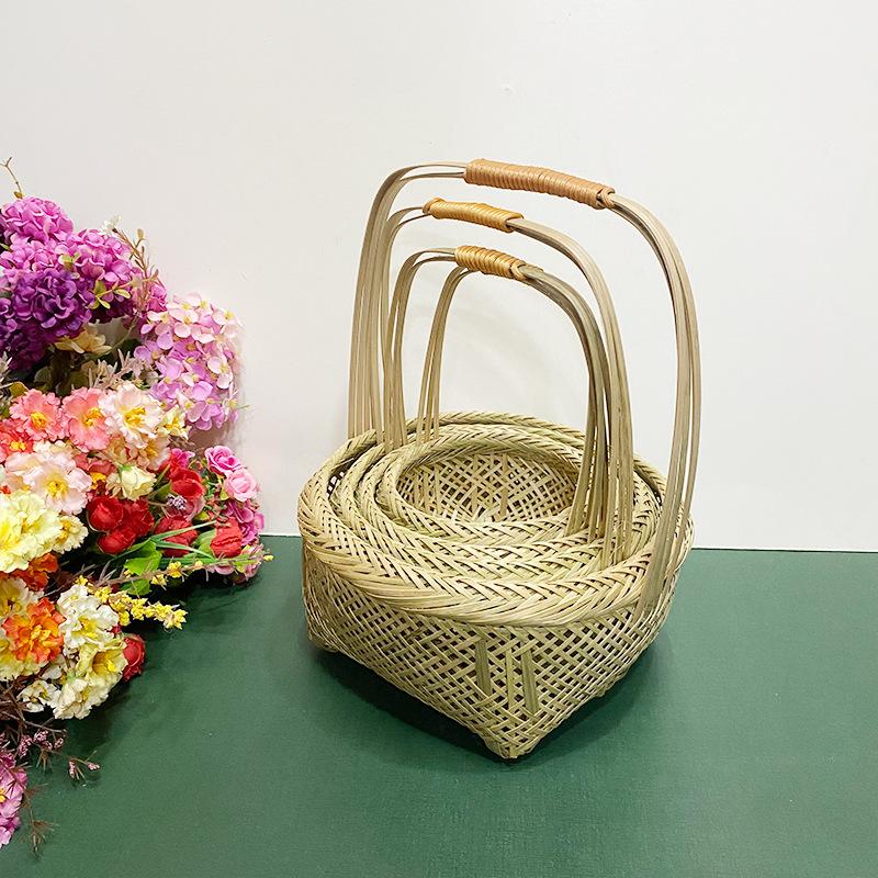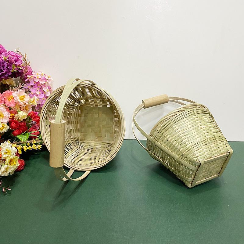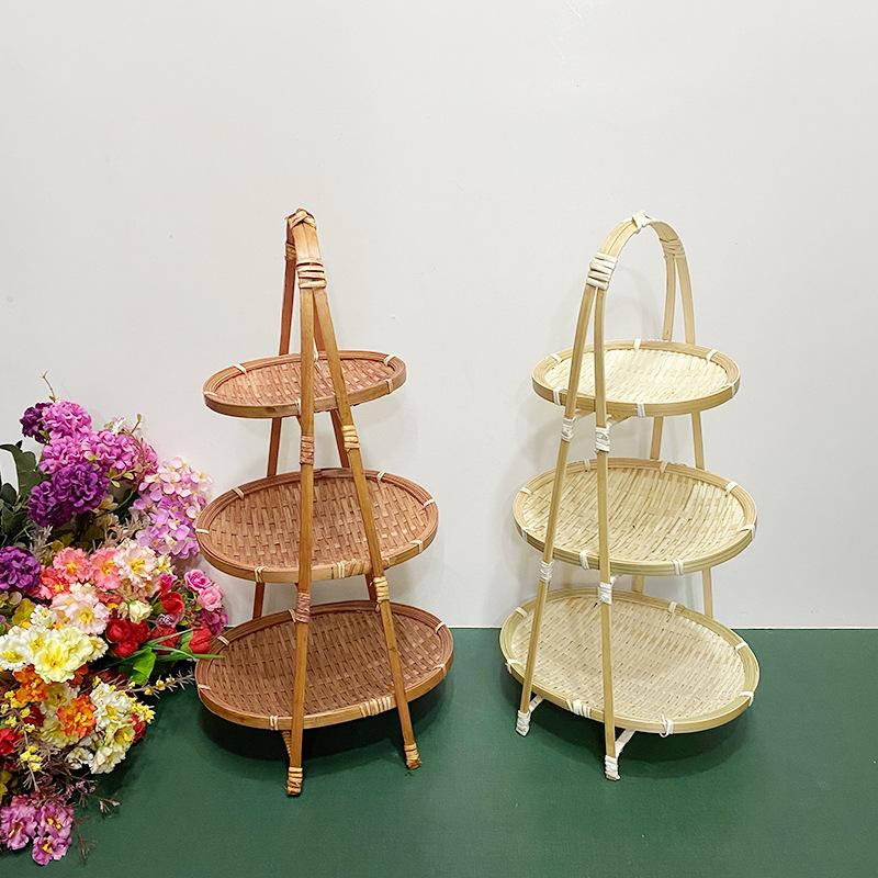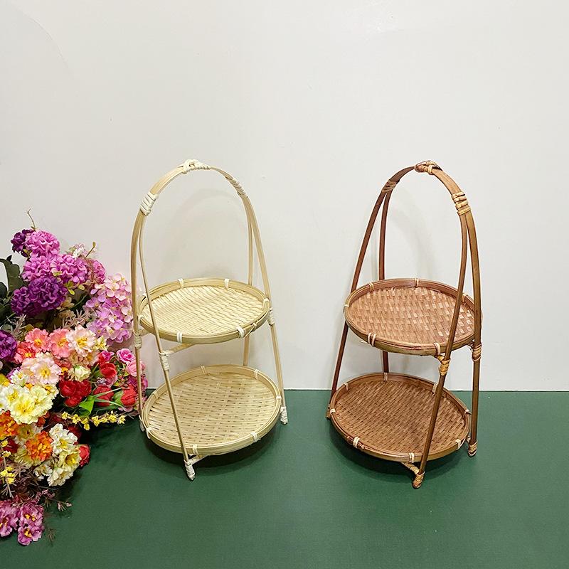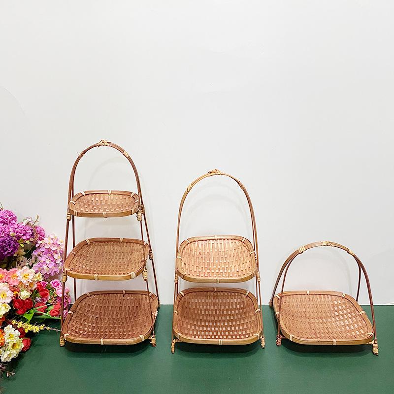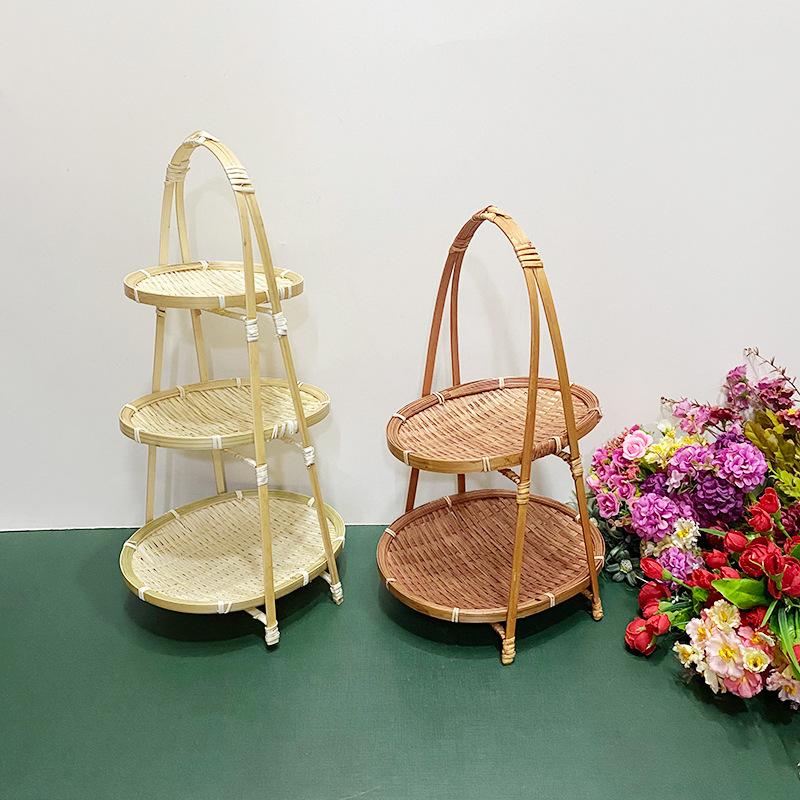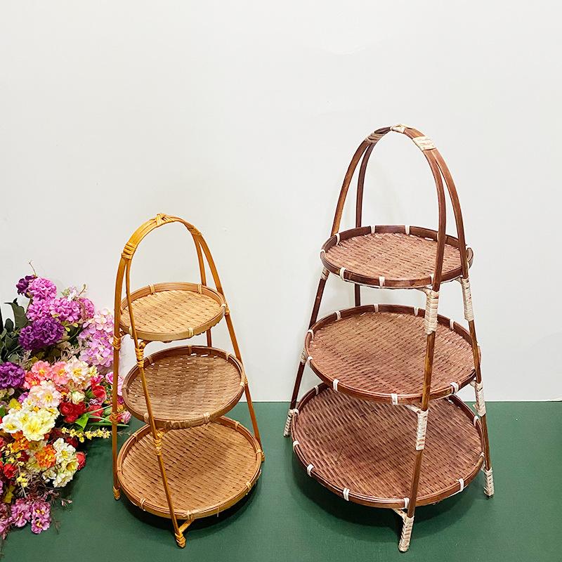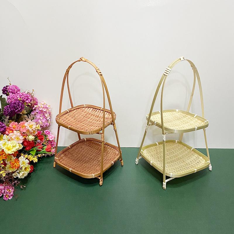 Cesta de Bambú Hecha a Mano Cesta de Frutas Hotel Multicapa Cesta de Bambú Pequeña Boda Redonda Cesta Pequeña Cesta Creativa para Almacenamiento en el Hogar