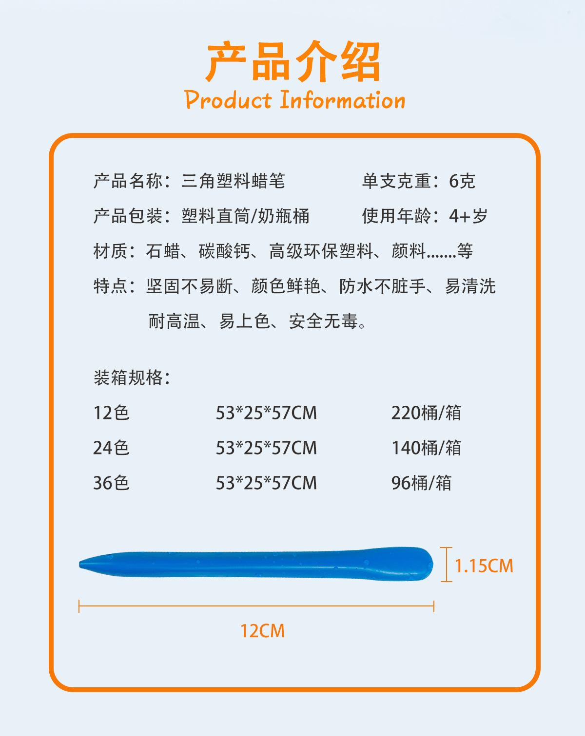 12 Color Triangle Crayon-Straight Barrel, 24 Color Triangle Crayon-Straight Barrel, 36 color triangle pole cra...