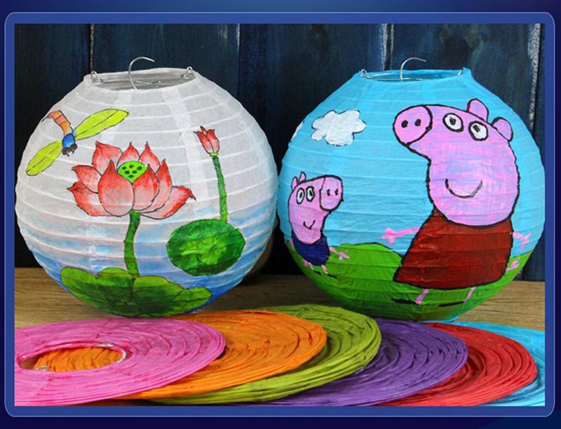 Linterna de papel en blanco de color al por mayor, hecha a mano, para niños, pintura de jardín de infantes, grafiti, adornos decorativos, lámpara plegable portátil