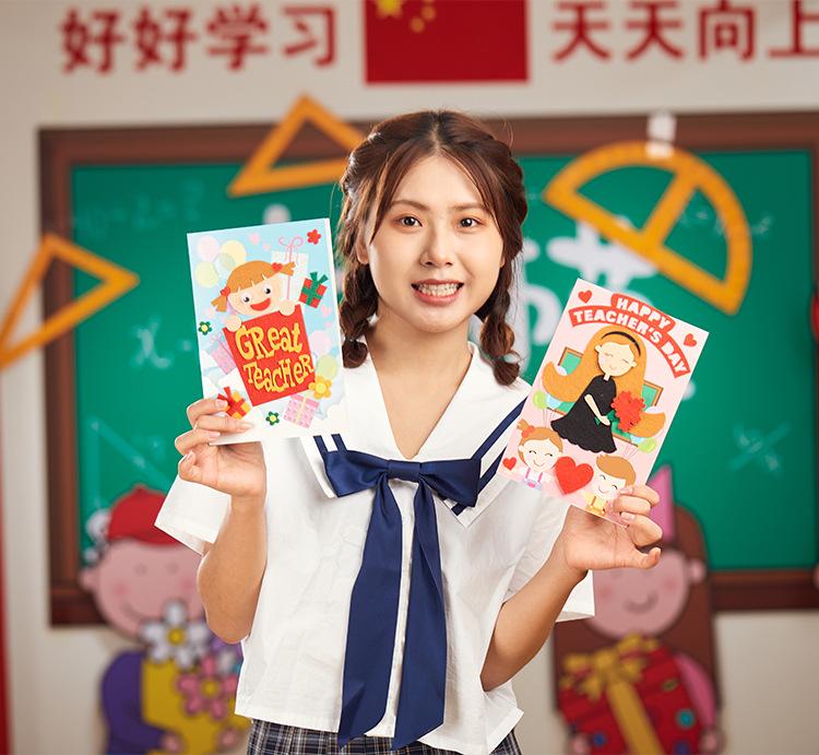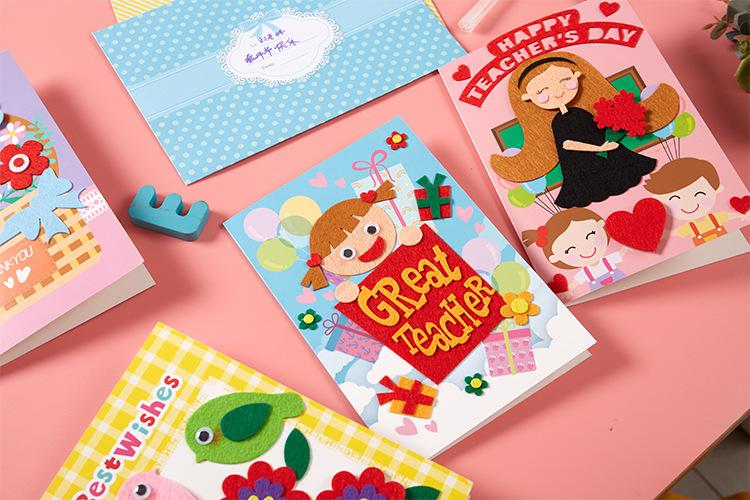 Regalo Día de la Mujer Materiales DIY Hechos a Mano Tarjeta de Felicitación Tridimensional con Bendición Escrita a Mano para Niños Pequeños y Niños Tarjeta de Papel