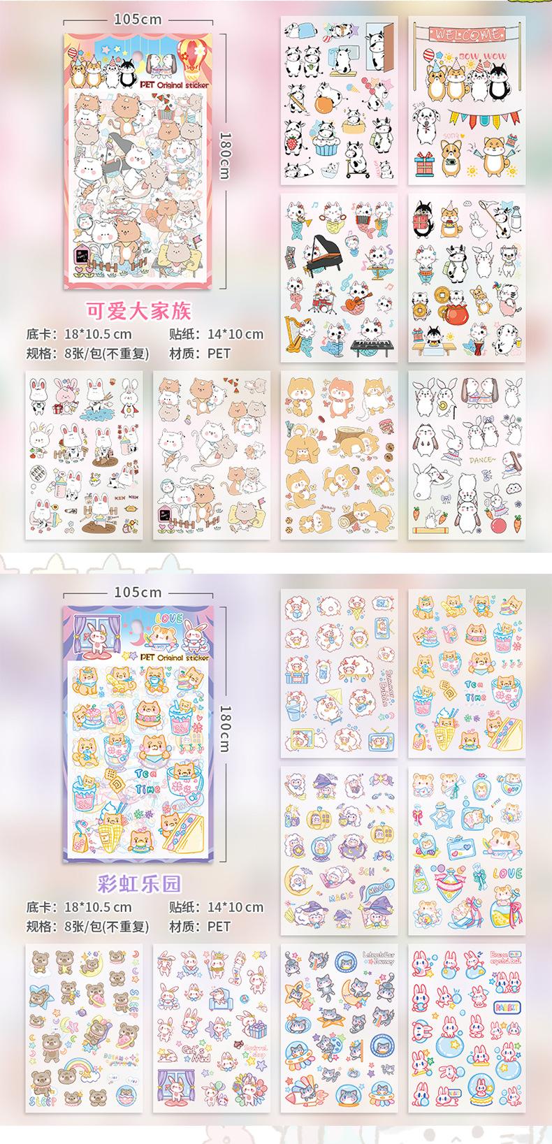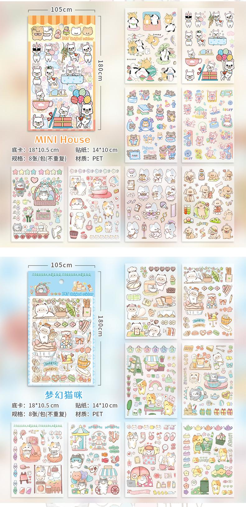 Bonitas pegatinas hechas a mano con dibujos de mascotas, divertidas pegatinas autoadhesivas para cuentas de mano para niños, pegatinas impermeables con expresión para niños pequeños.