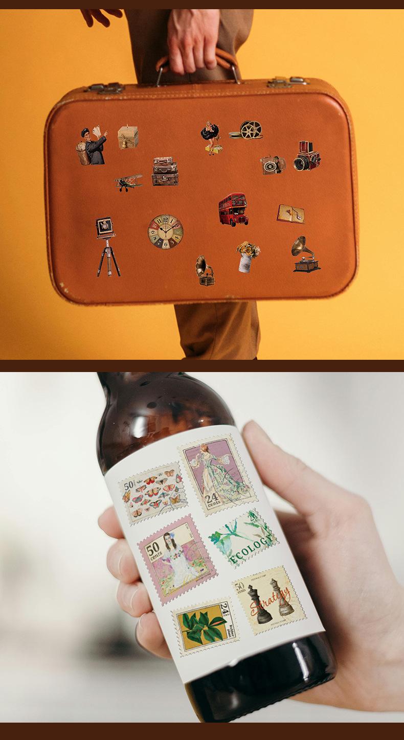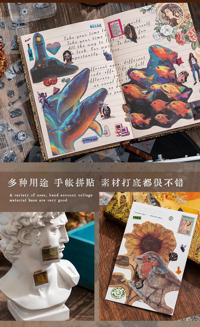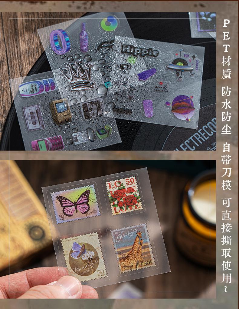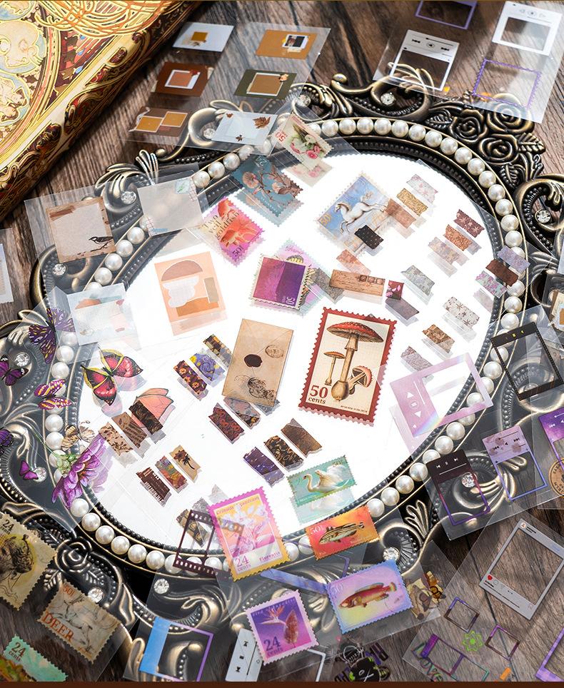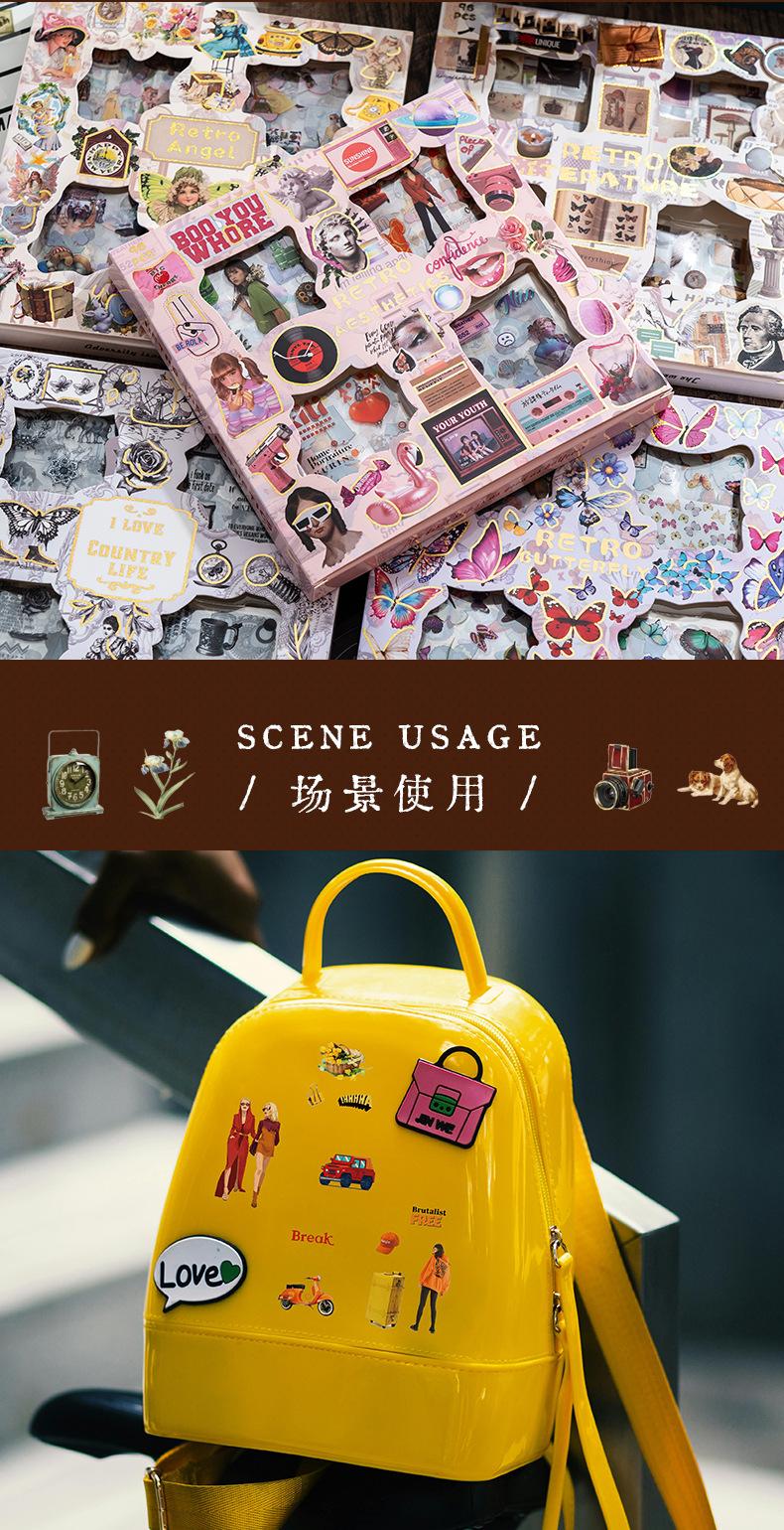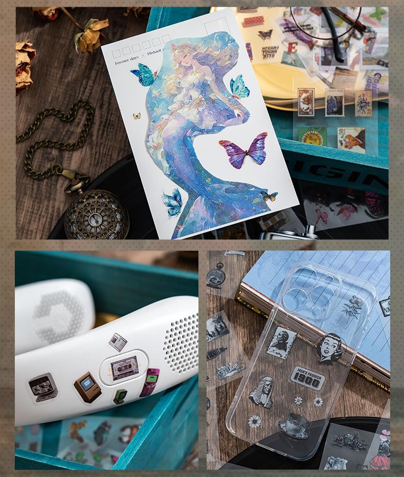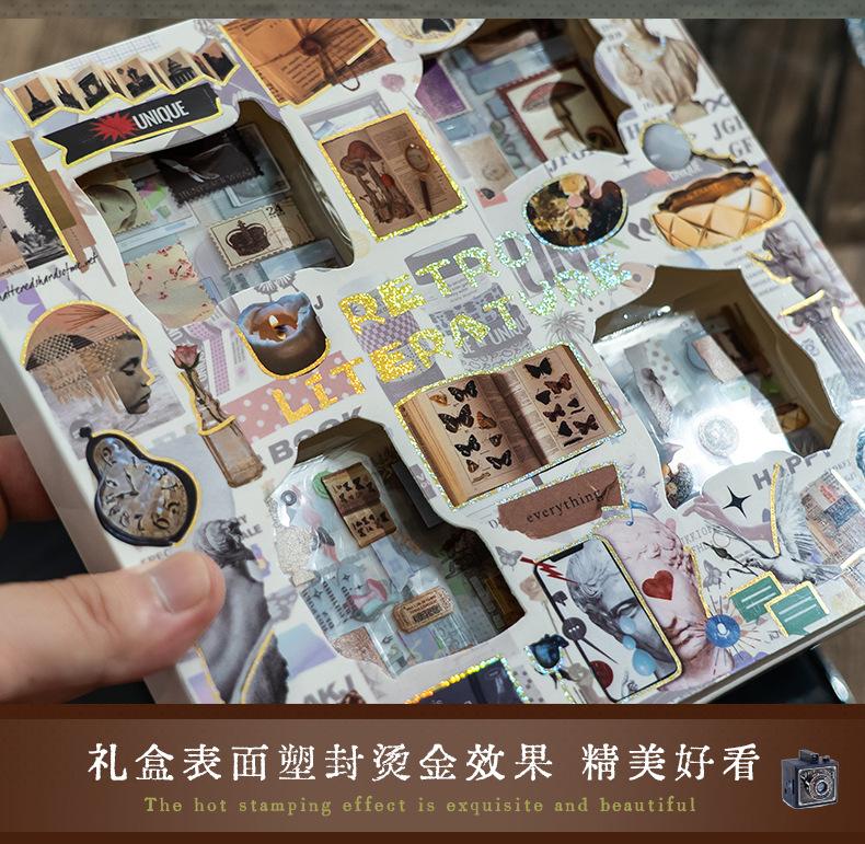 Calcomanías en caja 96 autoadhesivas impermeables ins retro mariposa planta material para cuenta de mano collage diy calcomanías decorativas
