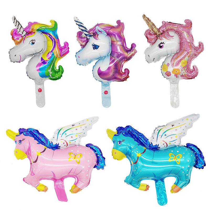 Globo de aluminio con diseño de unicornio transfronterizo, decoración para fiesta de cumpleaños, diseño de poni de dibujos animados, Polly y unicornio.