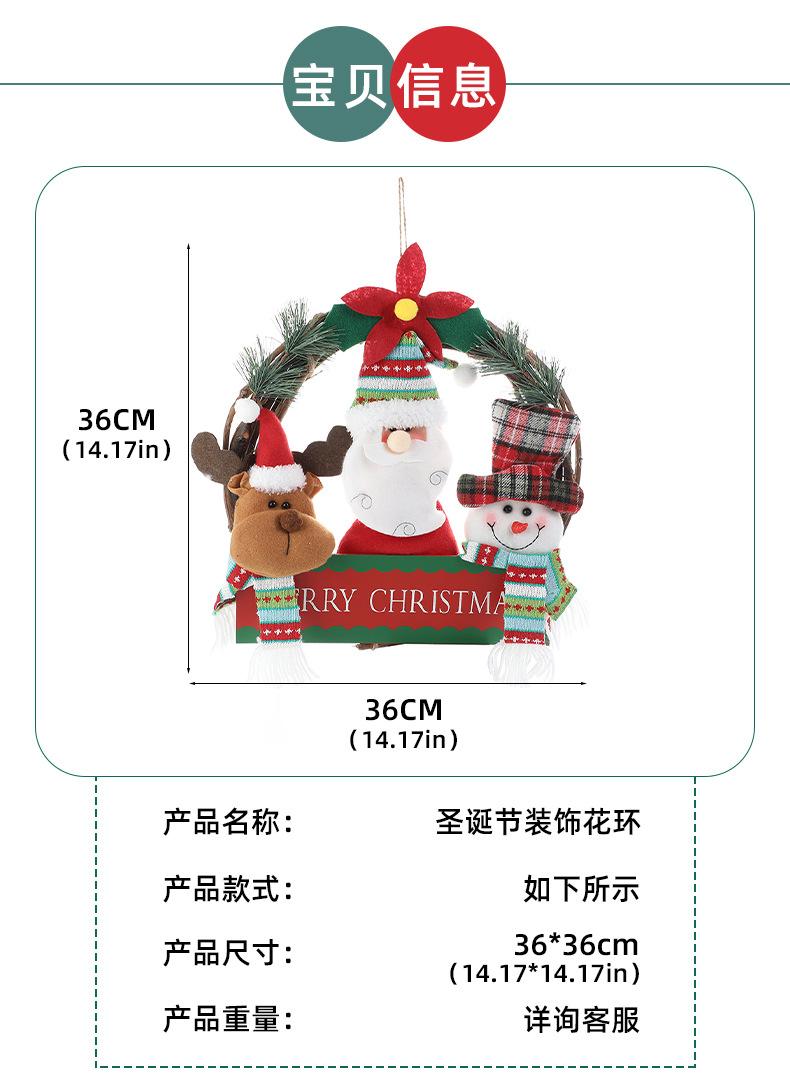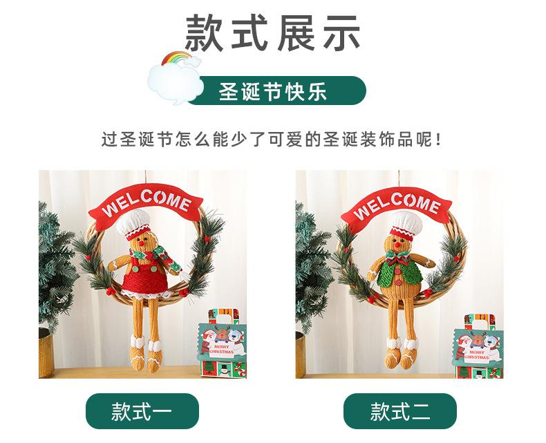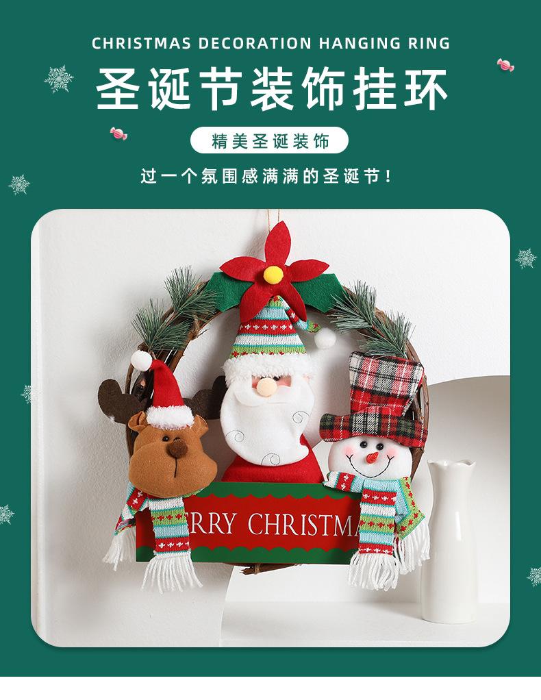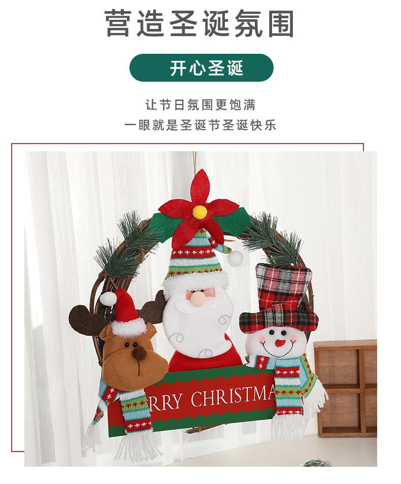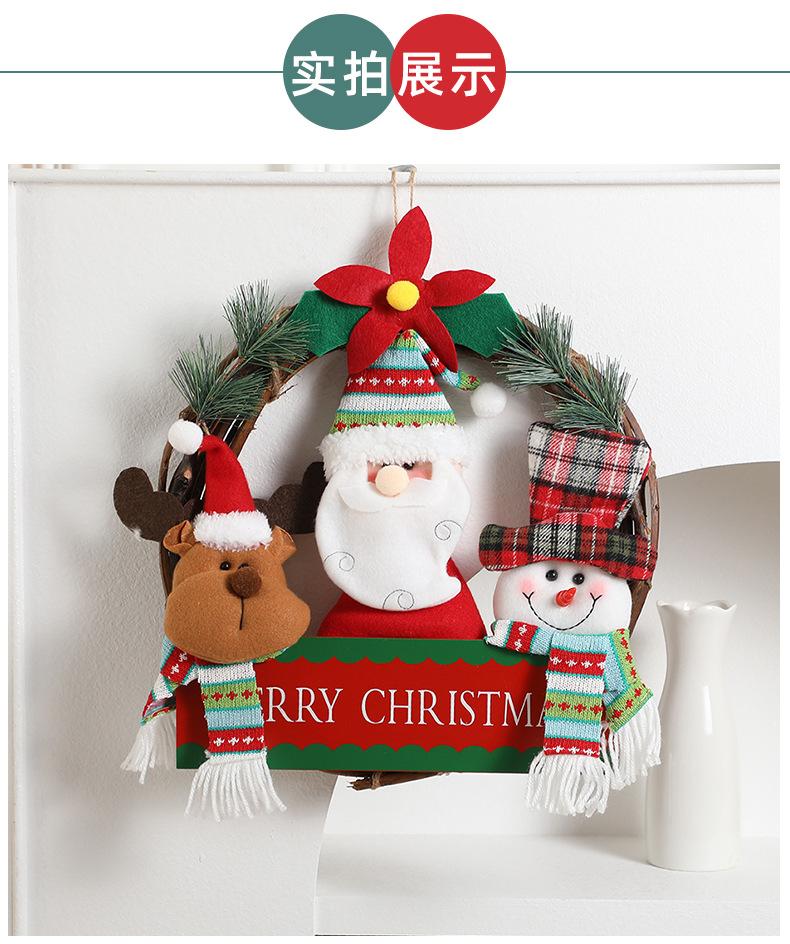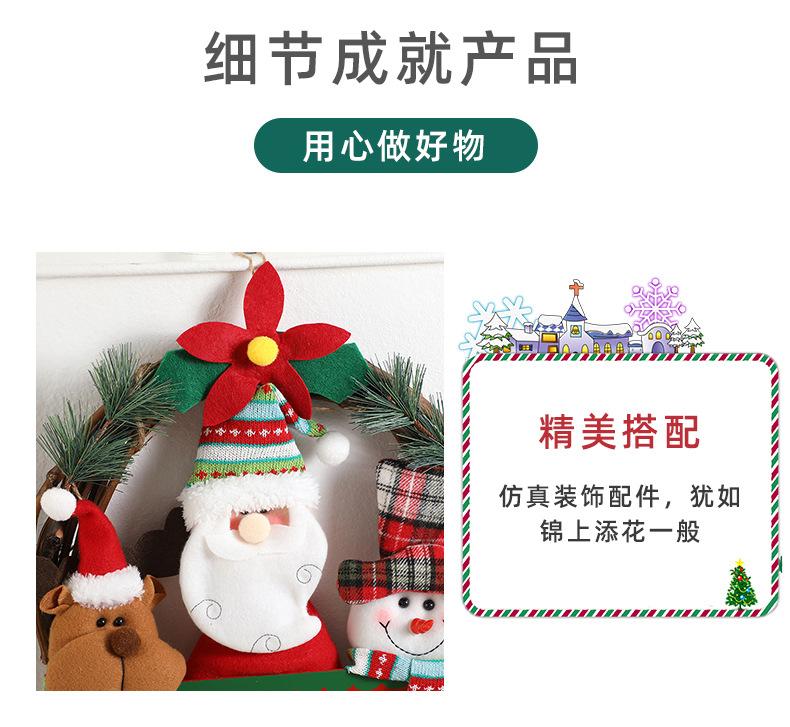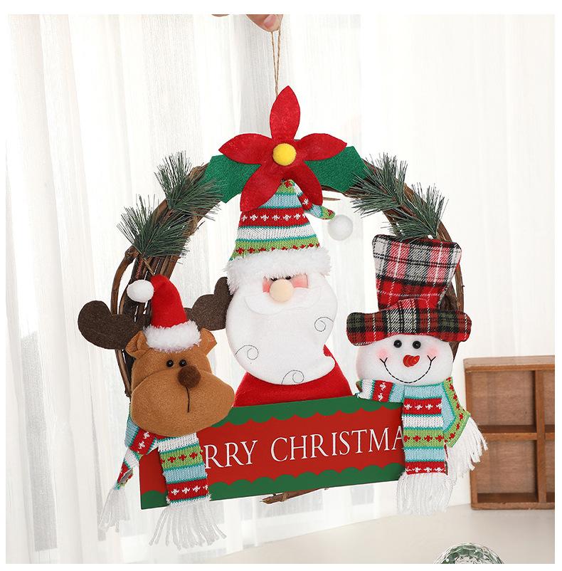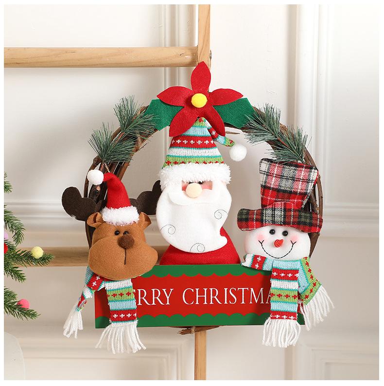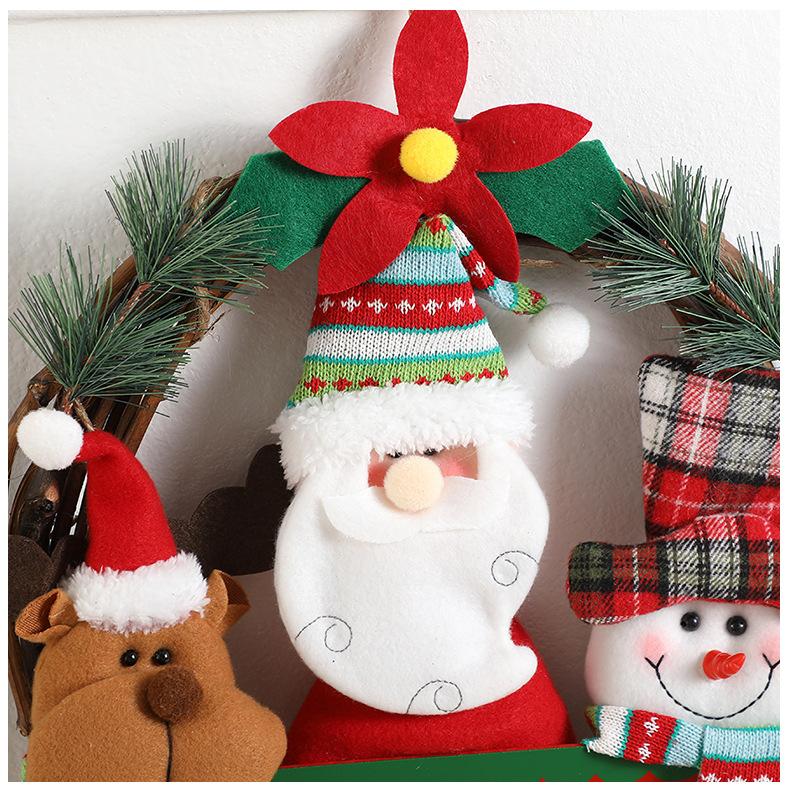 Corona de ratán de muñeco de Navidad de dibujos animados transfronteriza, decoraciones navideñas para el hogar, para colgar en la puerta, accesorios para la disposición de la escena fotográfica