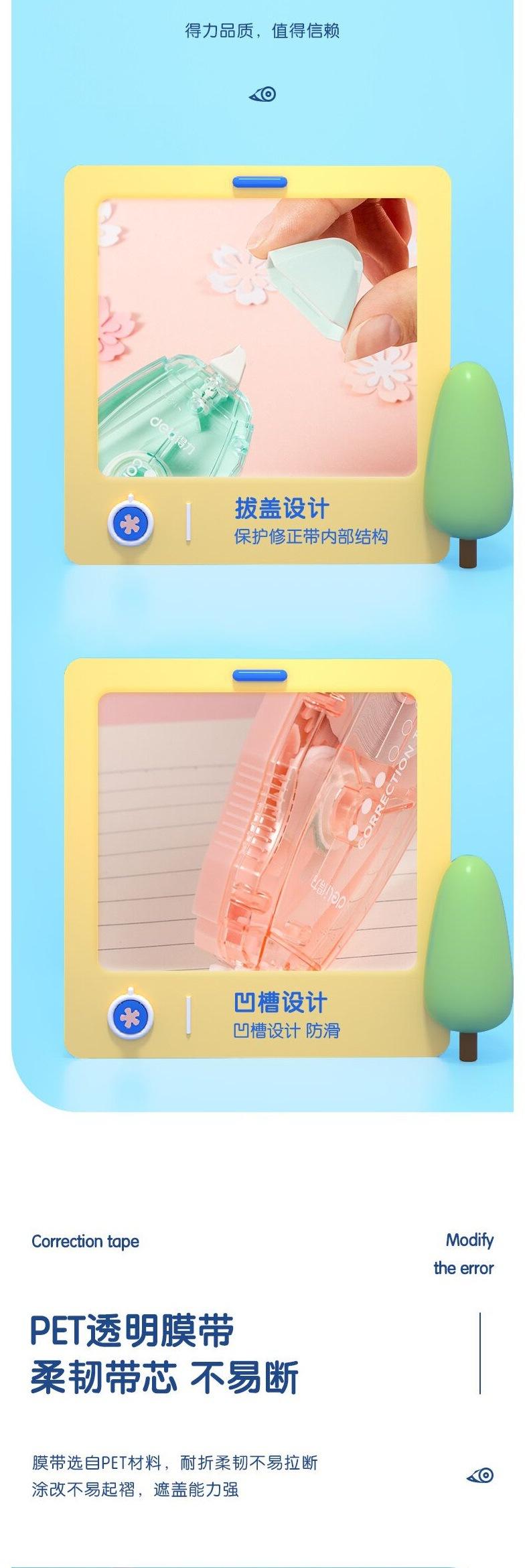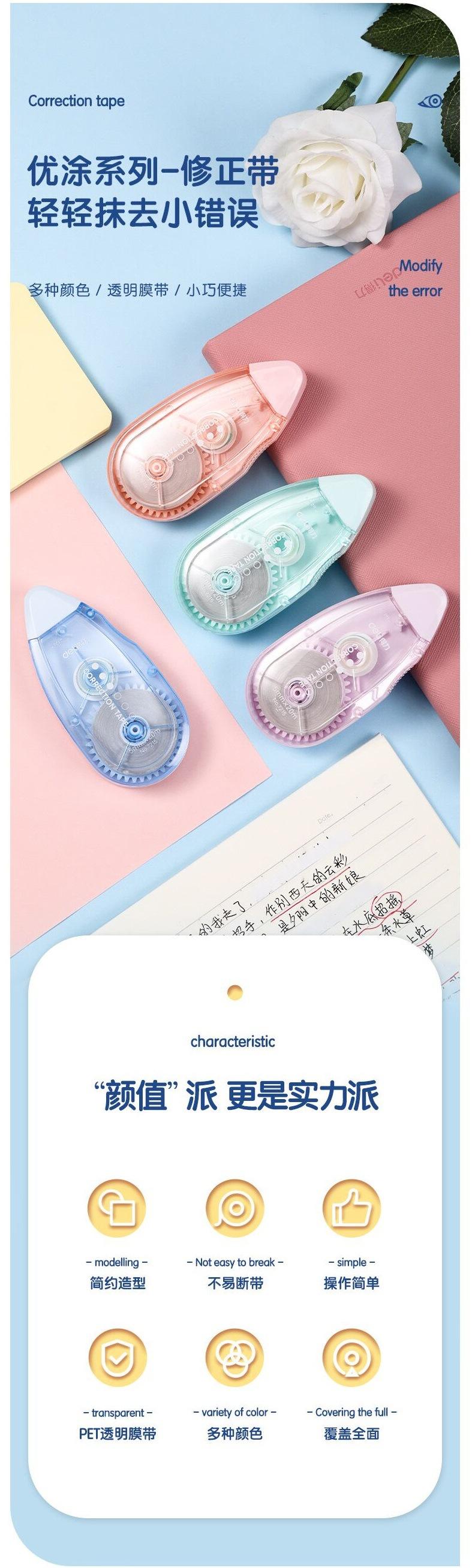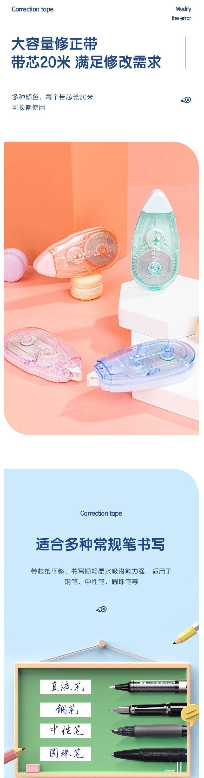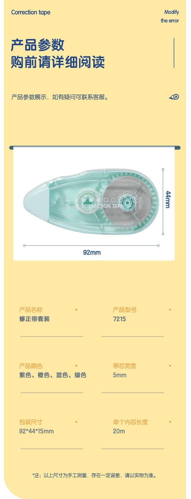 Cinta correctora Deli 7215, cinta correctora de forma simple, cinta correctora multicolor, cinta correctora de gran capacidad de 20 m
