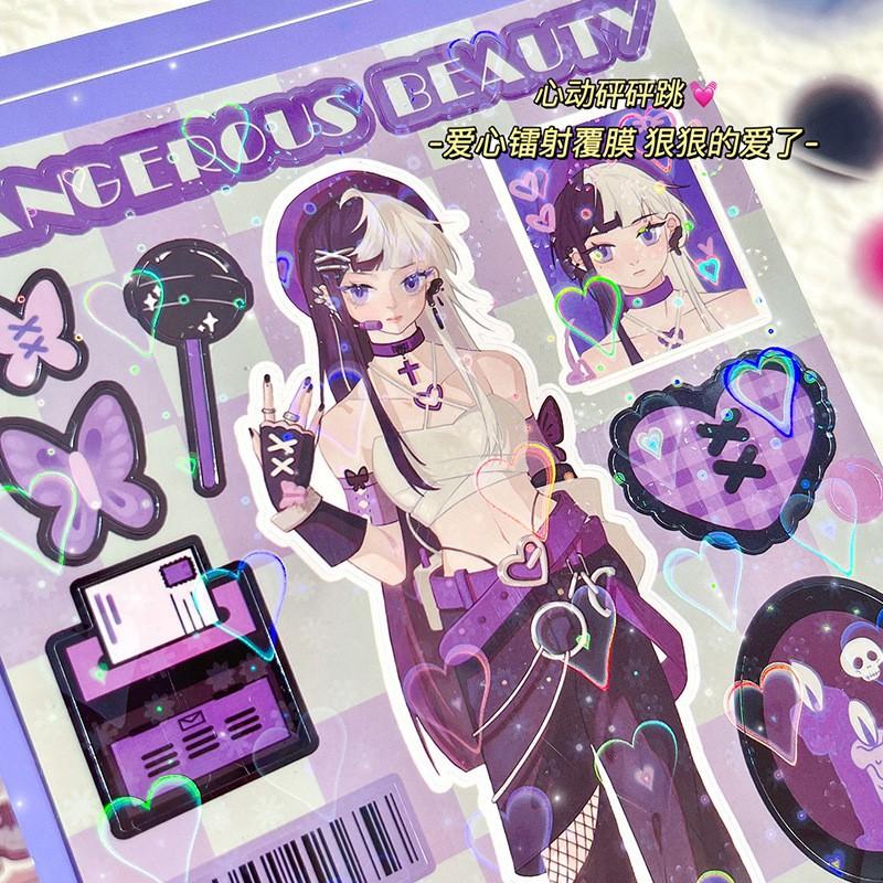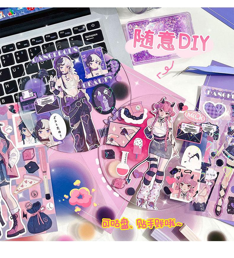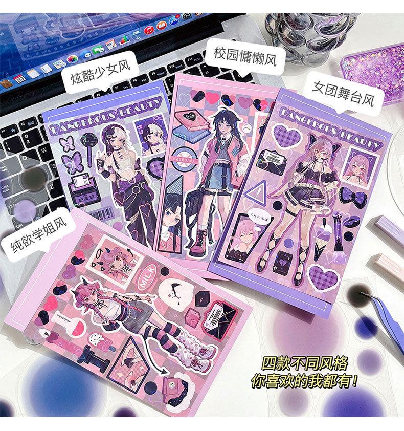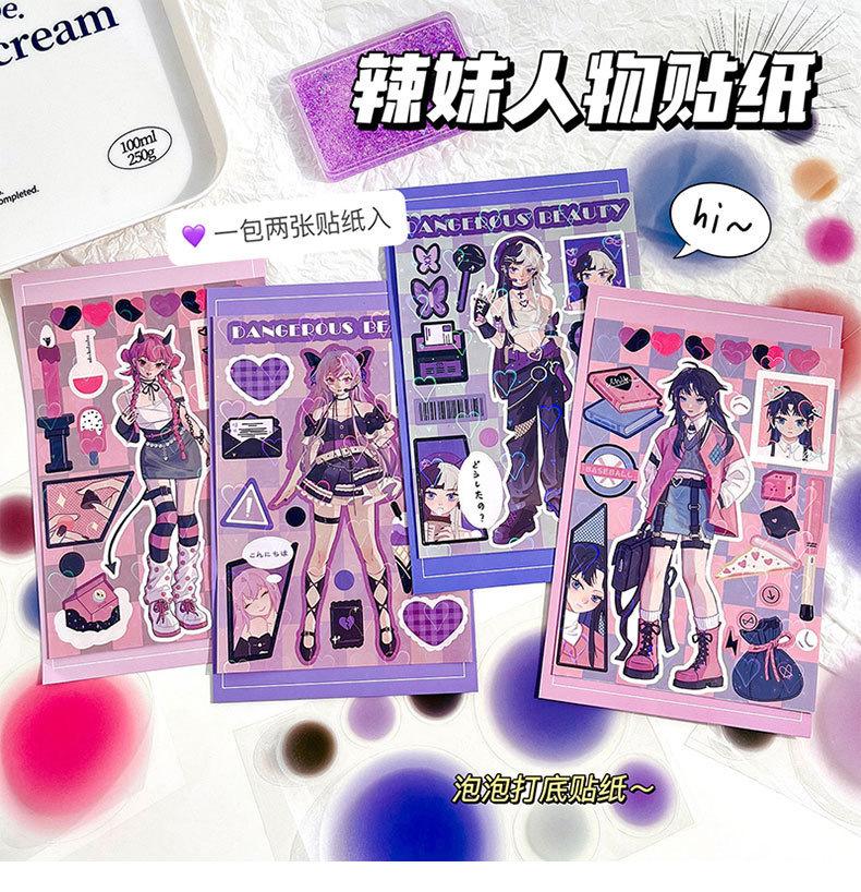 Versión coreana de la dulce pegatina de cuenta de mano de viento asiático de dibujos animados de chica sexy pegatina de tarjeta goo material decorativo personaje de cuenta de mano pegatina de bricolaje