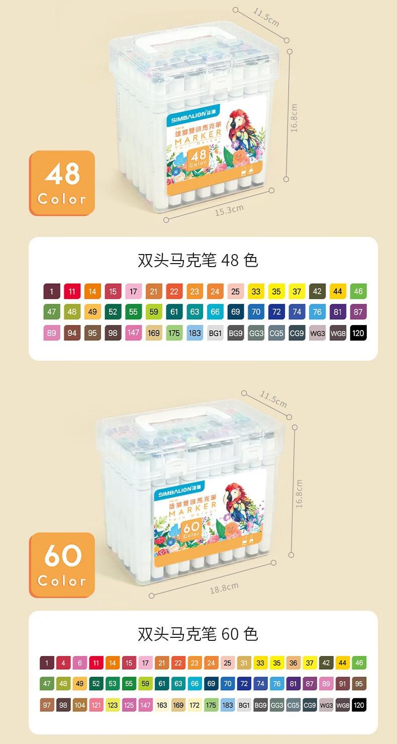 Juego de rotuladores de doble punta a base de aceite de 60 colores Lion, para animación estudiantil, acuarela a base de aceite, pincel de pintura de doble punta para niños