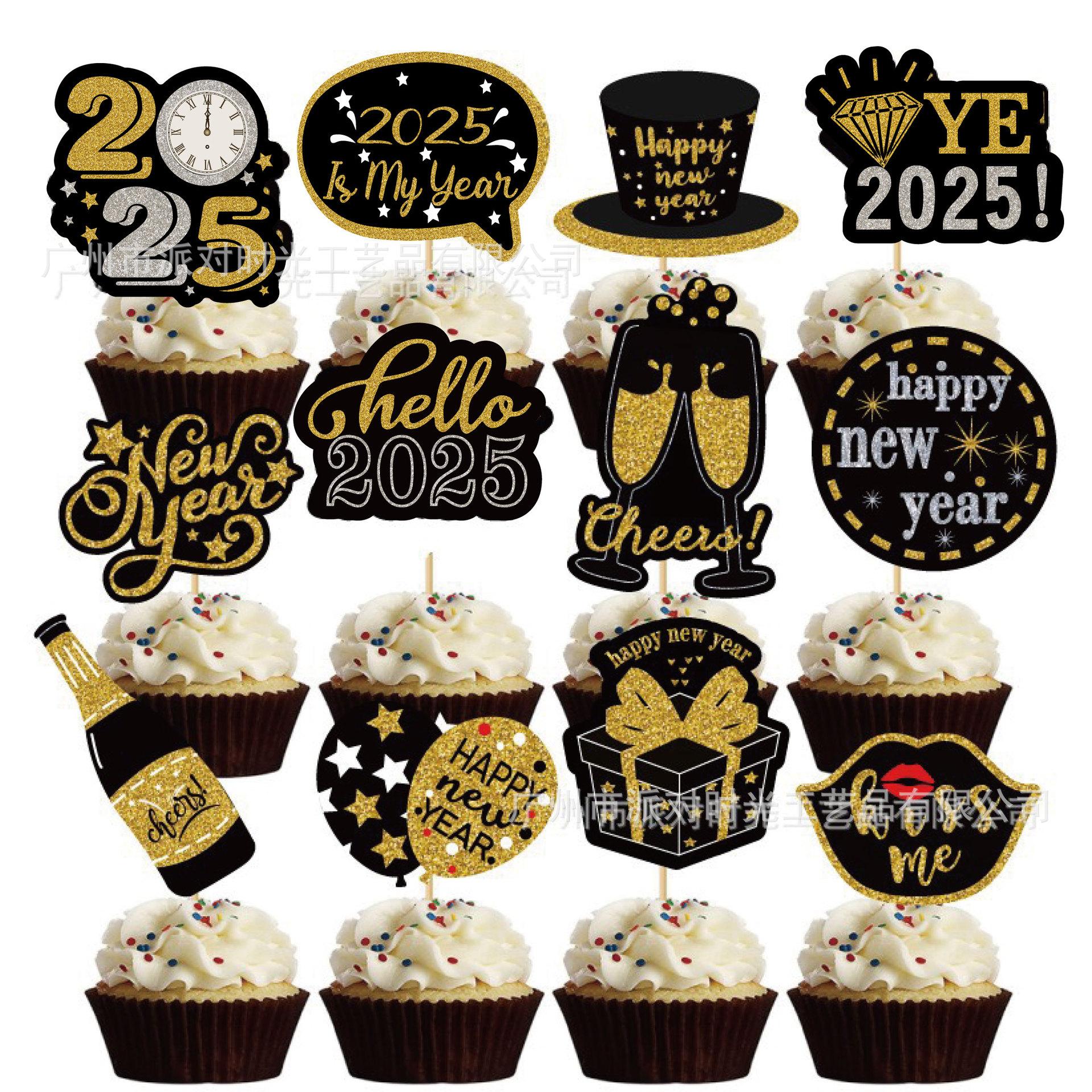 Inserción de pastel de Año Nuevo 2025 Suministros de celebración de fiesta de Año Nuevo Inserción de decoración Exclusiva transfronteriza