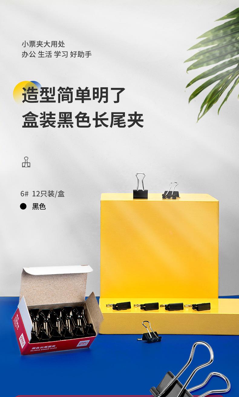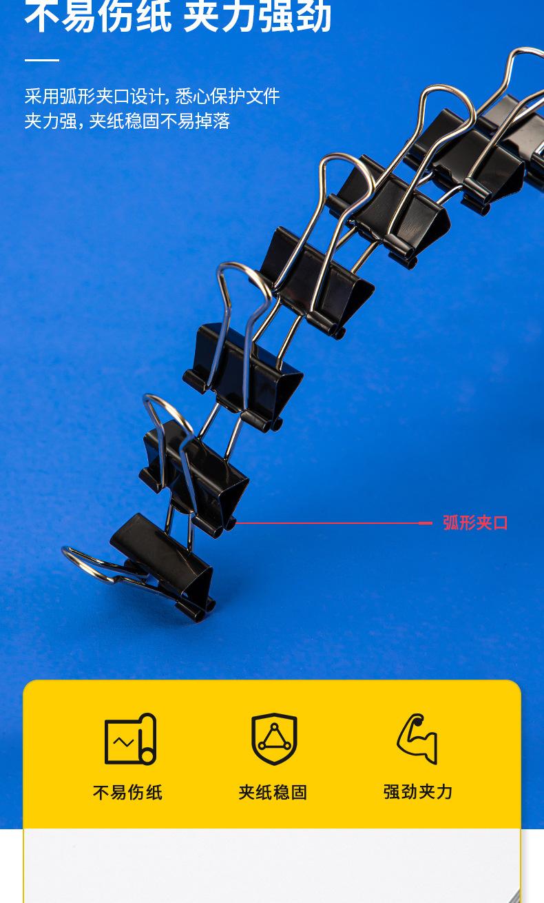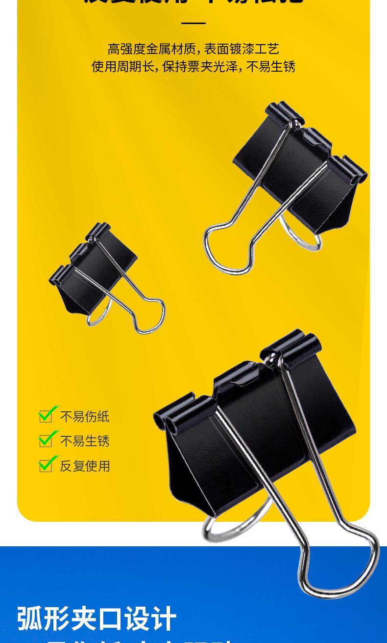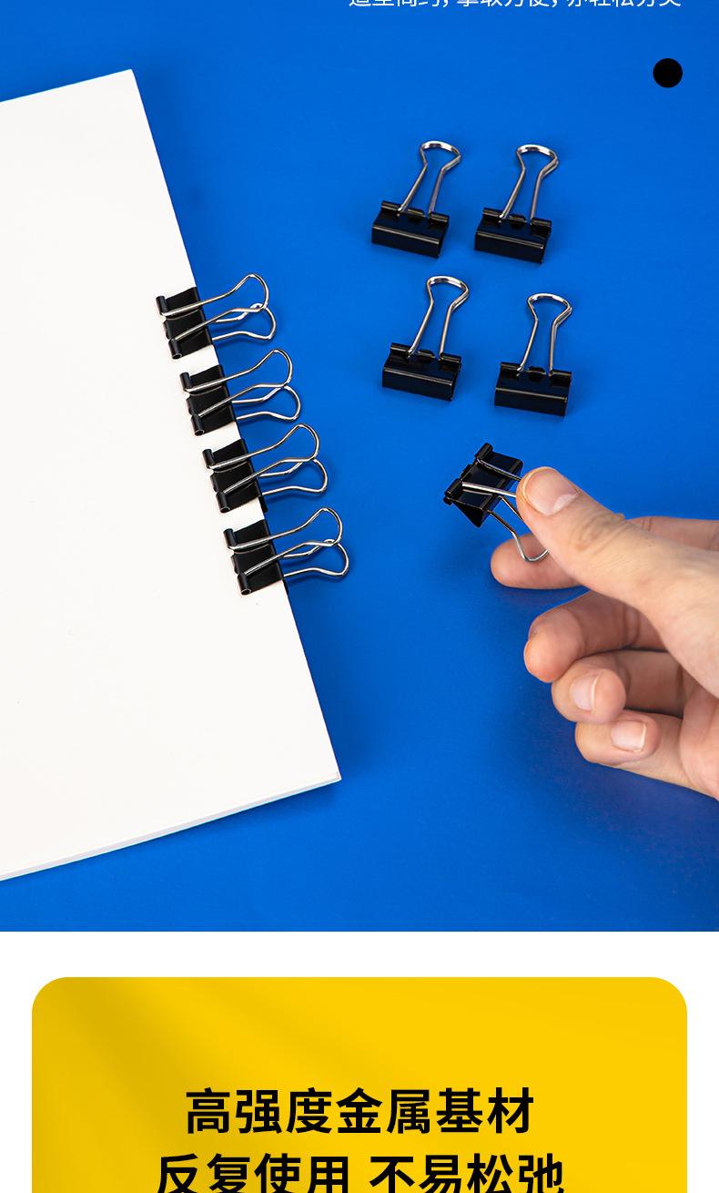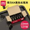 Deli 9546 - Clip de cola larga negro para billetes de hierro, tamaño grande, mediano y pequeño, 12 unidades, 15 mm