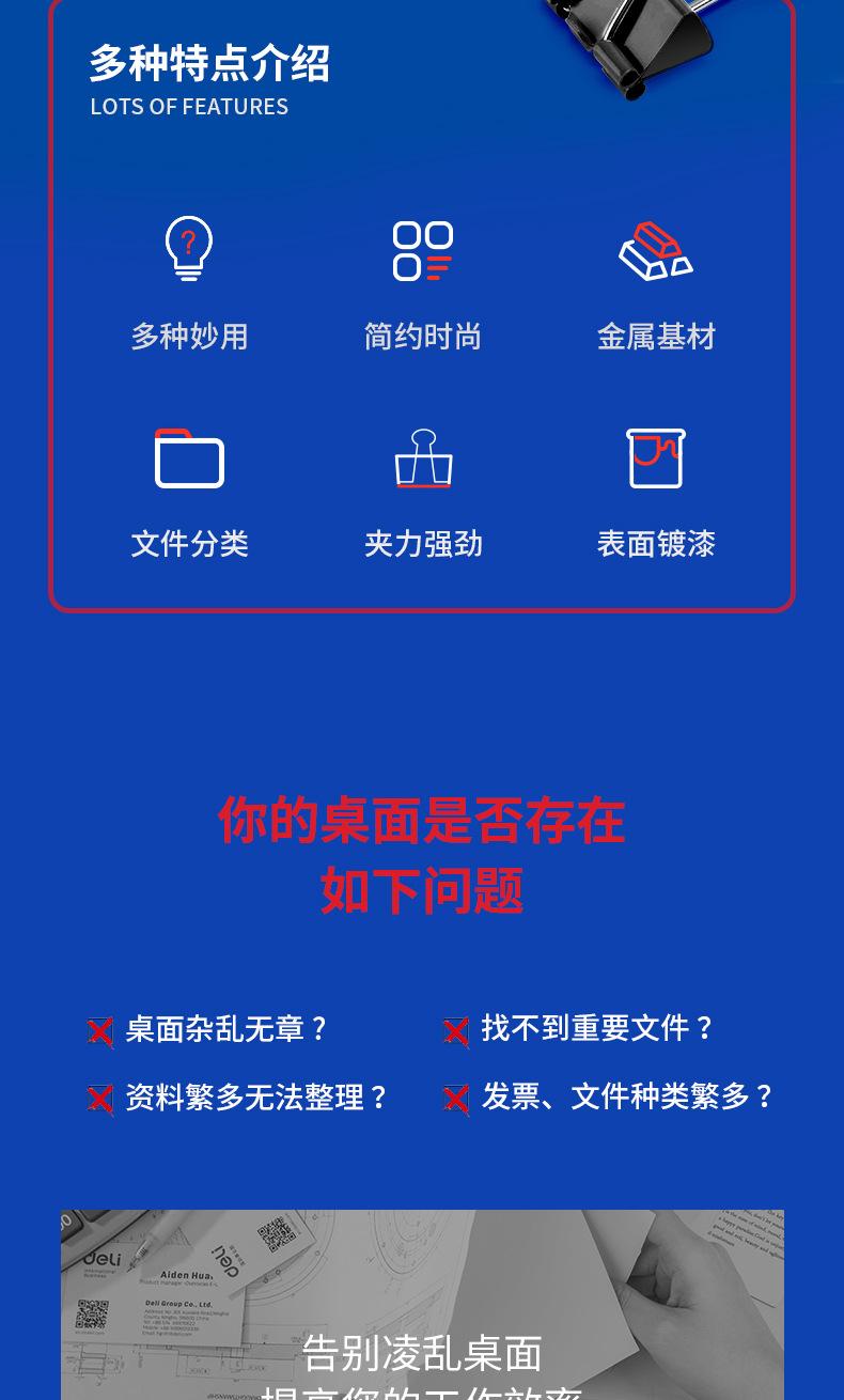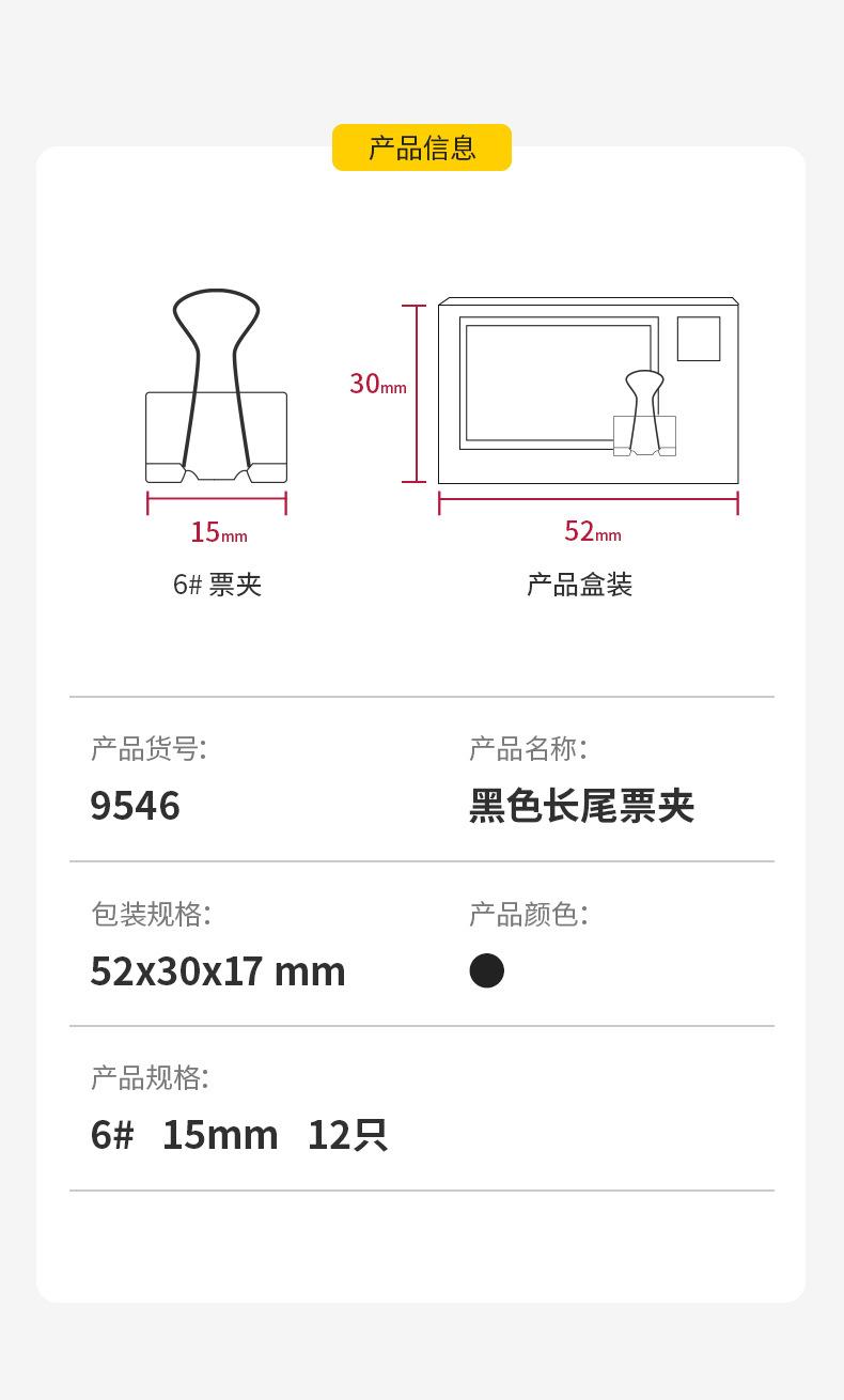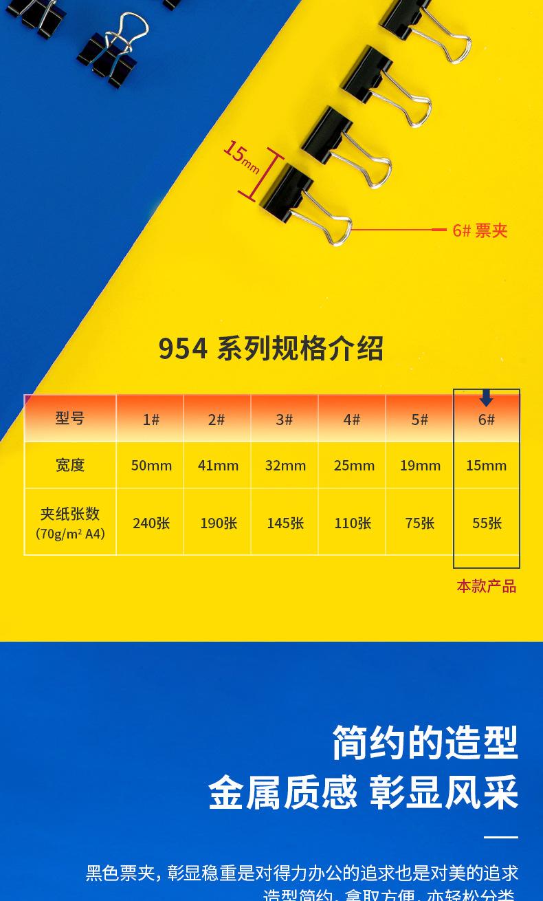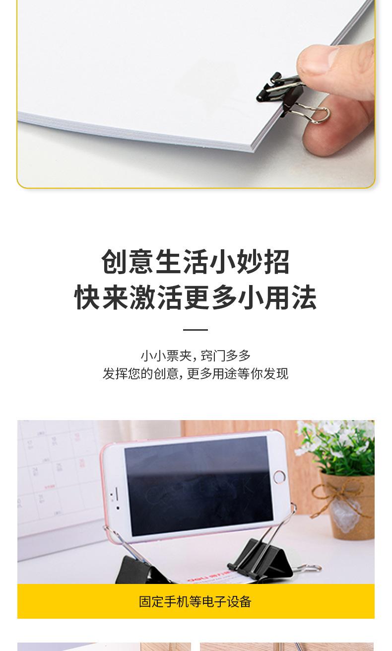 Deli 9546 - Clip de cola larga negro para billetes de hierro, tamaño grande, mediano y pequeño, 12 unidades, 15 mm