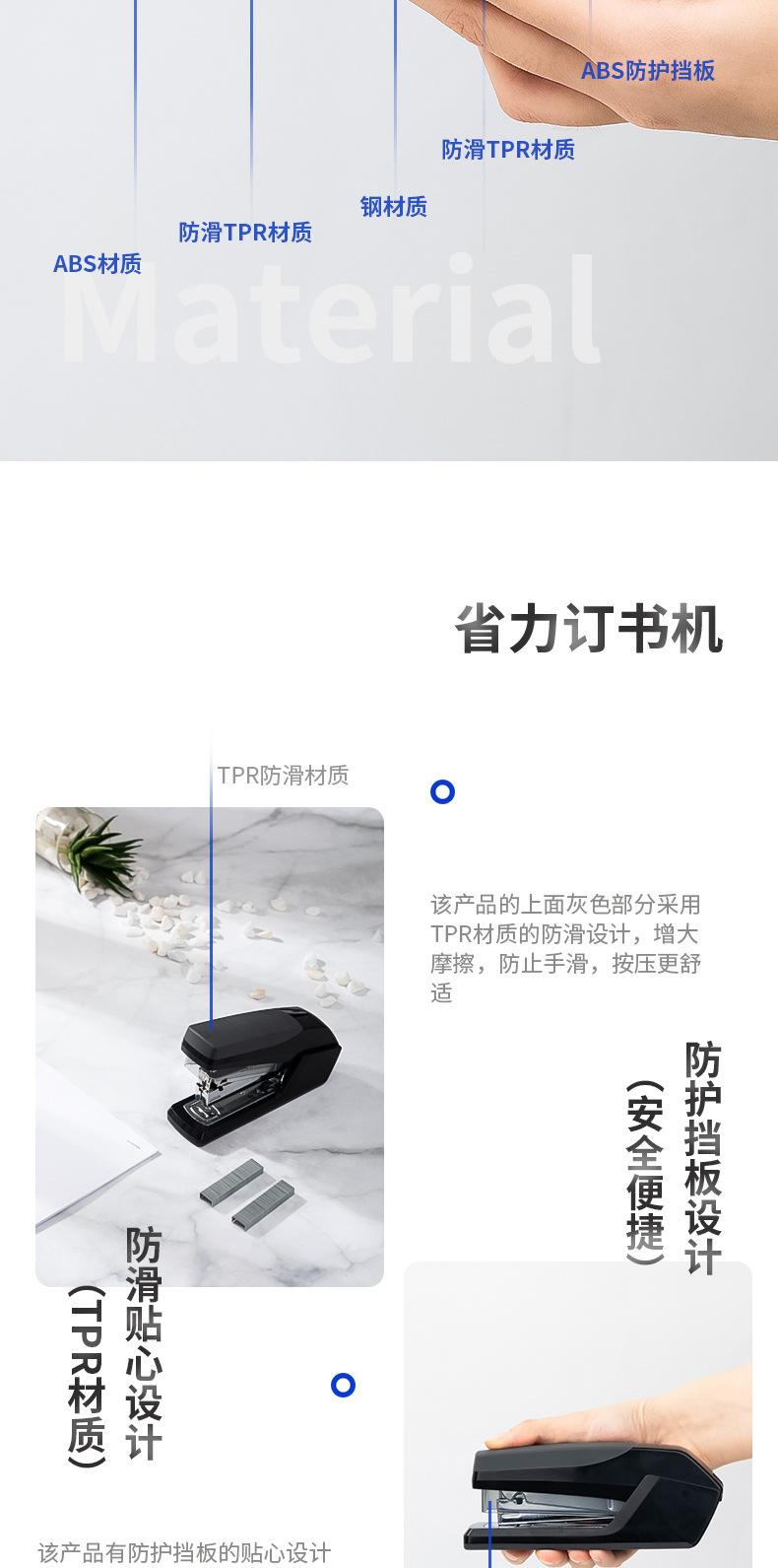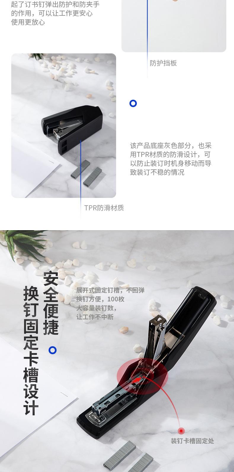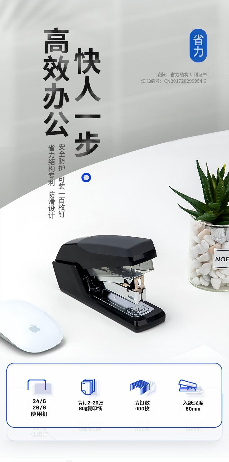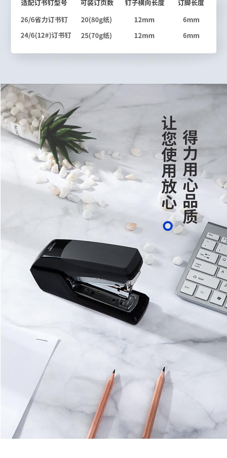 Grapadora ahorradora de mano de obra Deli 0368, grapadora de oficina de un solo dedo, encuadernación fácil, 20 grapadoras para estudiantes, venta al por mayor