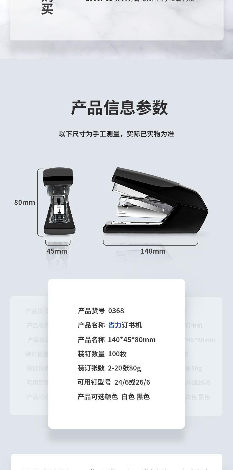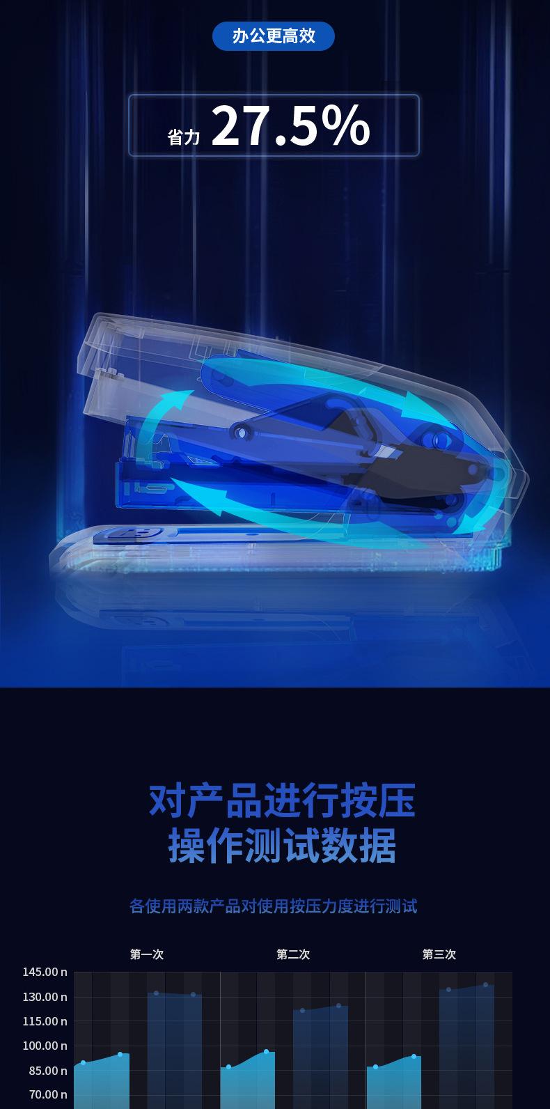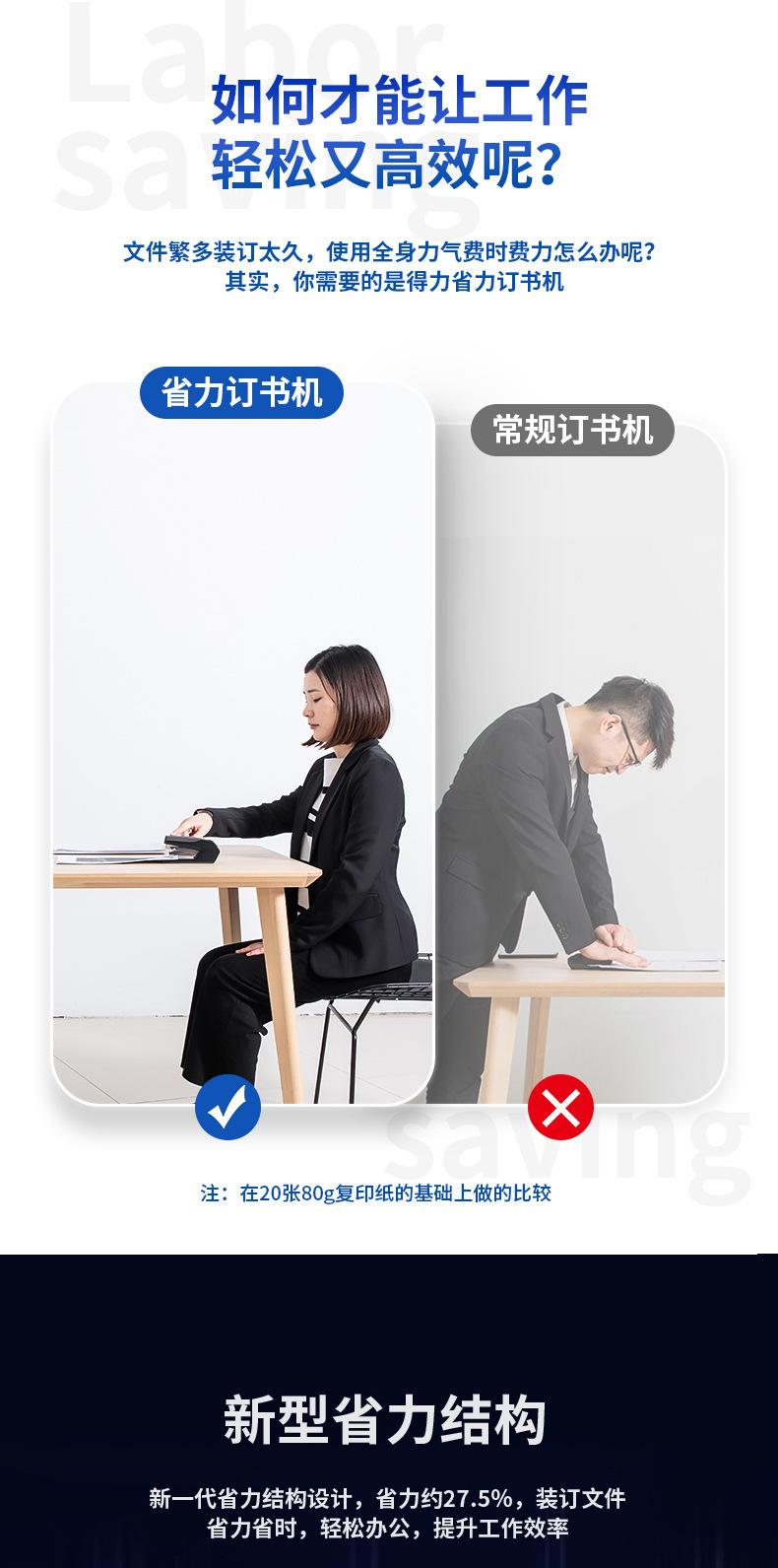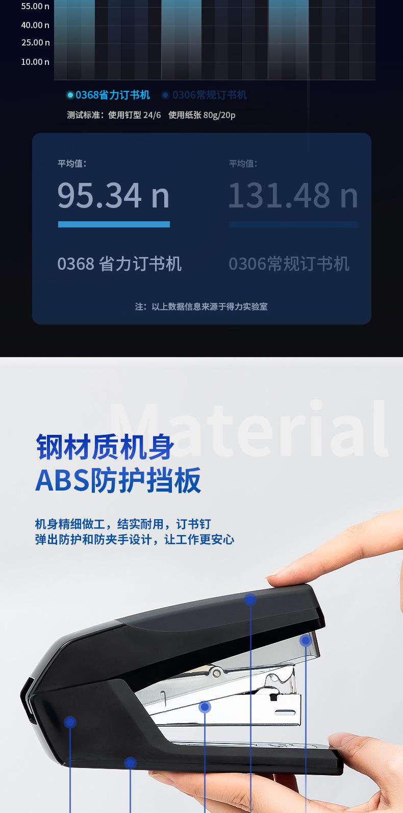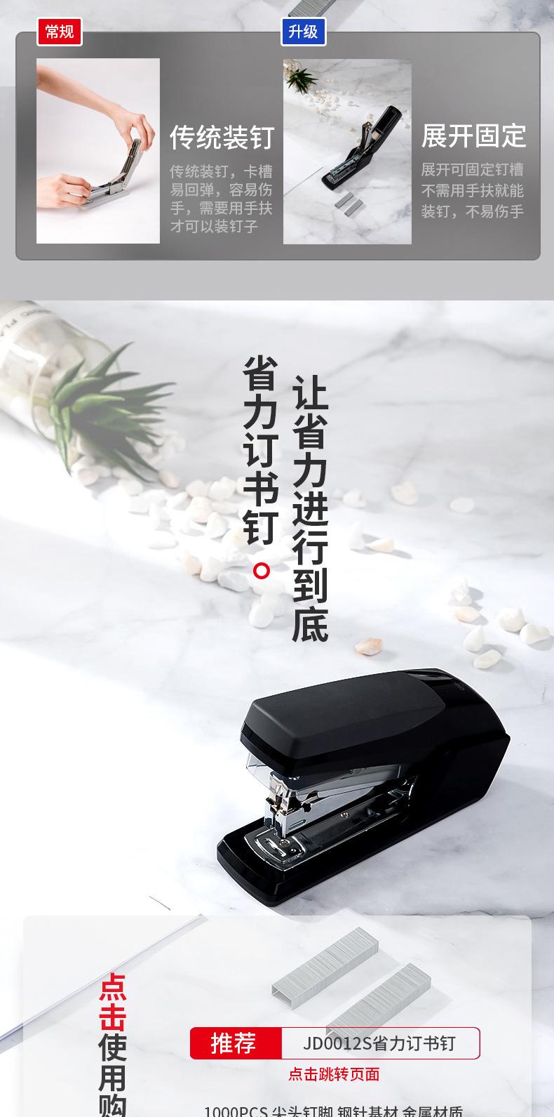 Grapadora ahorradora de mano de obra Deli 0368, grapadora de oficina de un solo dedo, encuadernación fácil, 20 grapadoras para estudiantes, venta al por mayor