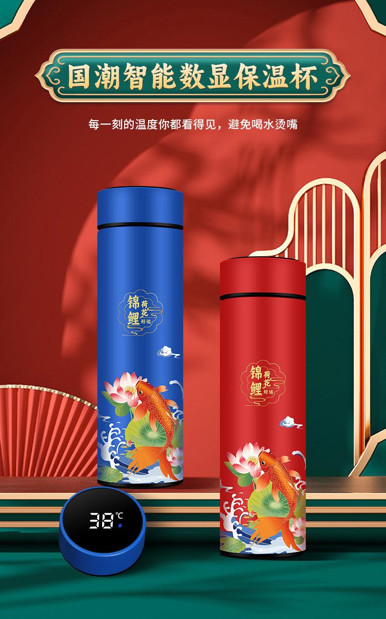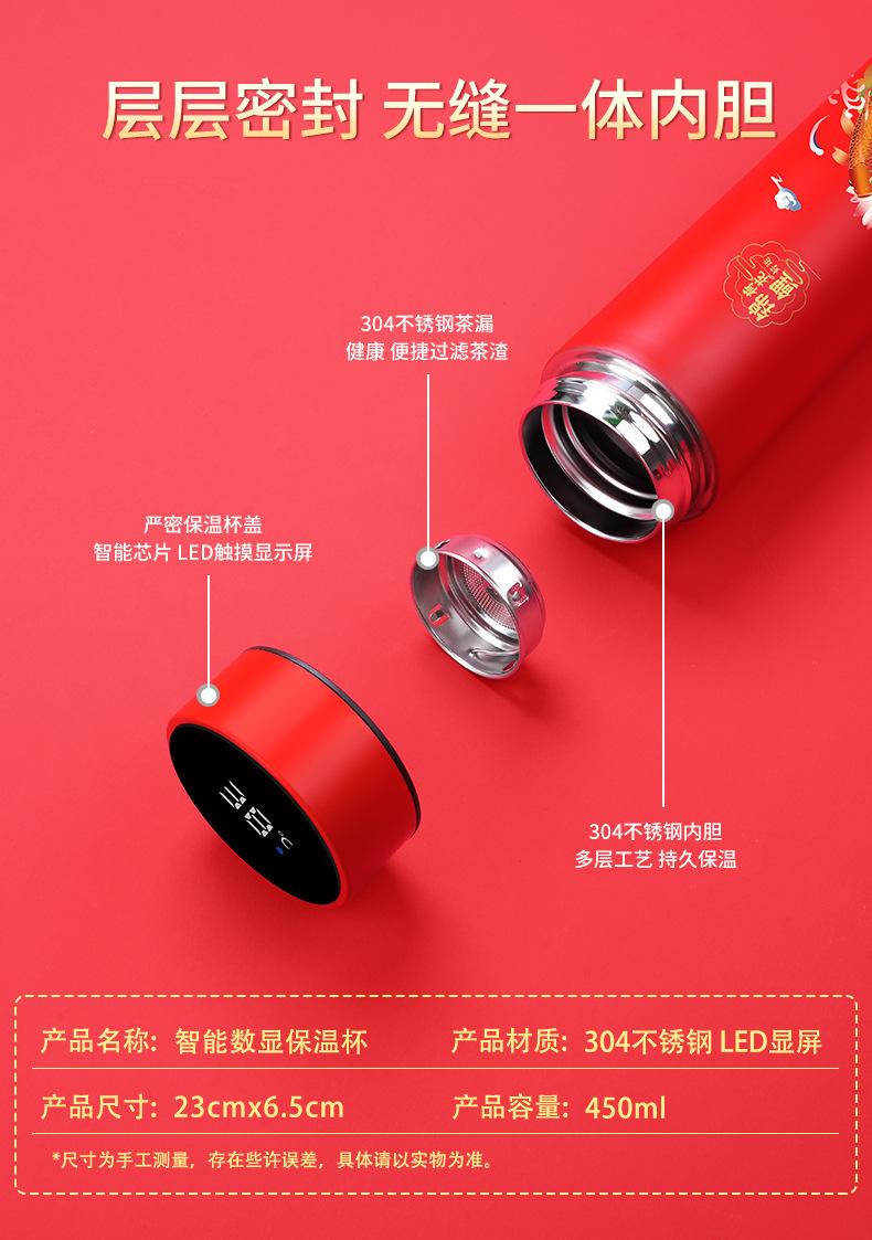 Three-piece set [temperature display thermos cup + notepad + business pen] red, Three-piece set [temperature d...