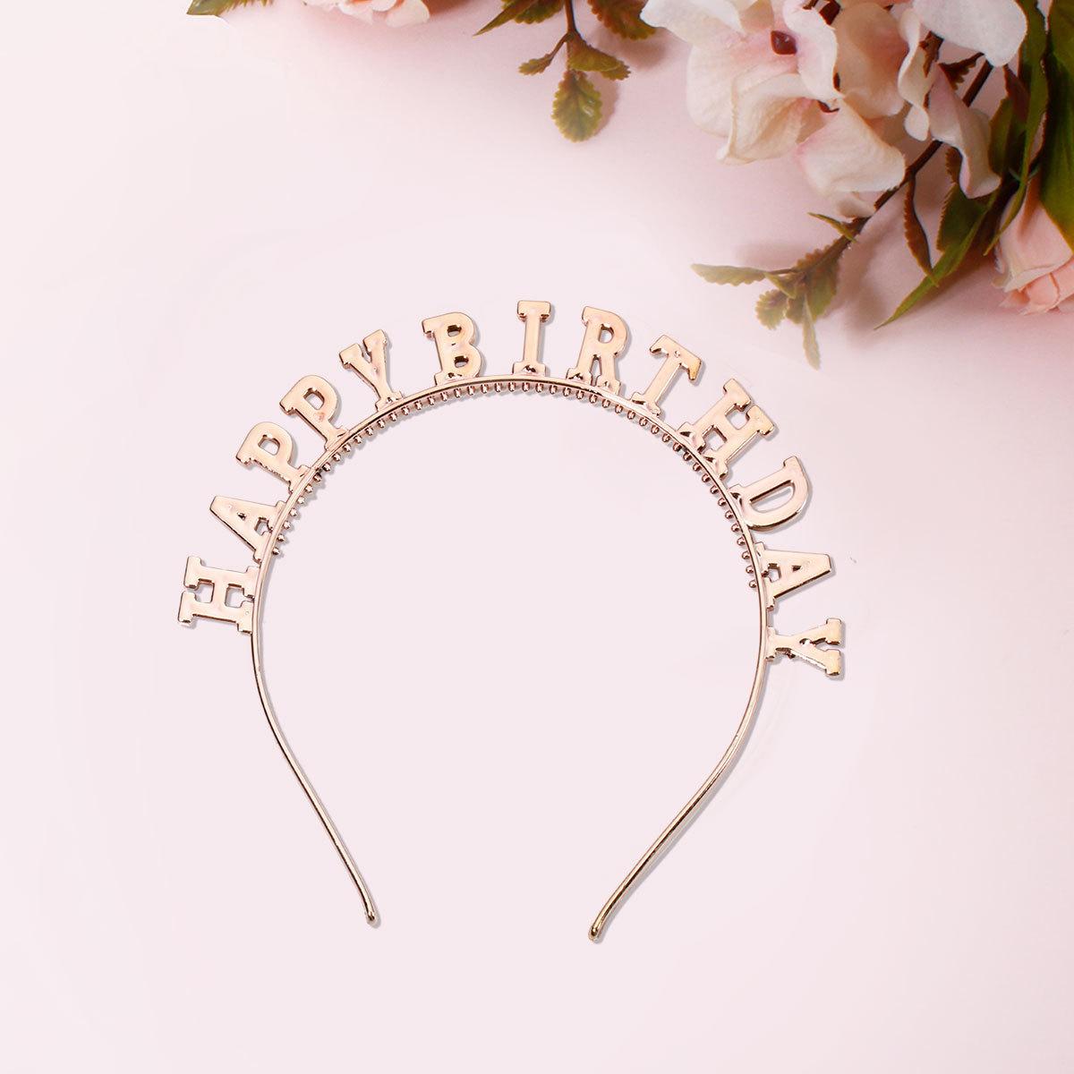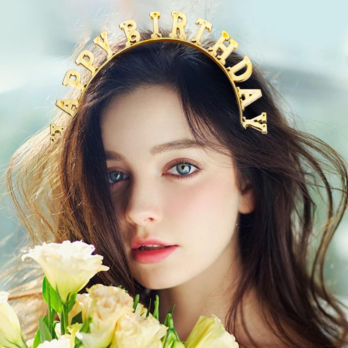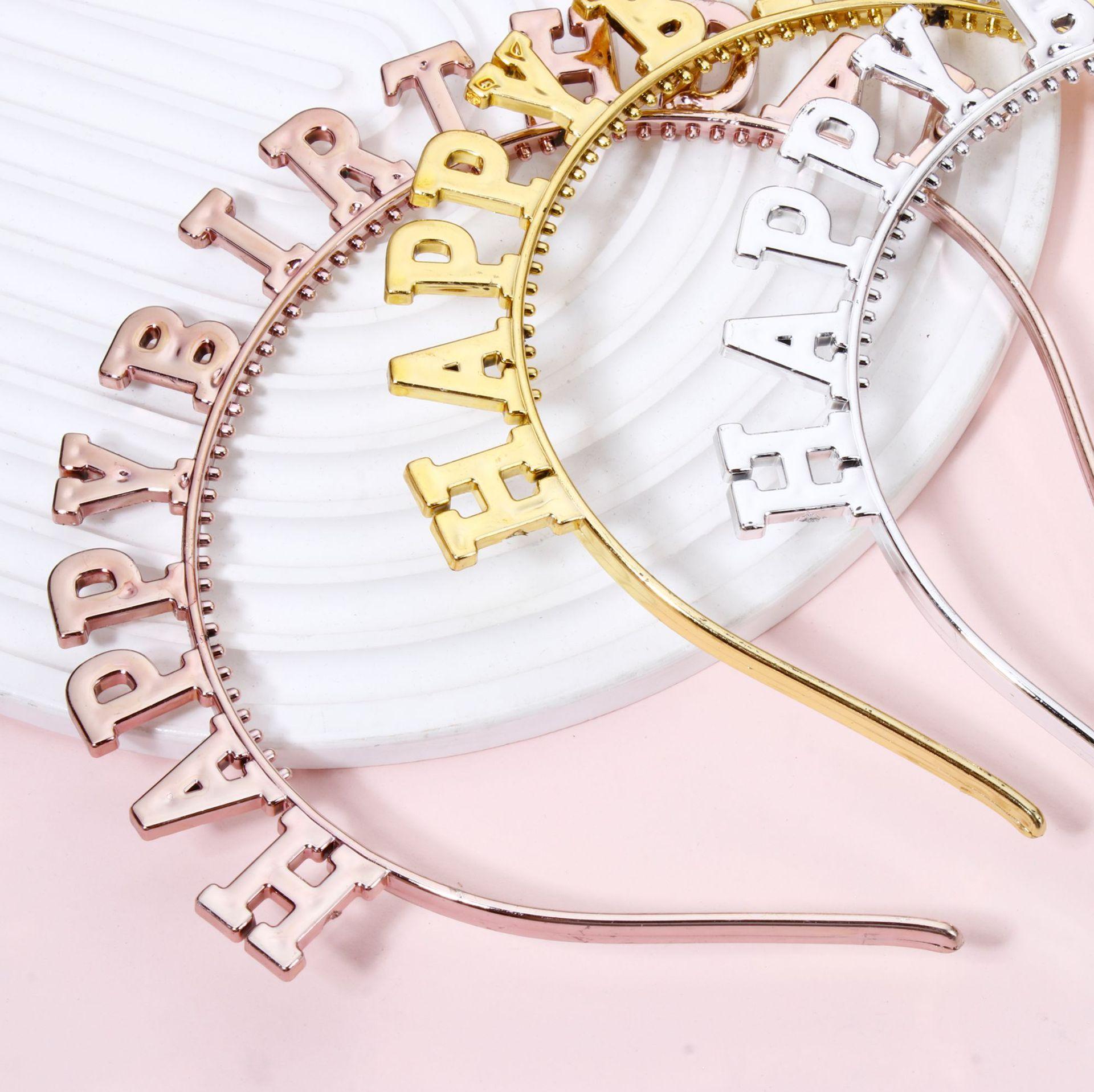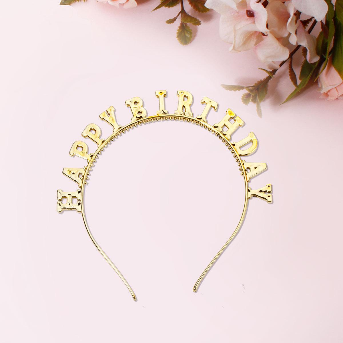 Diadema de feliz cumpleaños happybirthday Diadema con letras doradas Accesorios para el cabello de fiesta de princesa Comercio exterior de mujeres