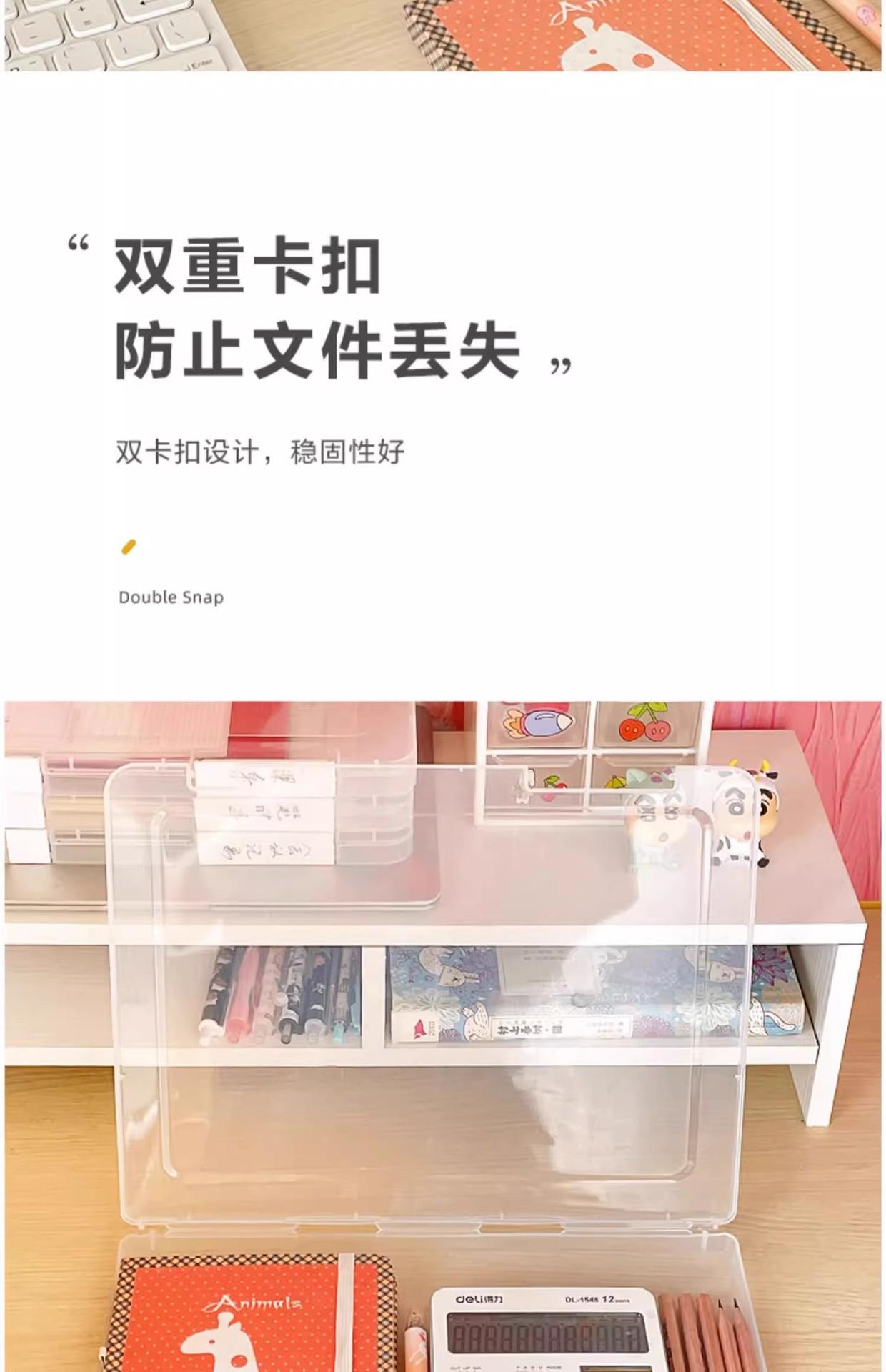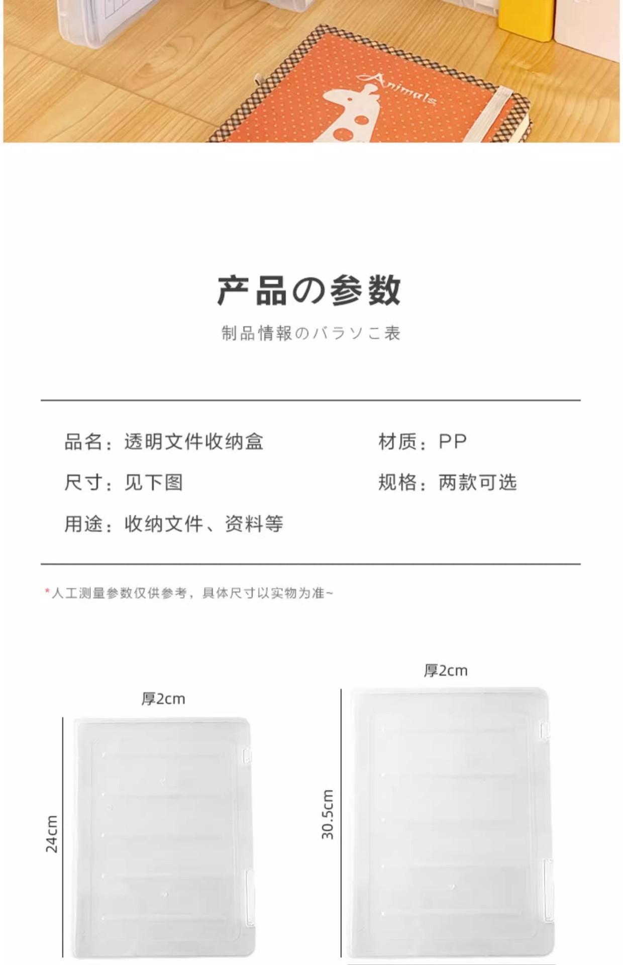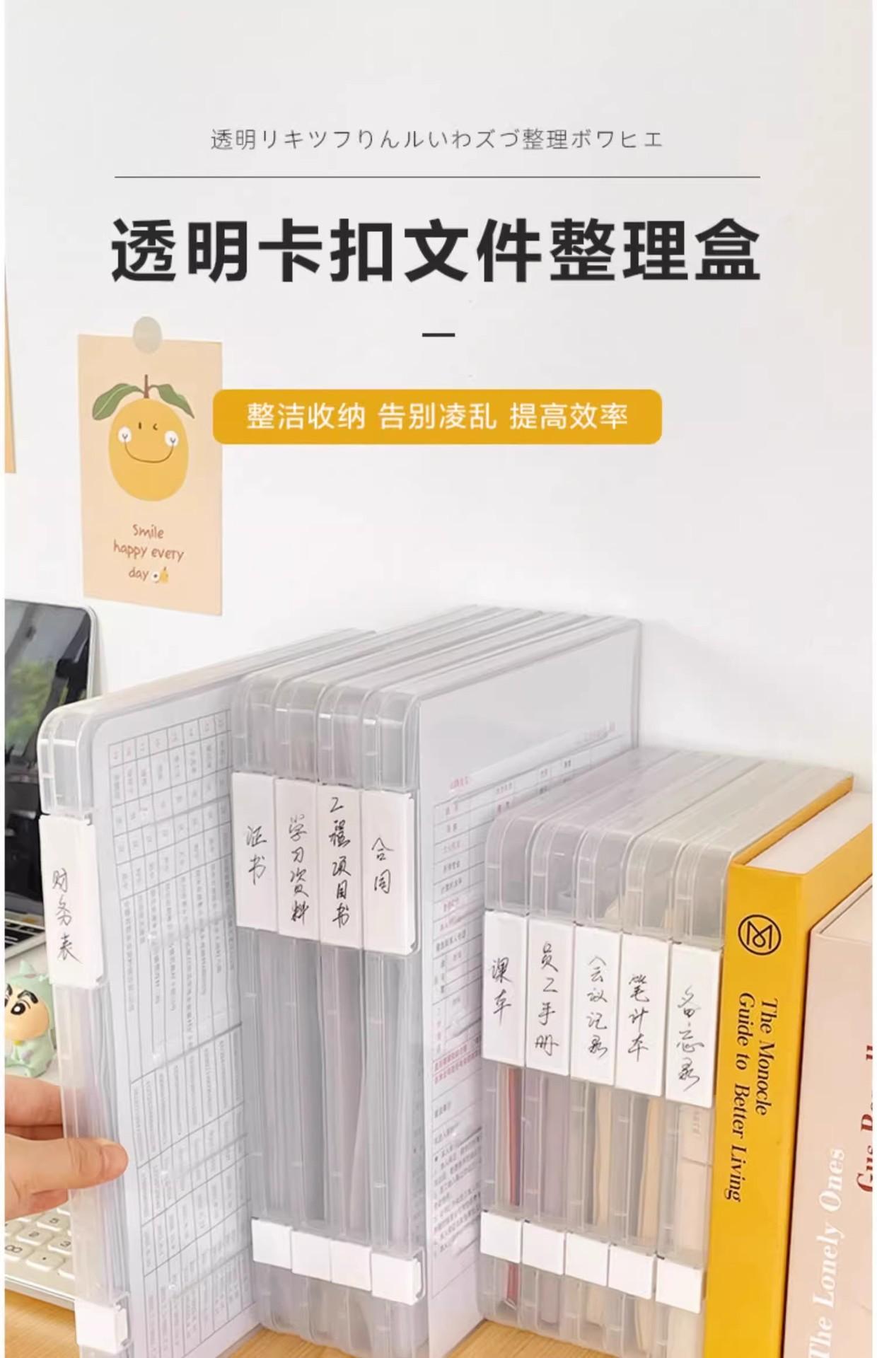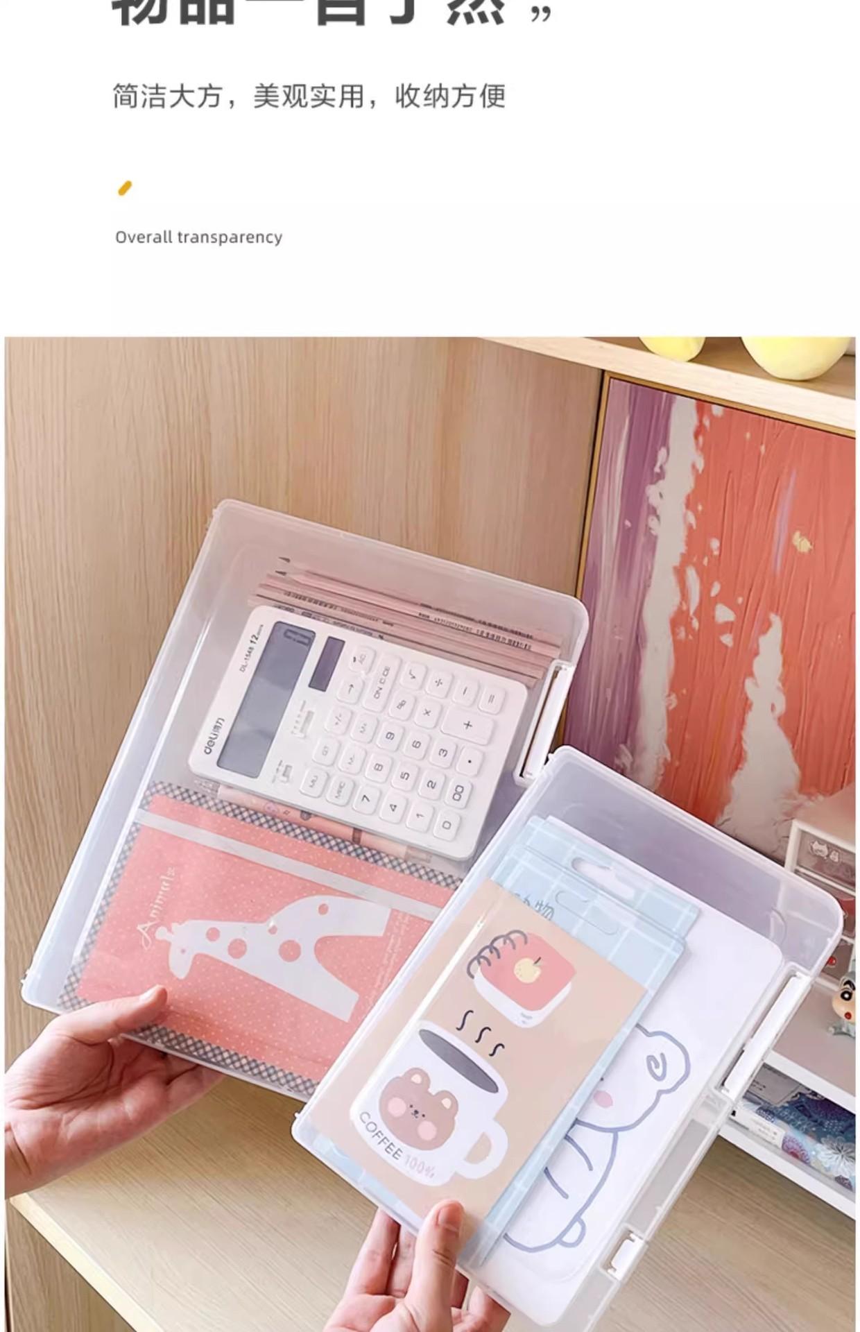 Caja de archivo de datos de escritorio simple A4, caja de almacenamiento de papel A5, caja de acabado de facturas de plástico transparente, suministros de oficina para estudiantes