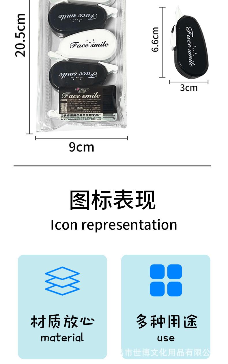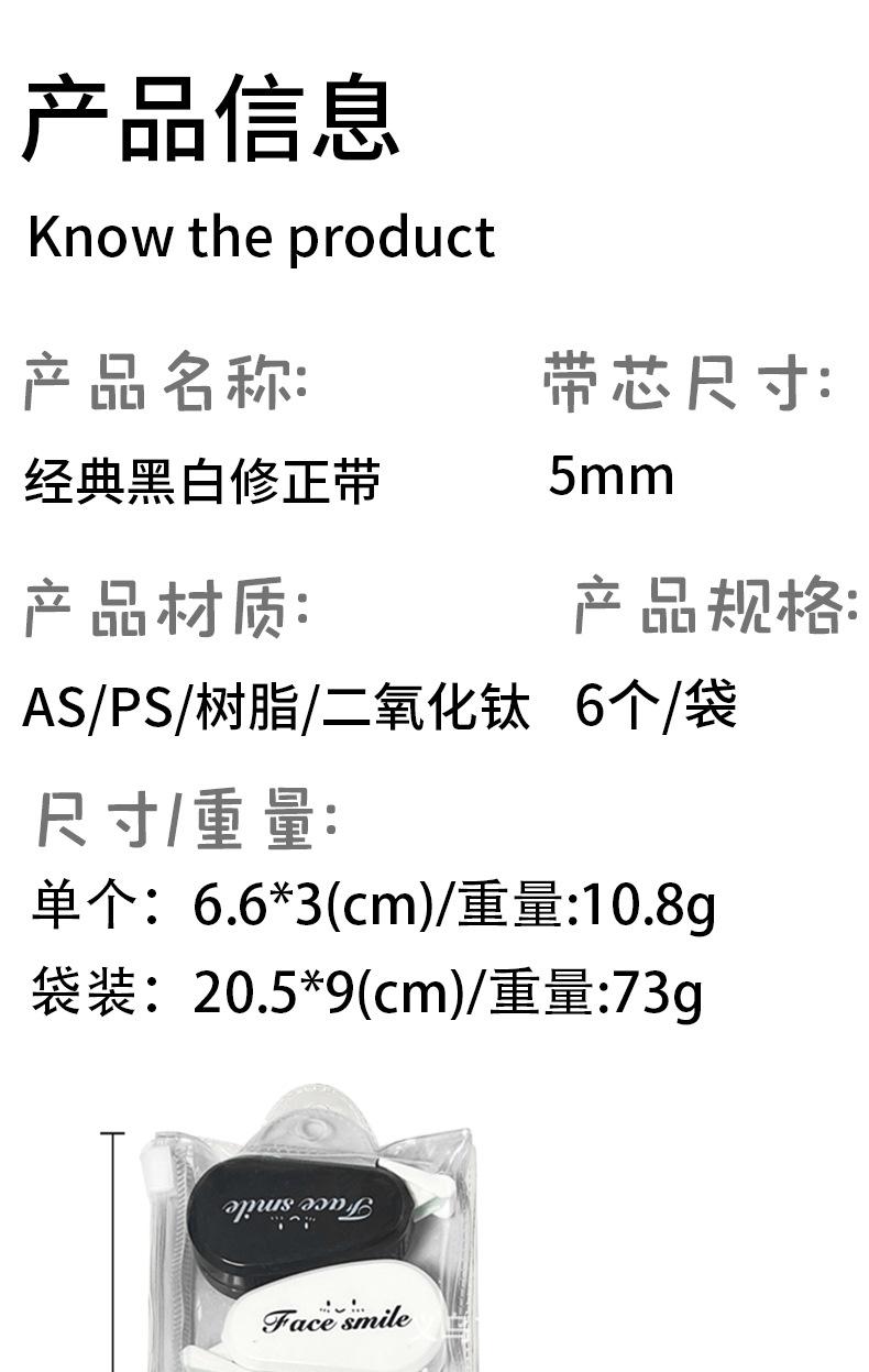 Mini corrector portátil clásico en blanco y negro, lindo corrector creativo con útiles escolares de papelería para estudiantes, corrección con venta al por mayor