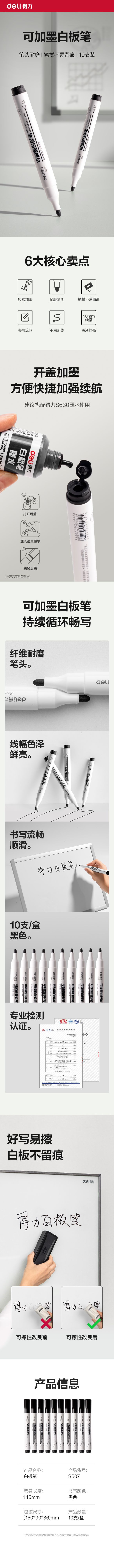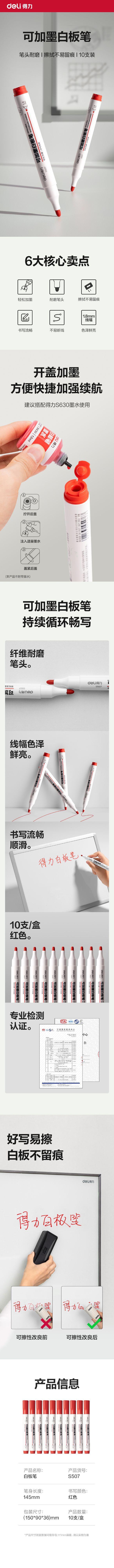 Plumón de Pizarra Blanca Recargable Deli, Punta de Fieltro Borrable y Resistente al Desgaste, Fácil de Escribir y Borrar, Plumón para Pizarra Blanca de Oficina, Venta al por Mayor de Plumones para Pizarra de Dibujo