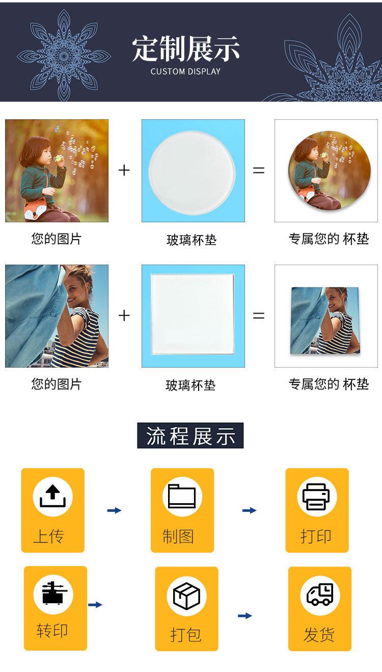 Posavasos de vidrio nuevos, consumibles de transferencia térmica en blanco, impresión personalizada, marco de vidrio HD, venta al por mayor, redondo, cuadrado