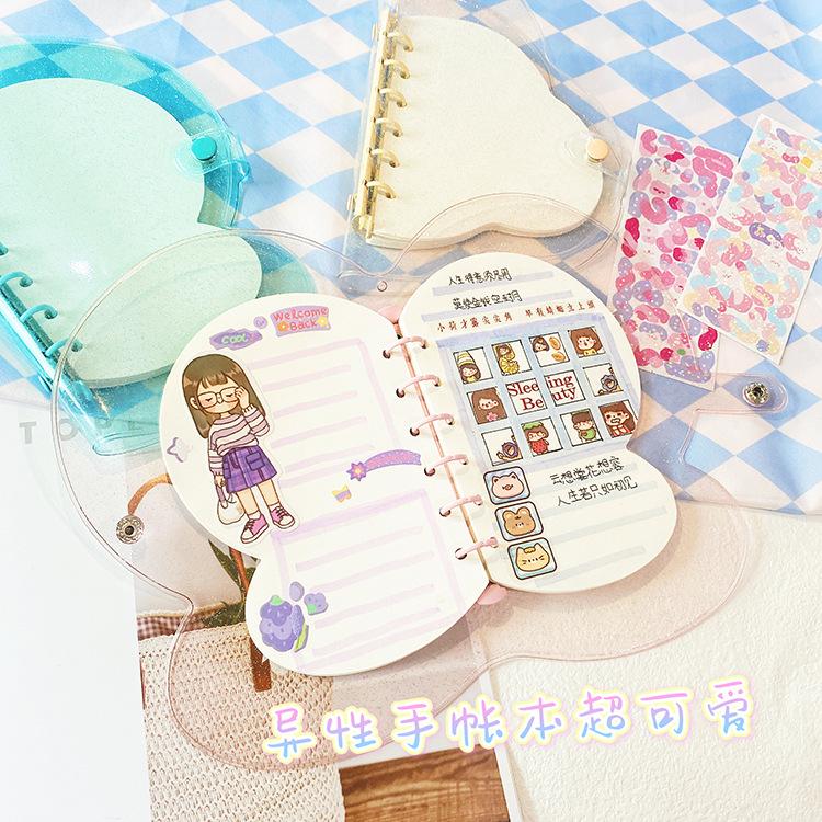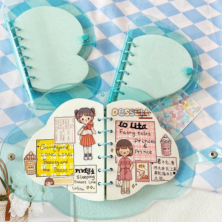 Lindo Cuaderno Transparente de Hojas Sueltas con Lazo Estilo Japonés Ins de 6 Agujeros Portátil Nube Cuaderno de Estudiante Venta al por Mayor Cuaderno