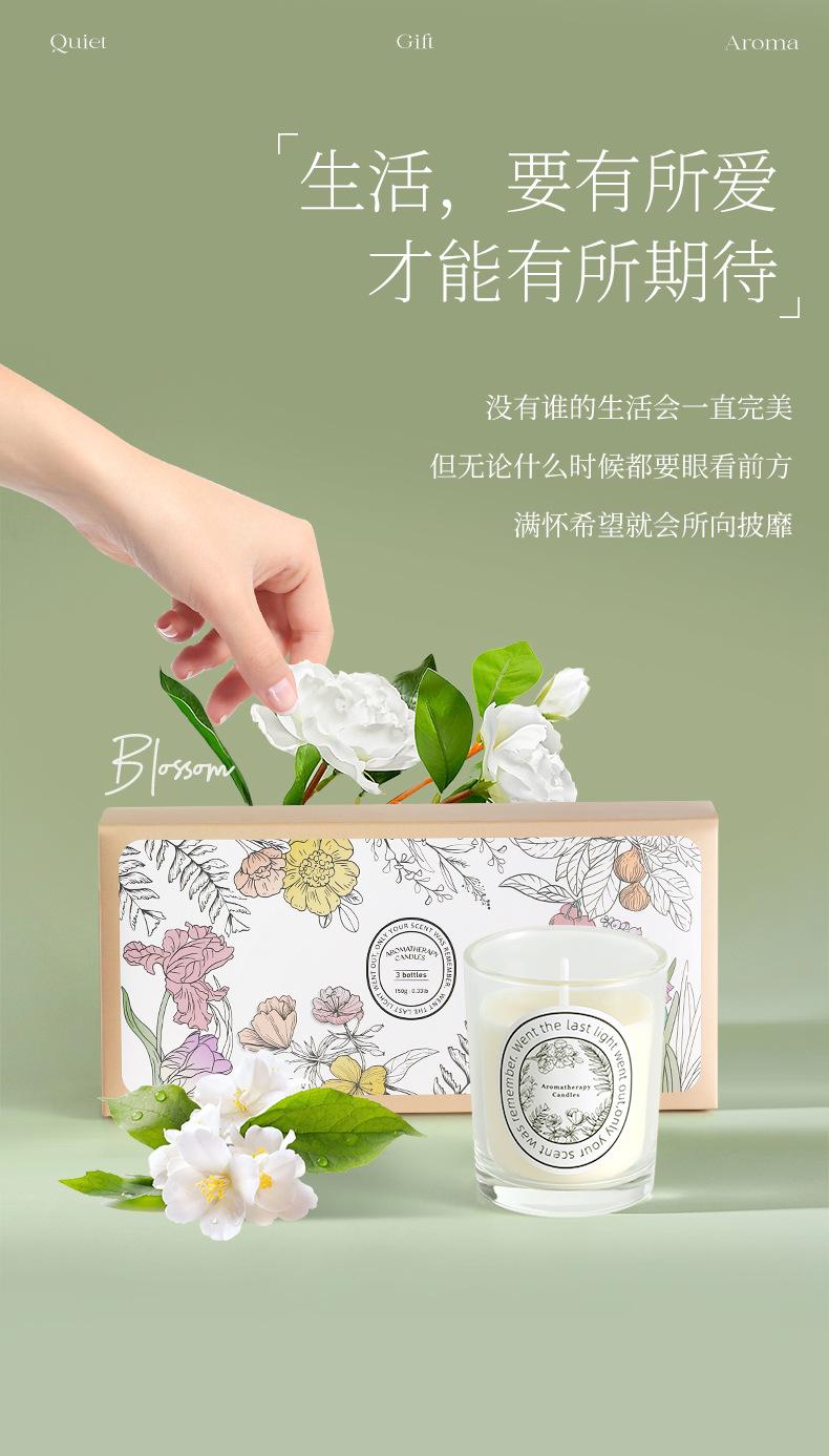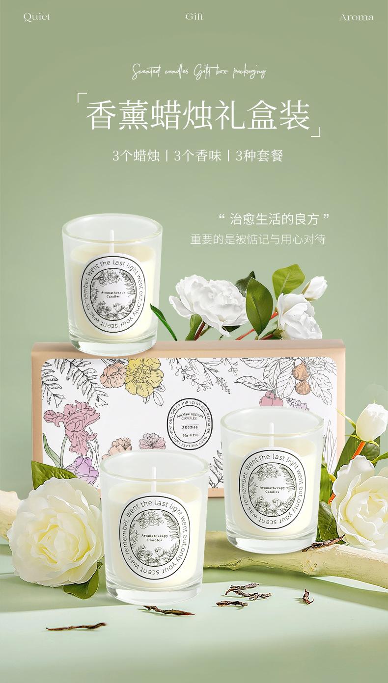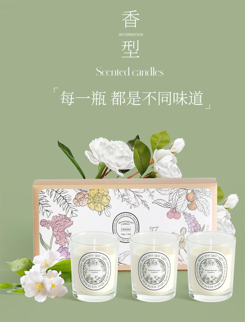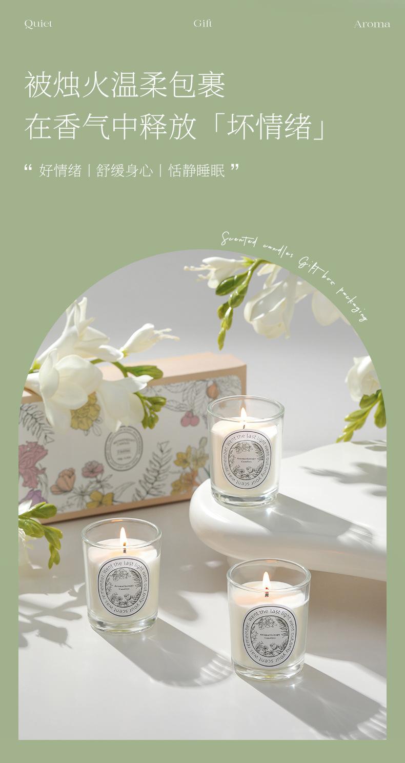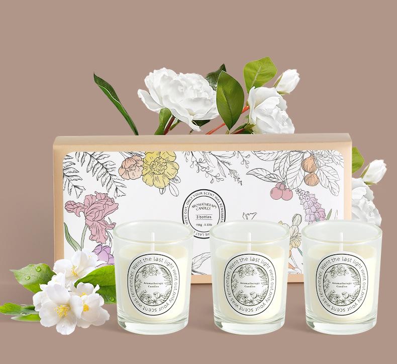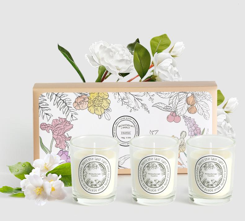 Vela de aromaterapia en caja de regalo de tres piezas con sabor floral, fragancia ligera, regalo de cumpleaños duradero para novia, incluye caja de regalo.