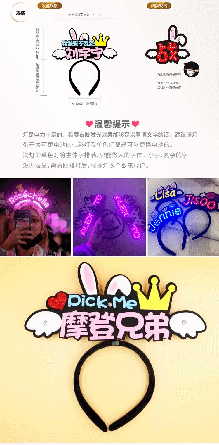 Zhou Baihao Concierto Luz de Apoyo Placa led Banda para el Cabello Luminosa Barra Fluorescente Abanicos Palo de Apoyo Accesorios para Actividades Personalización