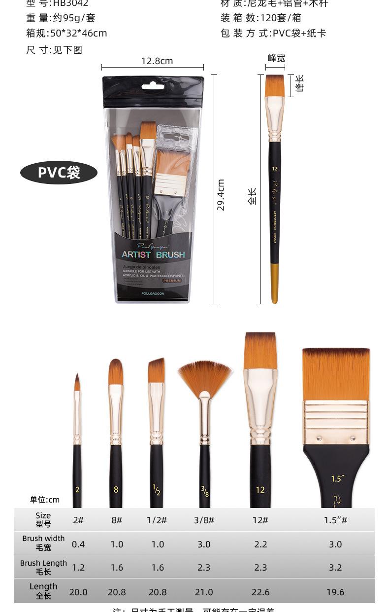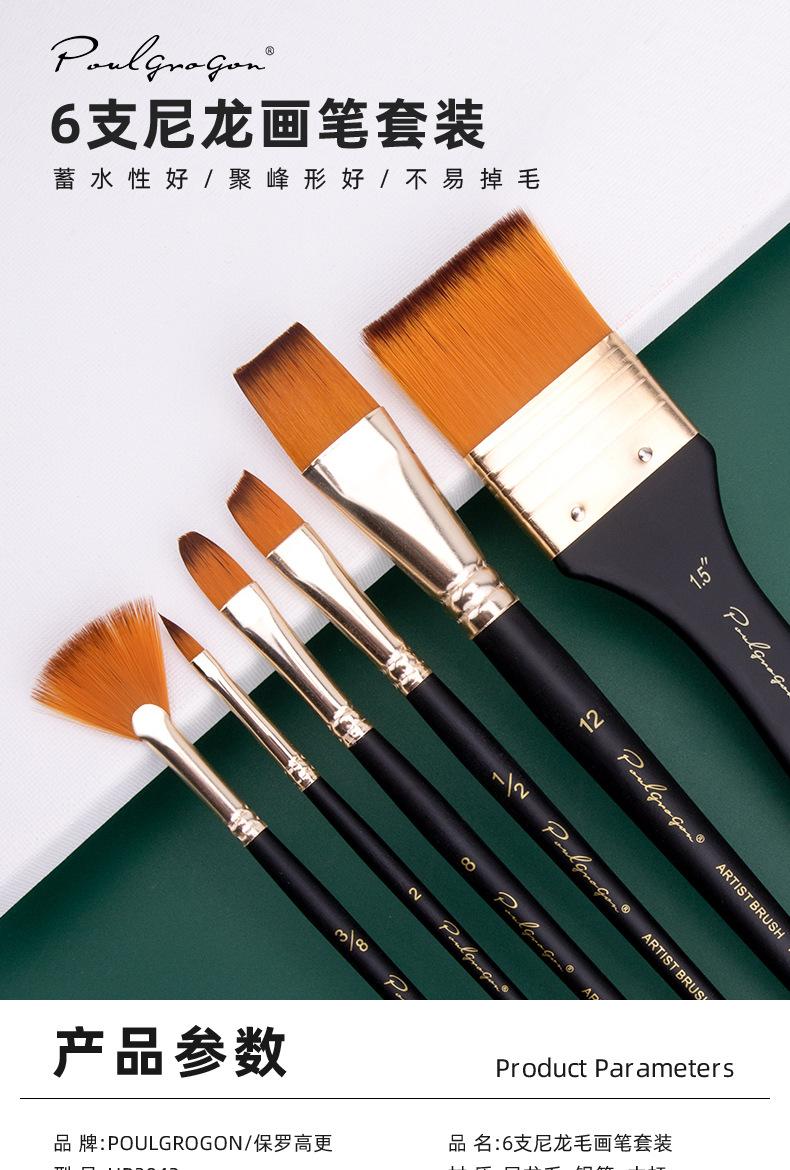 6 pinceles de lana de nailon, adecuados para pintura artística, gouache, acuarela, acrílico, óleo.
