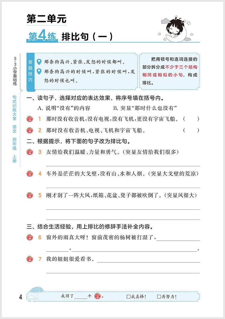 Edición 2025 53 Práctica básica de la escuela primaria Chino Cuarto grado Primer libro Entrenamiento de oraciones Libro completo 5.3 Práctica básica de la escuela primaria 4
