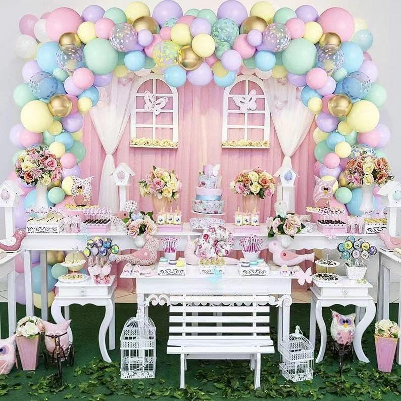Combinación de globos macarrones coloridos de Amazon transfronterizos, traje para fiesta de cumpleaños infantil, decoración de globos, escena de globos