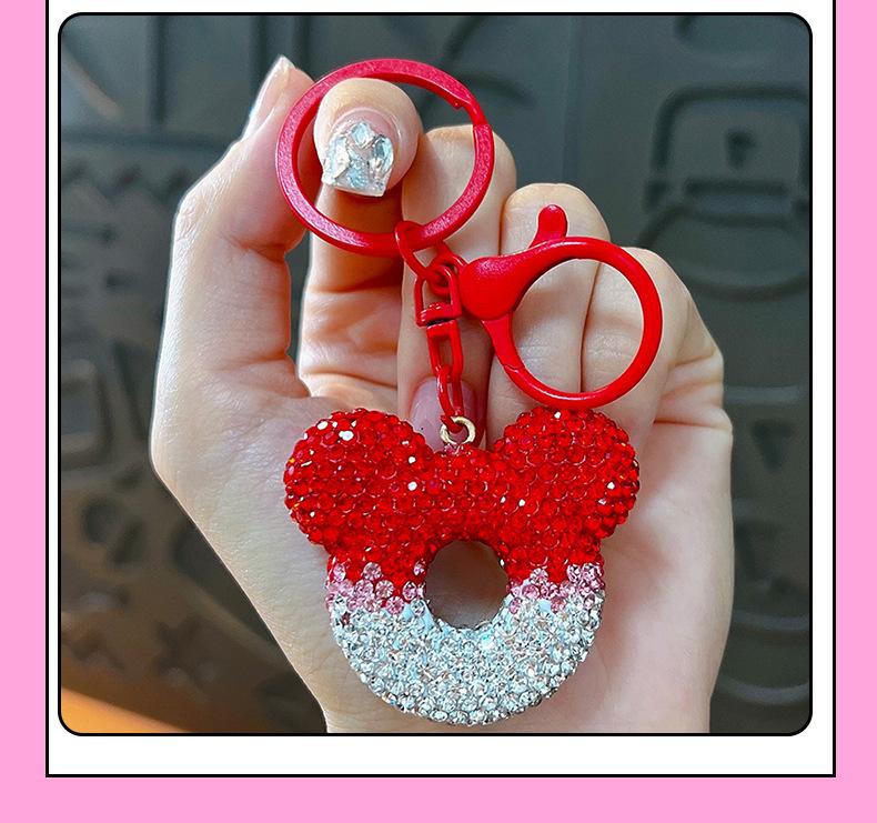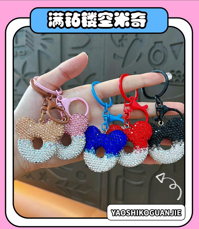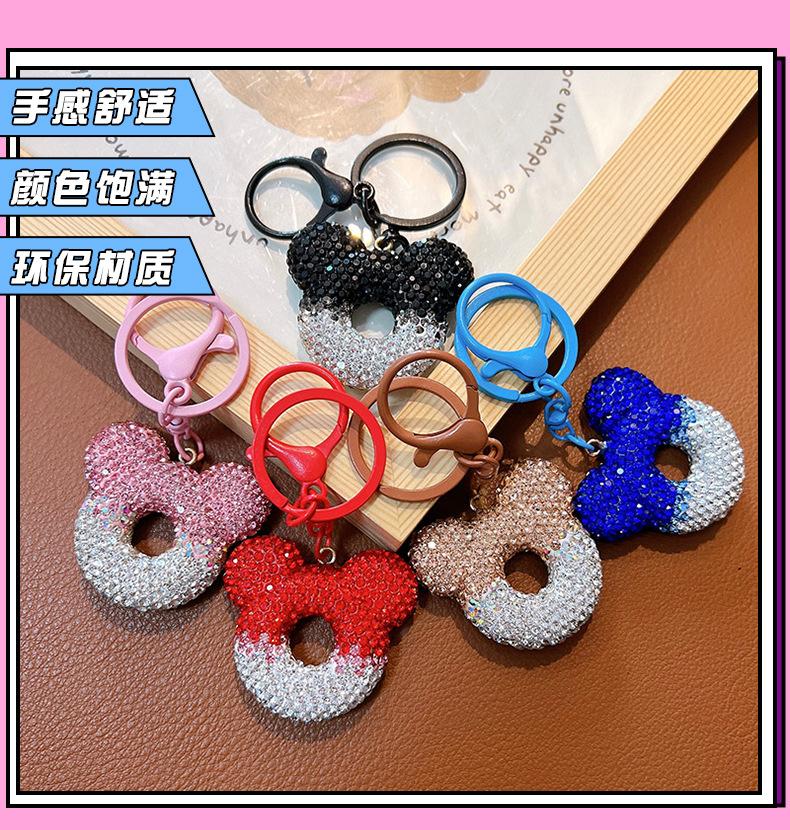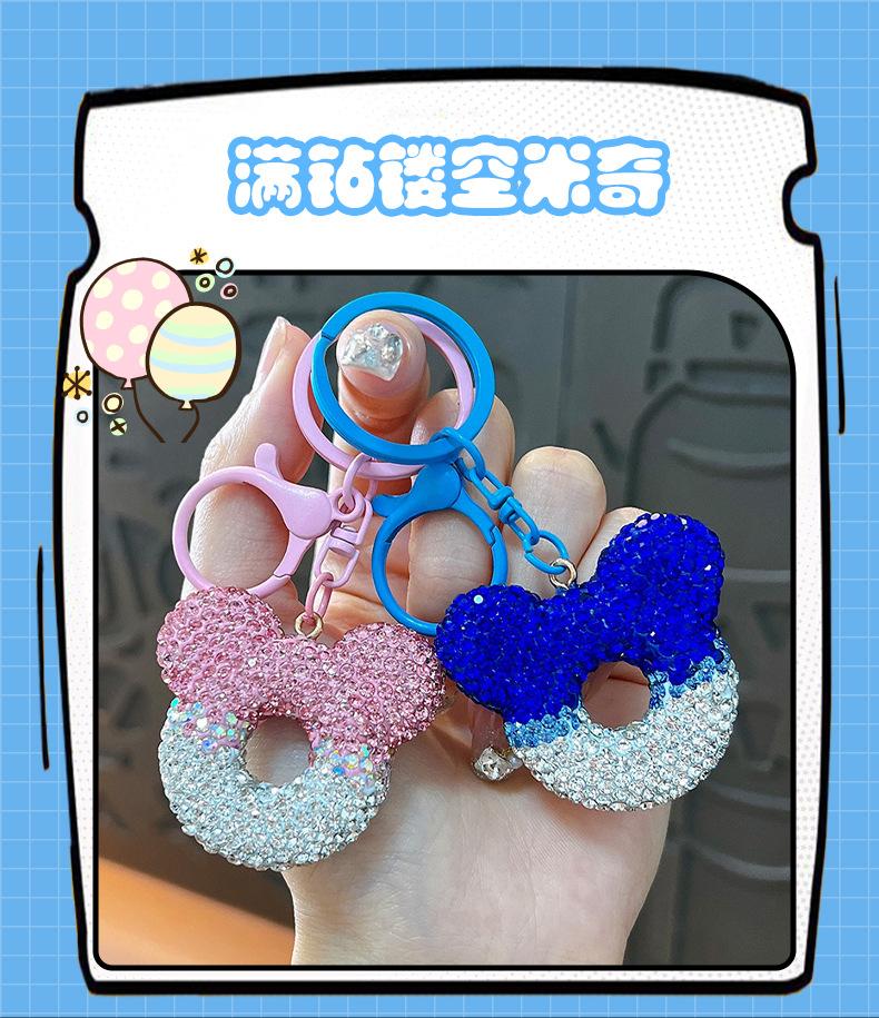 Lindo llavero con forma de cabeza de Mickey con dibujos de diamantes, llavero con degradado para coche, paquete de colgante para pareja, regalo al por mayor