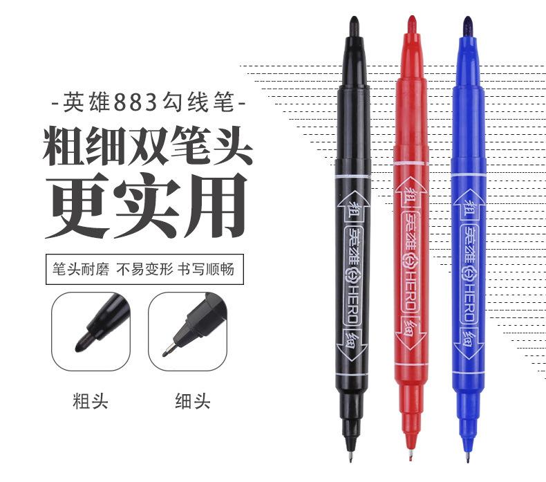 Rotulador Hero 883, rotulador de doble punta, con punta de gancho, para pintar, a base de agua, para estudiantes, color negro