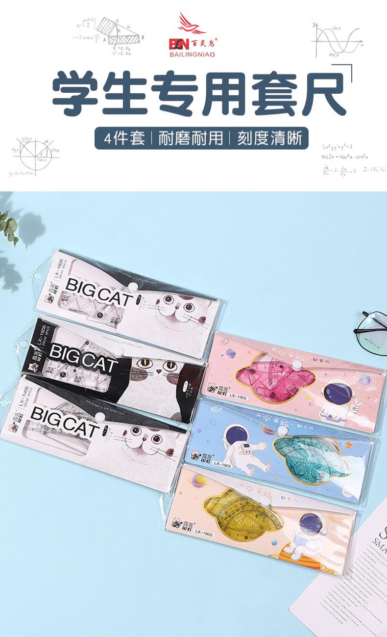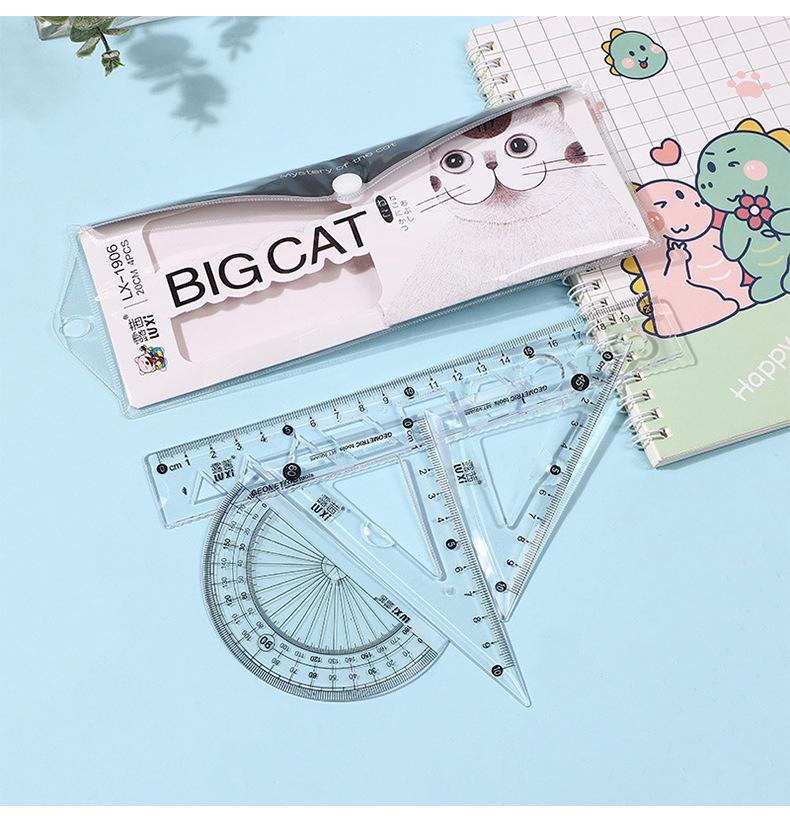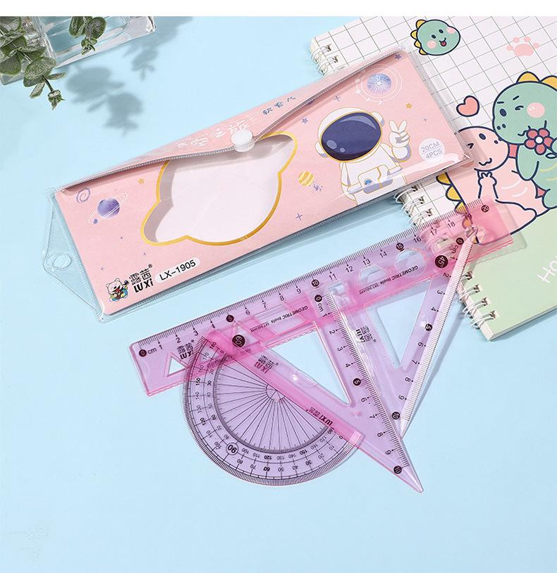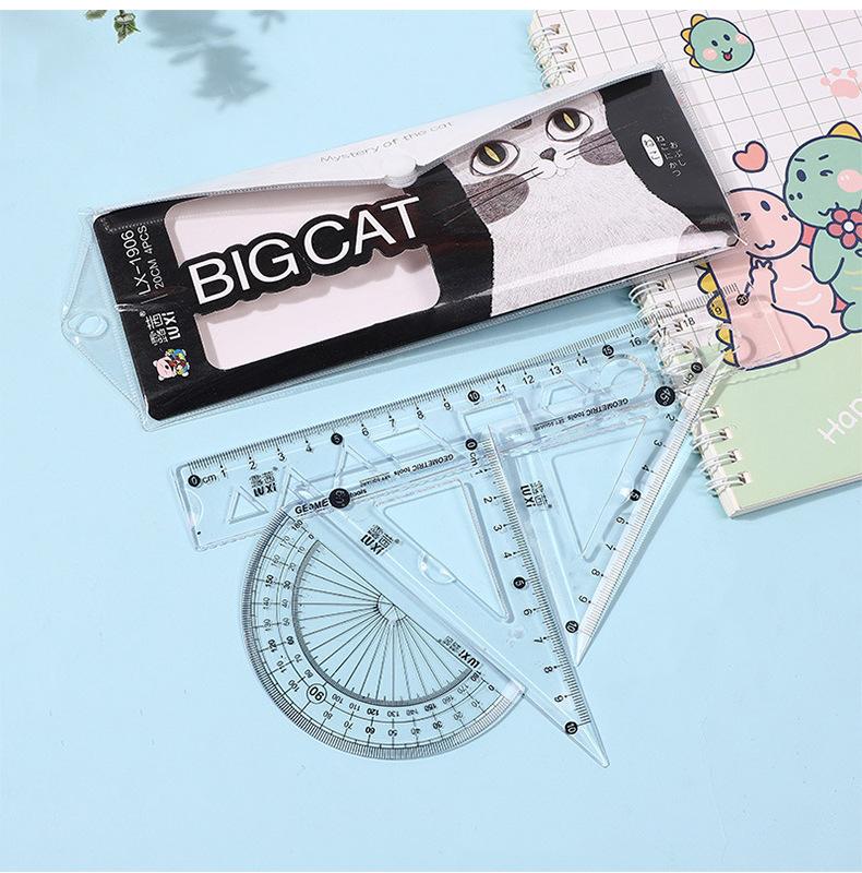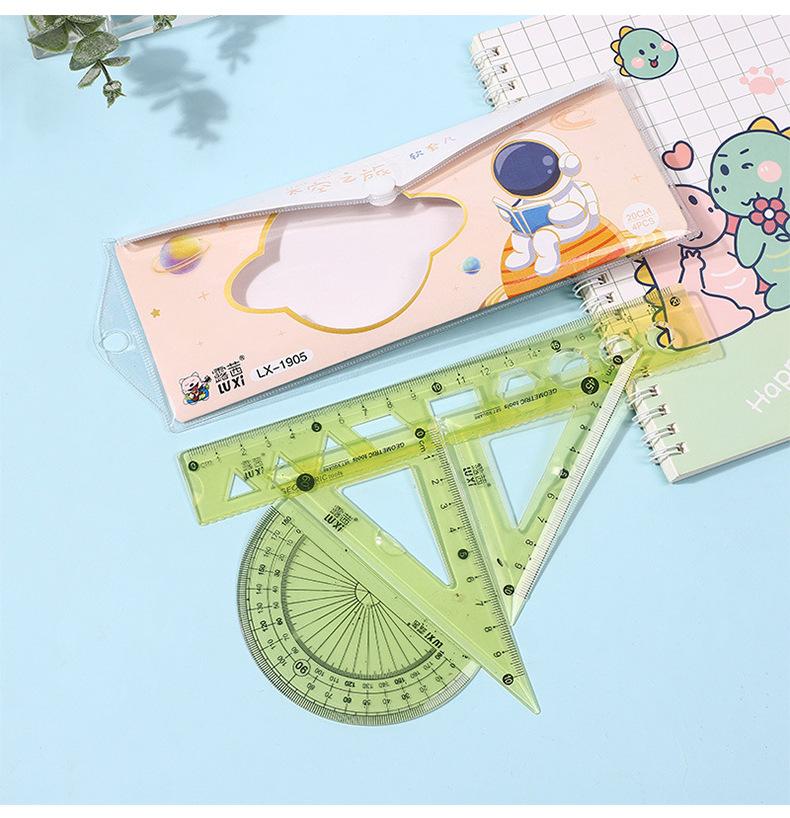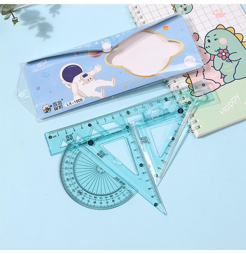 Set de Papelería para Dibujo de Pupila Infantil Lindo Dibujo Animado Multifuncional Regla de Dibujo Medición Papelería Set Superior Doble
