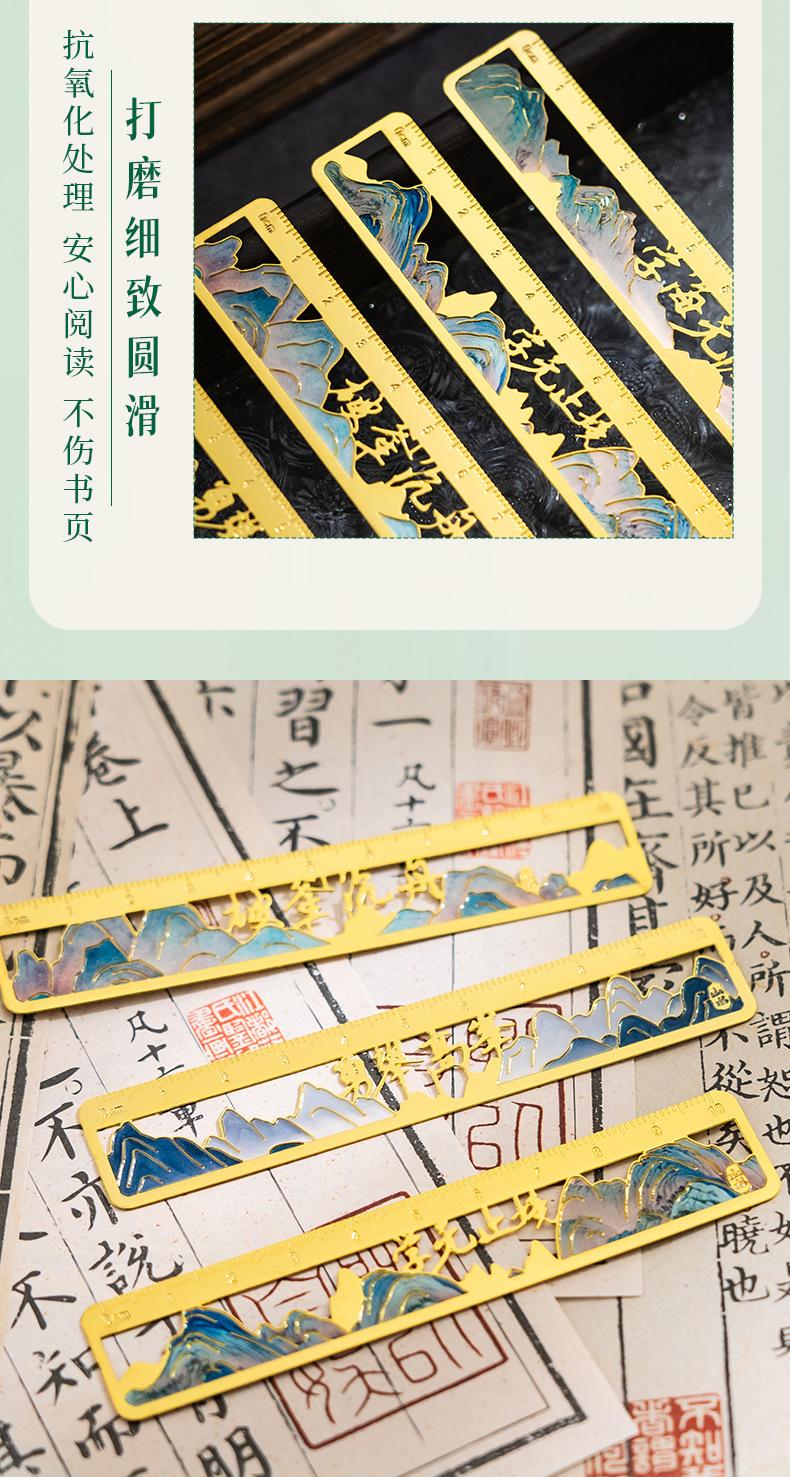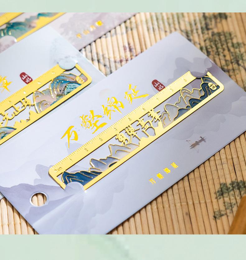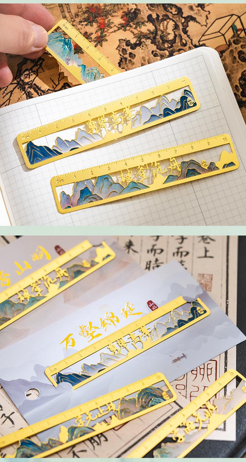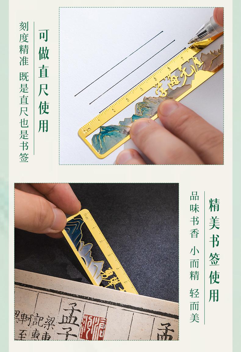 Qianli Jiangshan Pintura al Óleo Marcador de Metal Hueco Regalo de Apertura Escolar para Estudiantes Cumpleaños Regalo Marcador de Regla de Latón Wenchuang